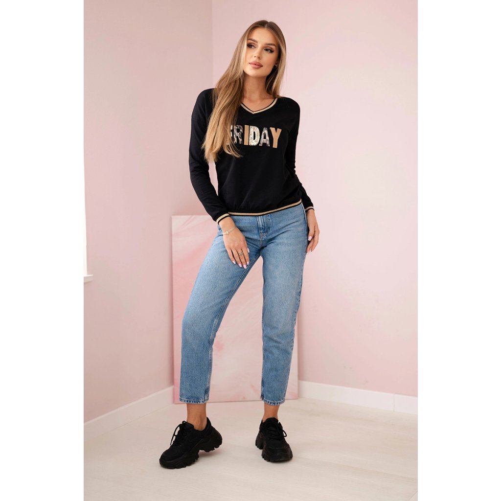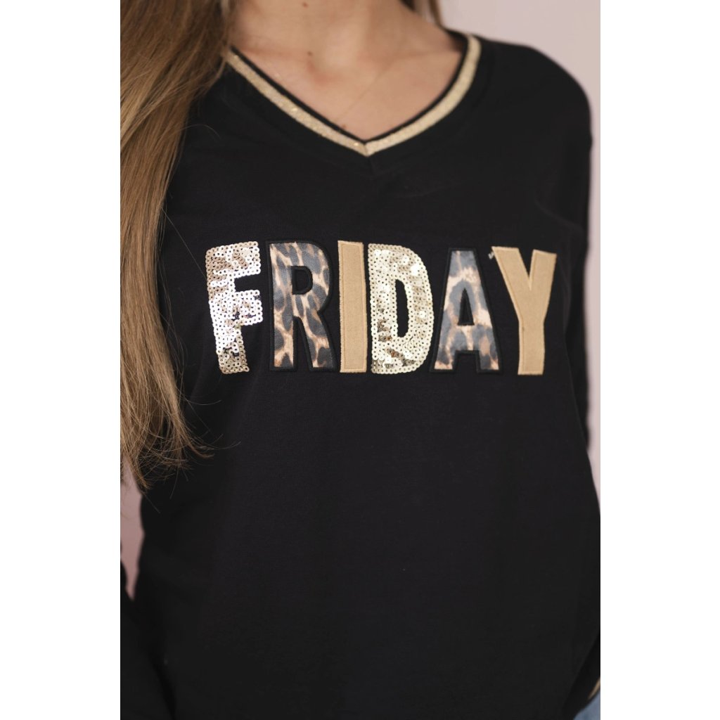 Hľadáš pohodlnú, ale efektnú mikinu na každý deň Dámska mikina s nápisom "FRIDAY" je ideálnou voľbou pre ženy, ktoré si cenia štýl a komfort. Priťahuje pohľad lesklými flitrami a moderným, zvieracím vzorom v písmenách, ktoré pridávajú charakter. Výstrih do V a zlaté lemovanie na manžetách a dole mikiny jej dodávajú výnimočný vzhľad. Ideálna na každý deň, do práce, na nákupy alebo víkendový výlet – všade tam, kde chceš vyzerať štýlovo a cítiť sa pohodlne. Veľkosť je univerzálna a bude vhodná pre dámy vo veľkosti S, M alebo L.