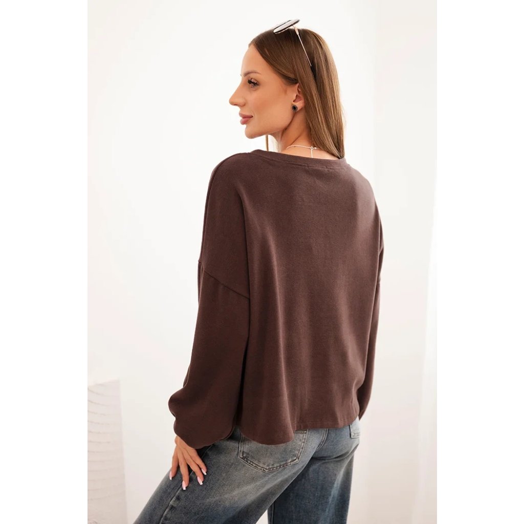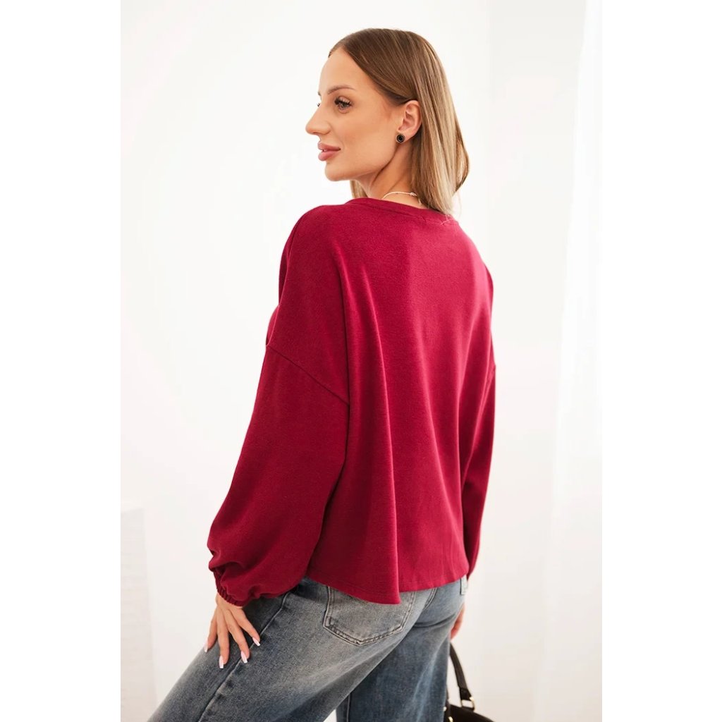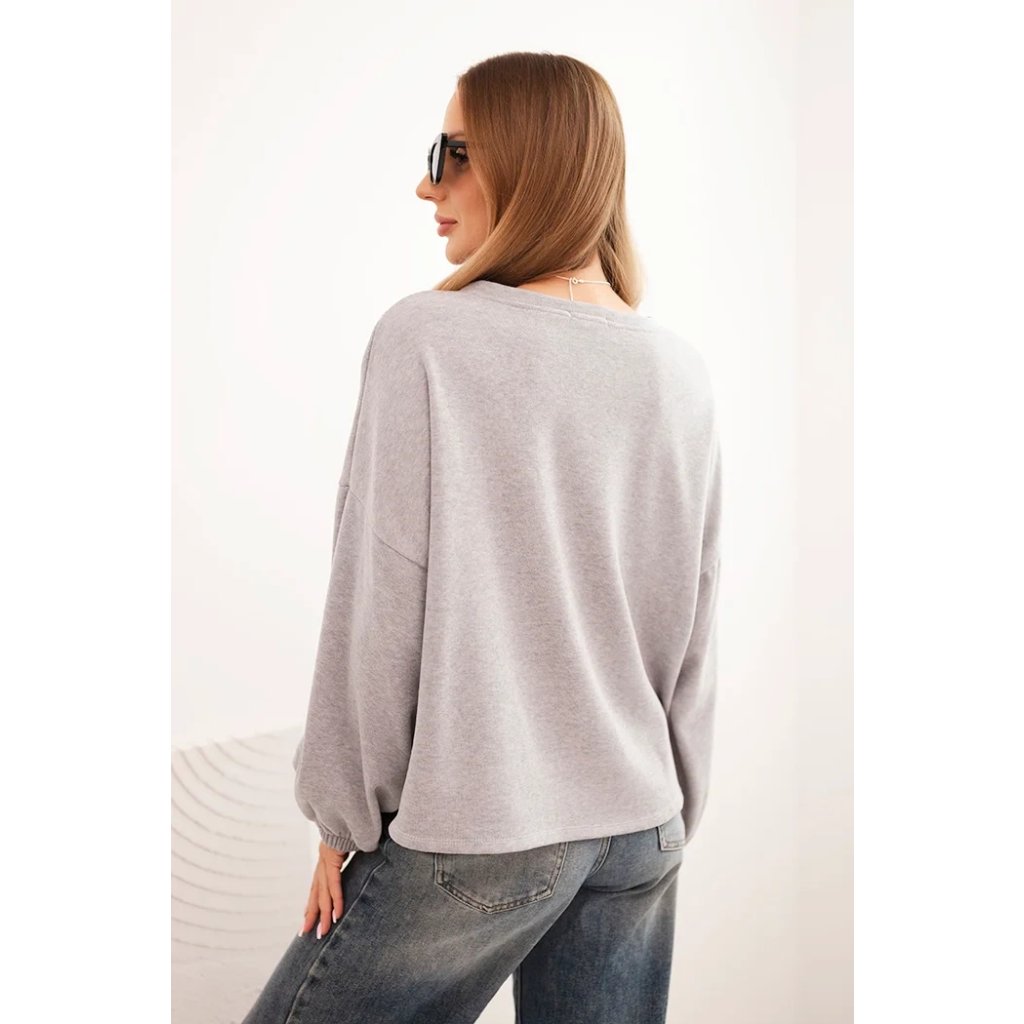 Dámska mikina s ozdobným zakončením na spodku je spojením pohodlia a elegancie v každodennom štýle. Voľnejší strih zaisťuje pohodlie pri nosení a dekoratívna aplikácia dodáva celku výnimočný charakter. Model je ideálny aj k džínam, aj k sukniam, čím vytvára outfity na každý deň, ako aj na stretnutia v uvoľnenejšej atmosfére.