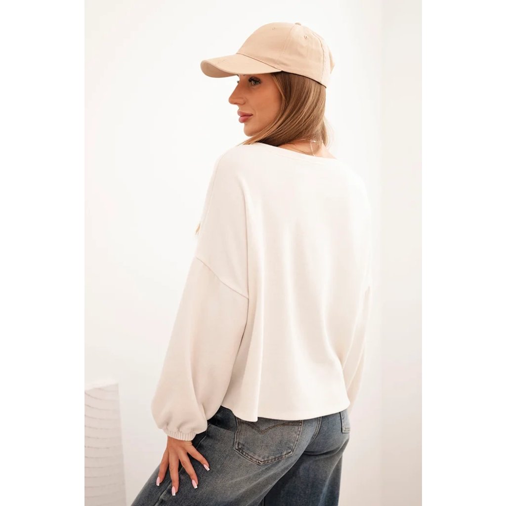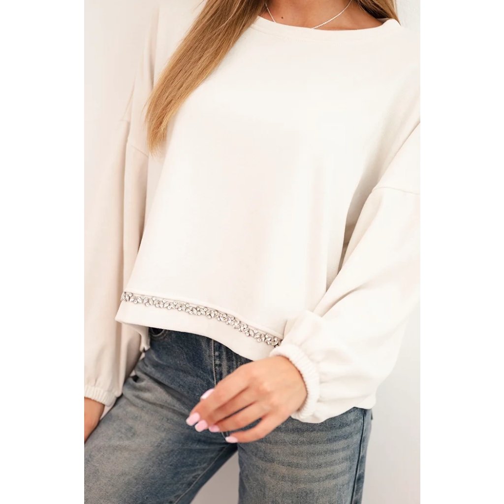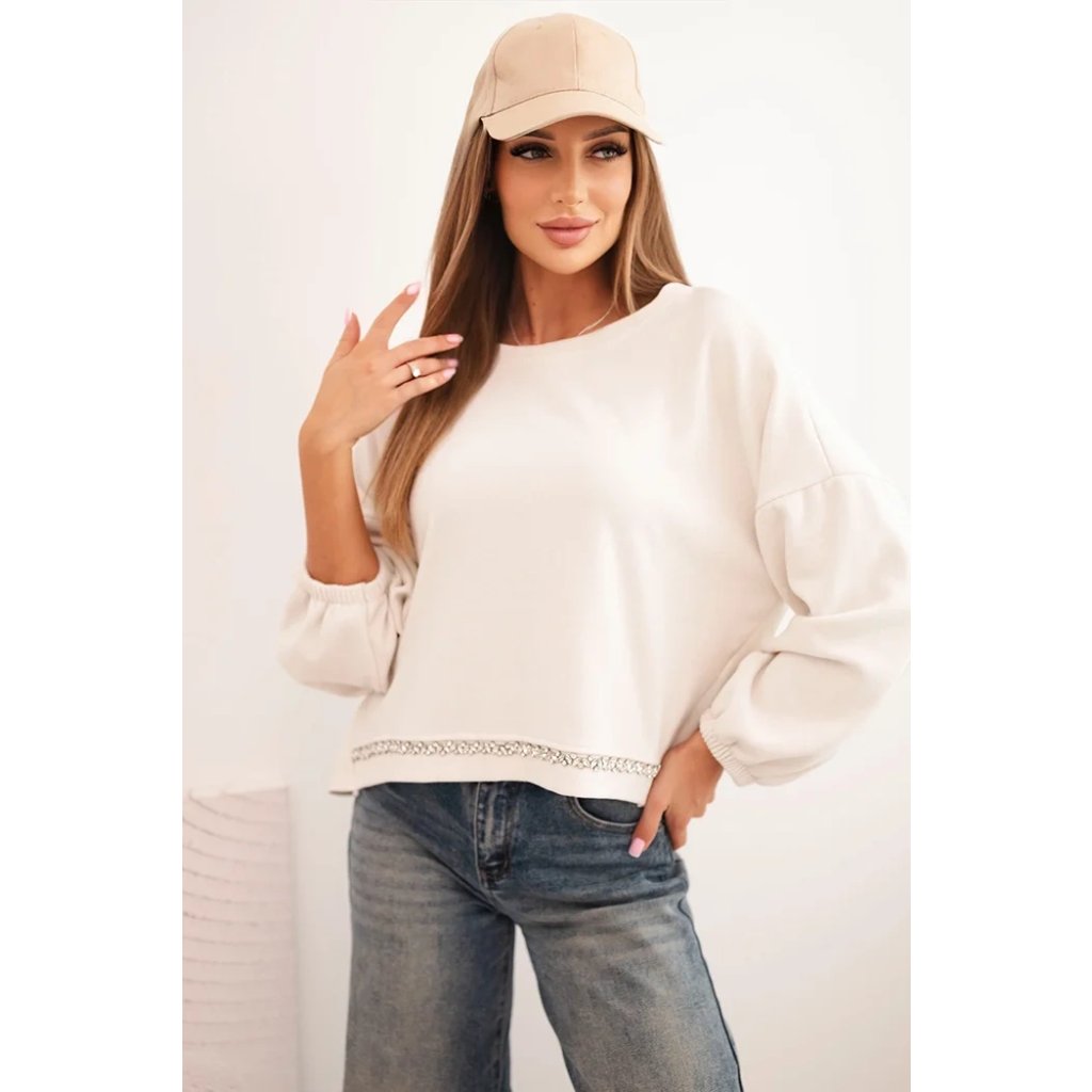 Dámska mikina s ozdobným zakončením dole krémová