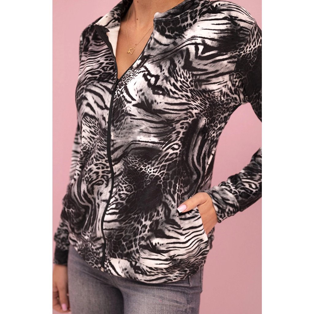 Táto dámska mikina s módnou, zvieracou potlačou je vynikajúcou voľbou pre ženy, ktoré si cenia pohodlie a neobyčajný štýl. Klasický strih s dlhým rukávom a praktickým zapínaním na zips zaručuje, že sa hodí ako na každodenné nosenie, tak aj na uvoľnenejšie vychádzky. Ideálna k džínsom, legínam alebo teplákom – bude skvelým základom pre casualové outfity počas celého roka. Mikina spája módny dizajn s funkčnosťou, čo z nej robí absolútny must-have v každej ženskej skrini. Veľkosť je univerzálna a bude vhodná pre dámy vo veľkosti S, M alebo L.
