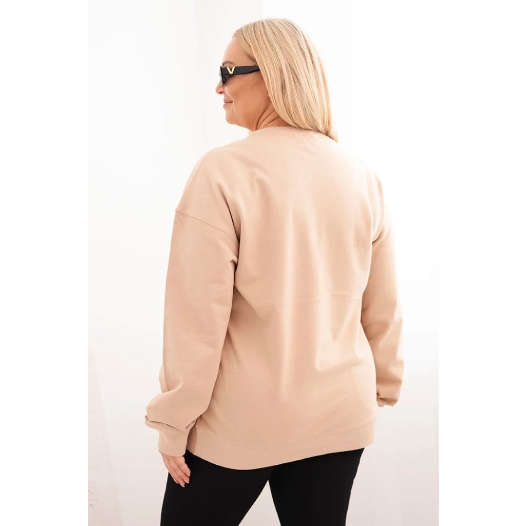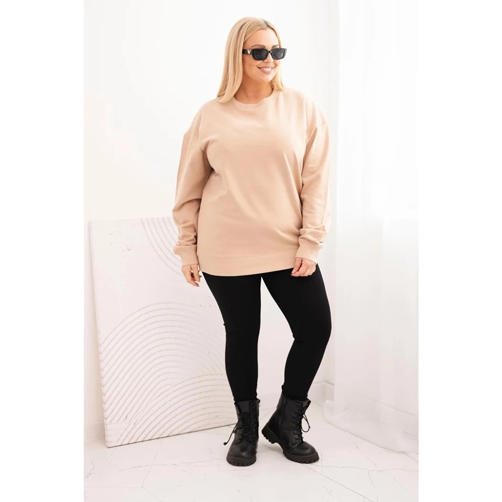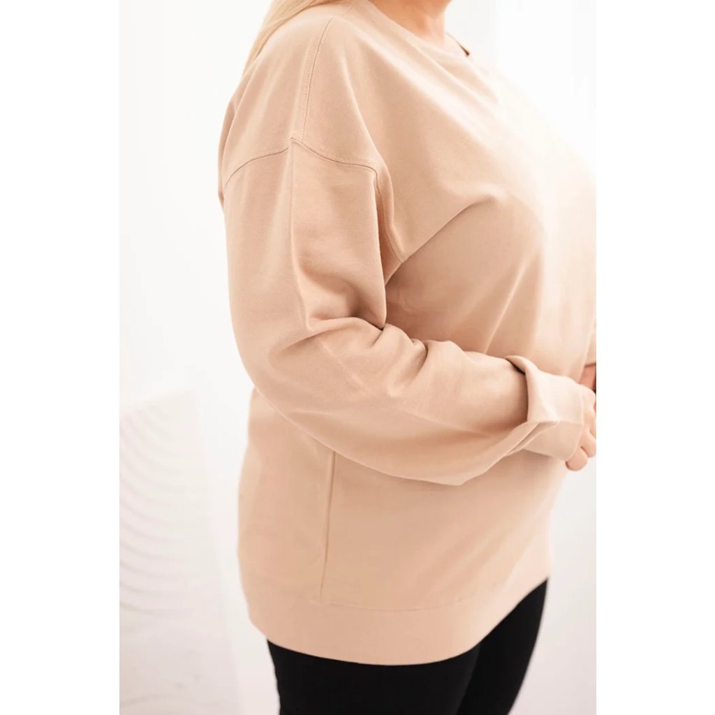 Dámska plus size bavlnená mikina basic s okrúhlym výstrihom béžová