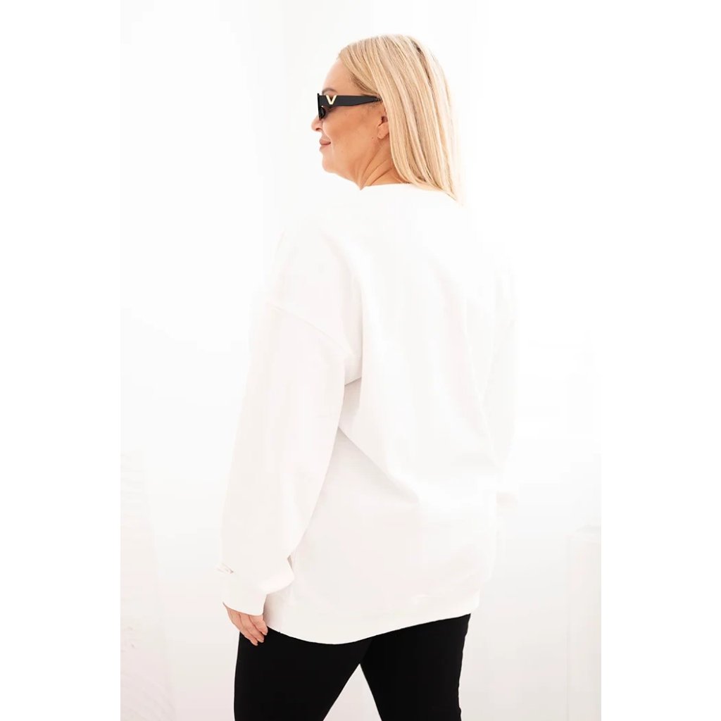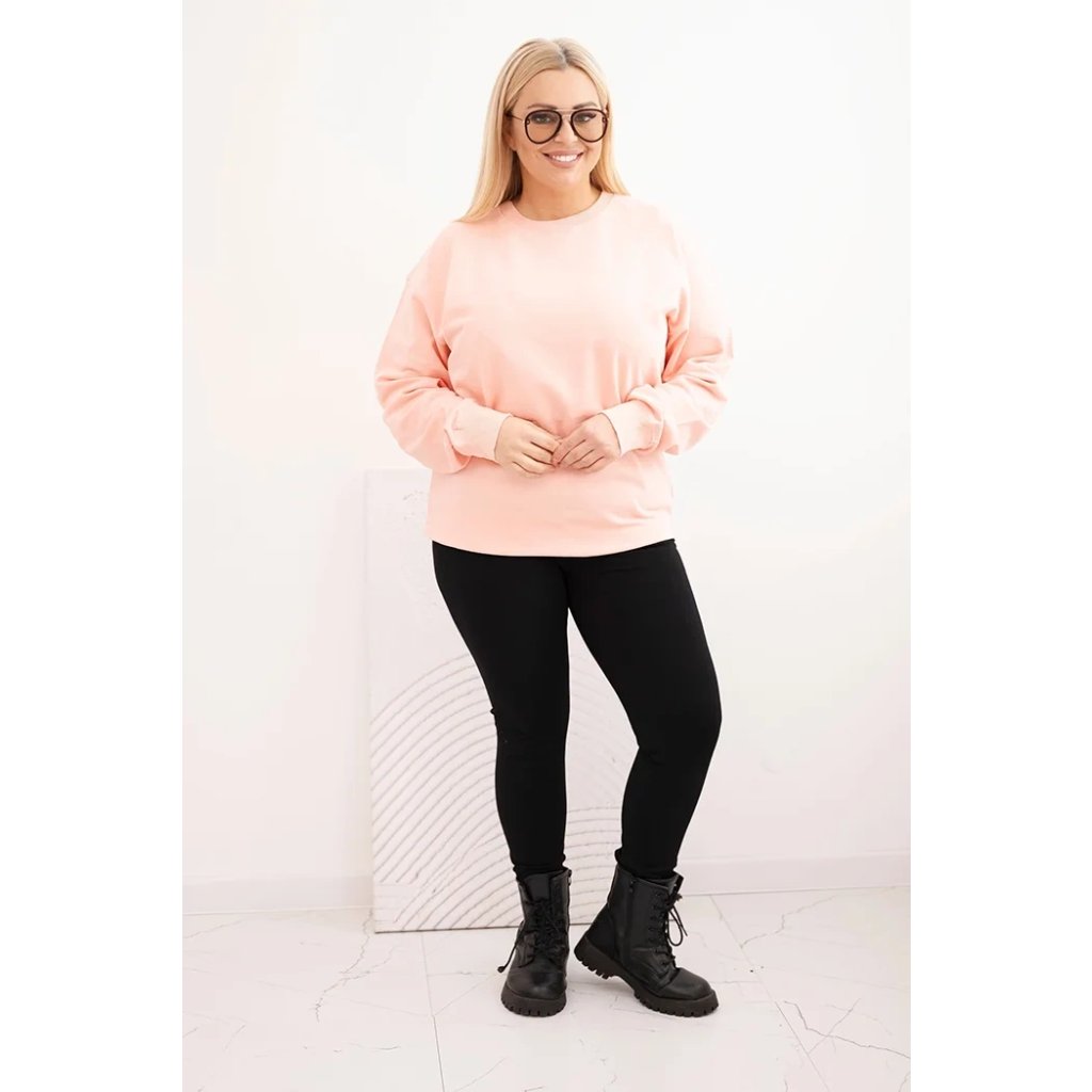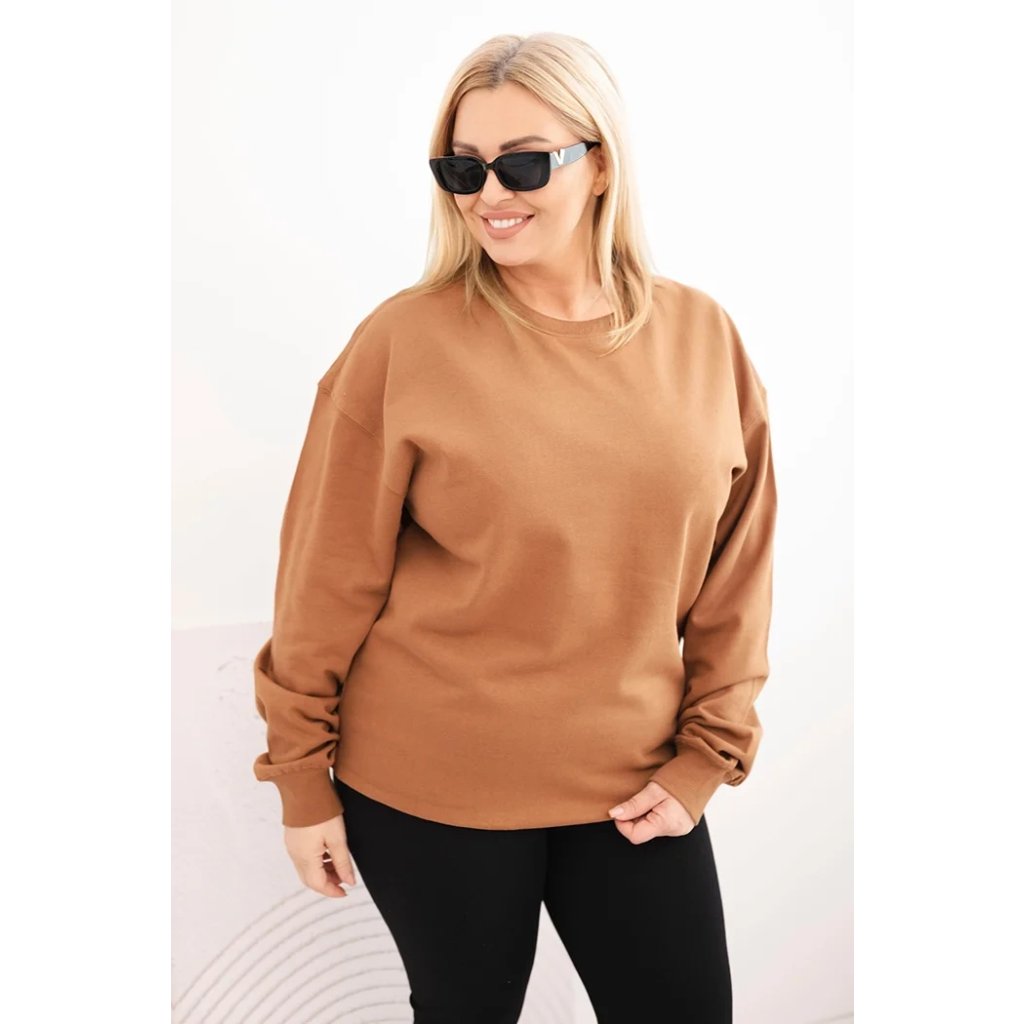 Dámska plus size bavlnená mikina basic s okrúhlym výstrihom béžová