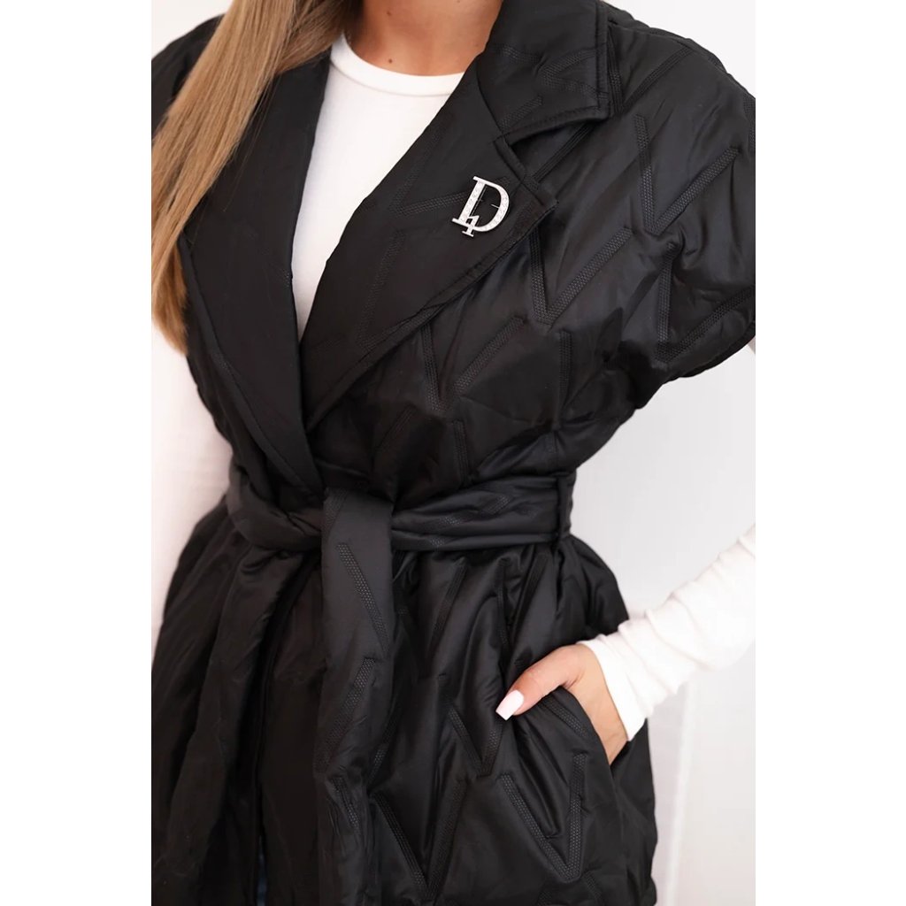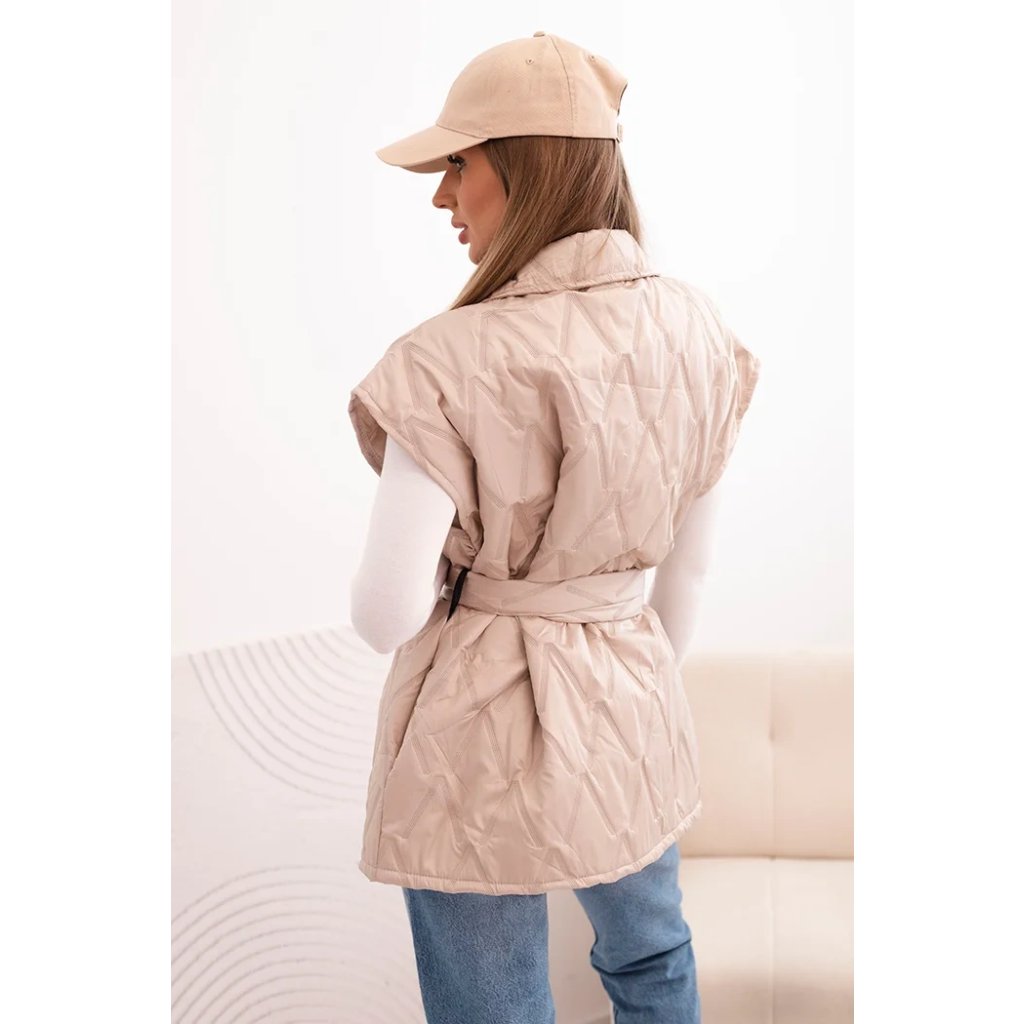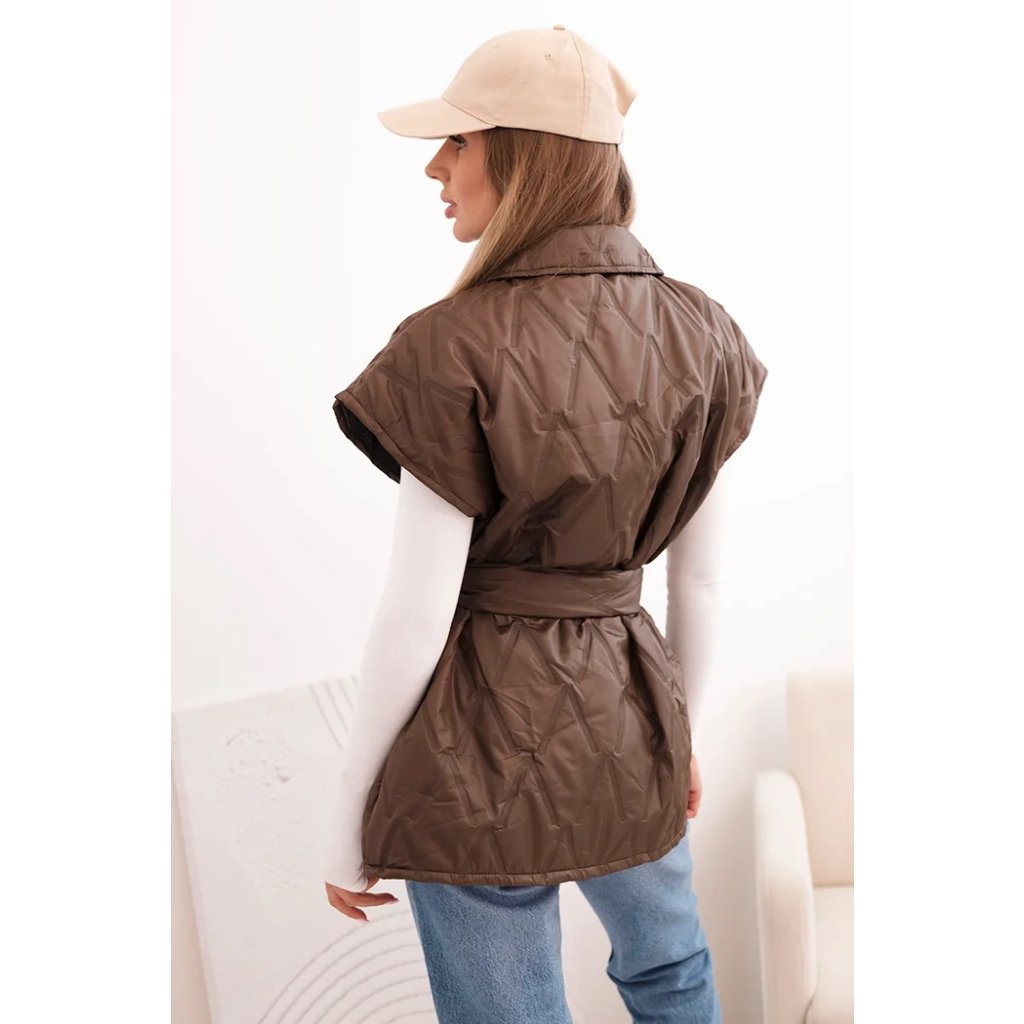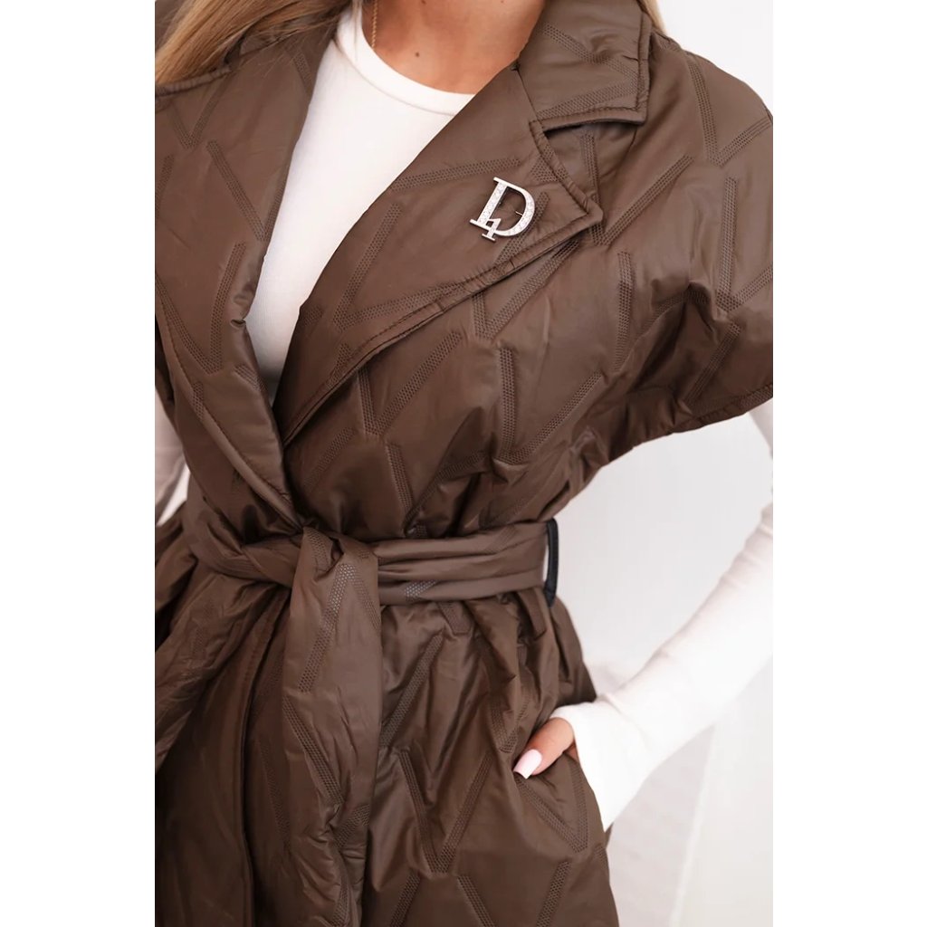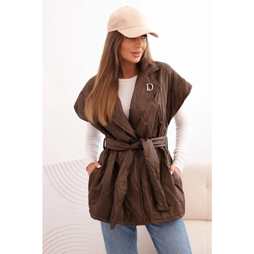 Dámska prešívaná vesta s opaskom a širokým golierom hnedá