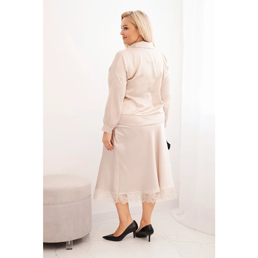 Dámska súprava Plus Size so saténovým leskom a čipkou béžová