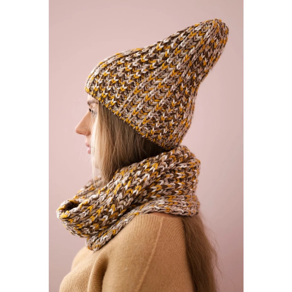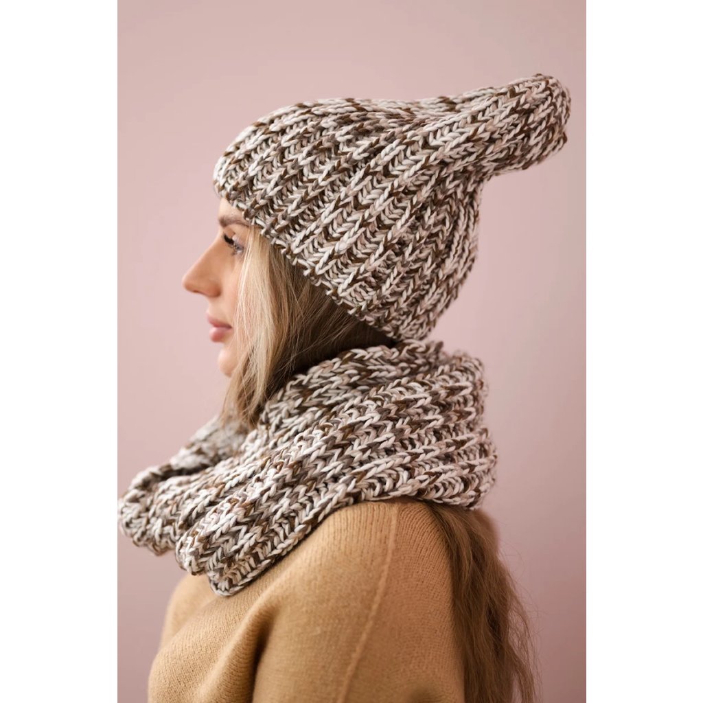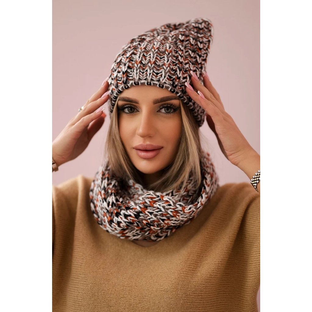 Ponúkame vám teplú súpravu pozostávajúcu z čiapky a nákrčníka. Súprava sa vyznačuje atraktívnym vzhľadom a solídnym spracovaním. Veľmi pekný vzor spôsobí, že súprava bude módnym a praktickým doplnkom počas mnohých sezón. Veľkosť čiapky a nákrčníka je univerzálna.