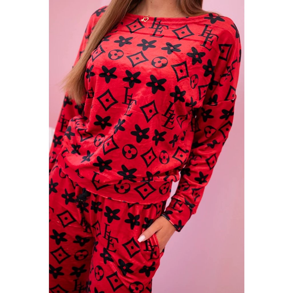 Hľadáte štýlovú a pohodlnú súpravu na každý deň alebo na relax doma Táto dámska tepláková súprava z velúru je ideálnou voľbou! Skladá sa z voľnej mikiny so širokým výstrihom a jogger nohavíc s elastickým pásom a šnúrkou. Celá súprava je vyrobená z mäkkého, mierne lesklého materiálu s módnym monogramom, ktorý upúta pohľady. Je to skvelý návrh na chladnejšie dni – mäkký velúr príjemne obopína telo a voľný strih zabezpečuje úplný komfort. Súprava je ideálna ako na domáce použitie, tak aj na výlety v športovom štýle. Veľkosť je univerzálna a bude vhodná pre dámy vo veľkosti S, M alebo L.