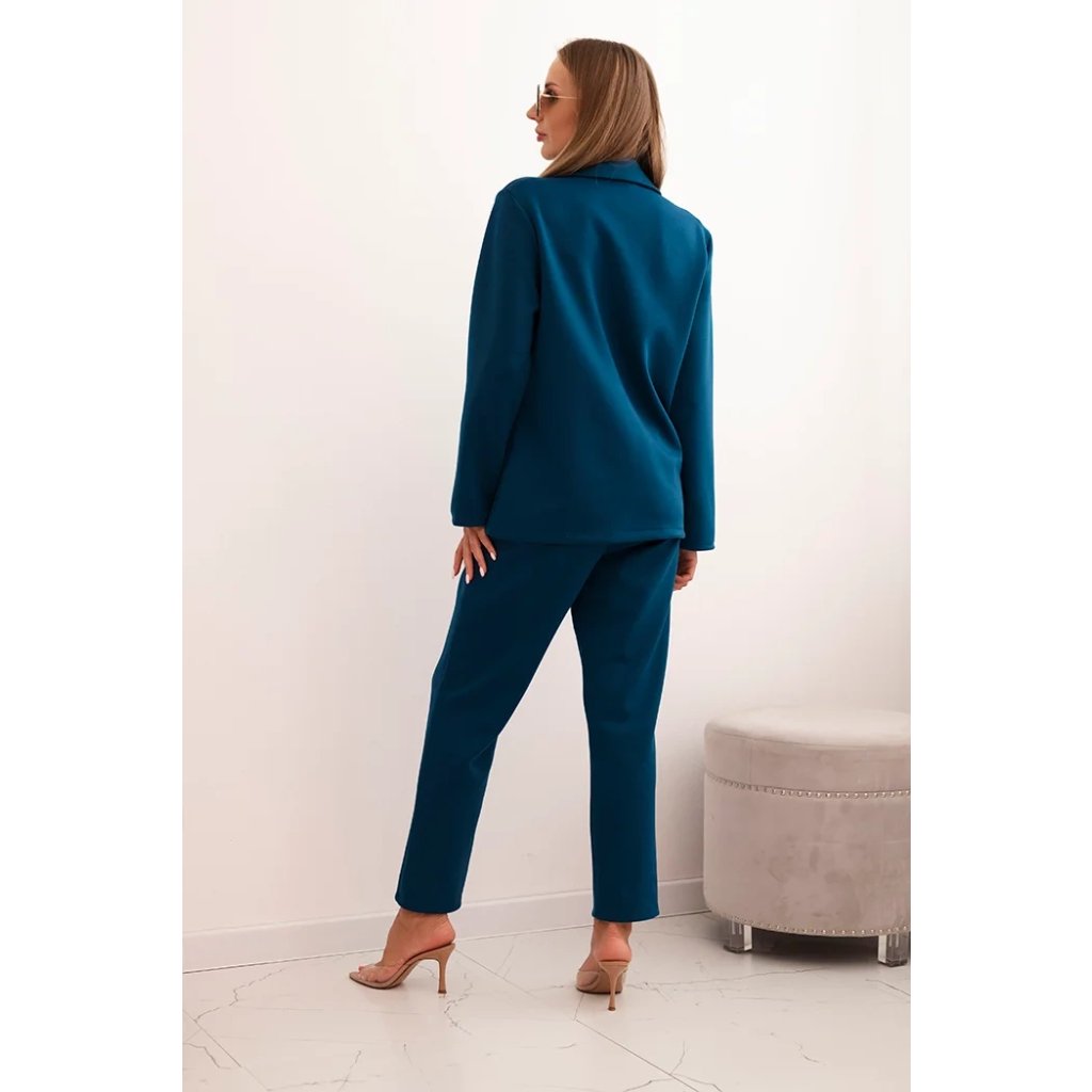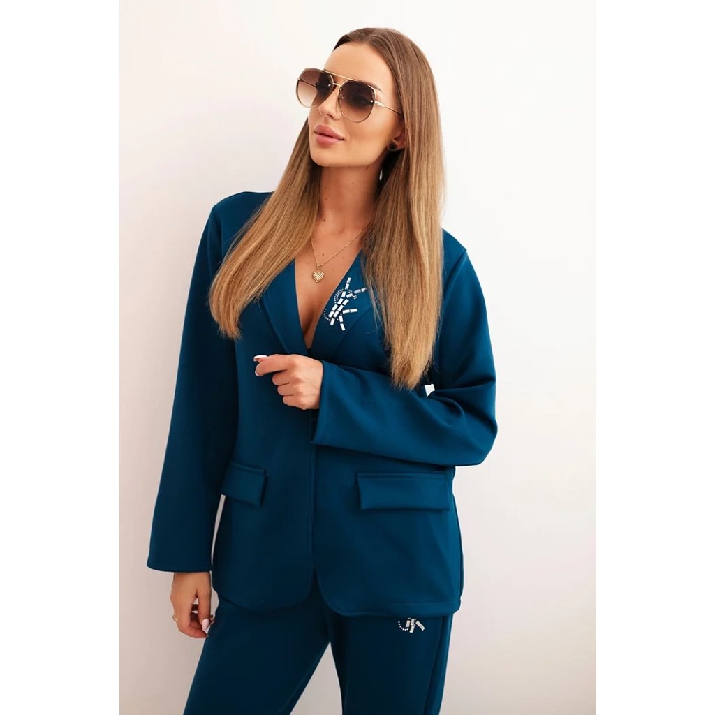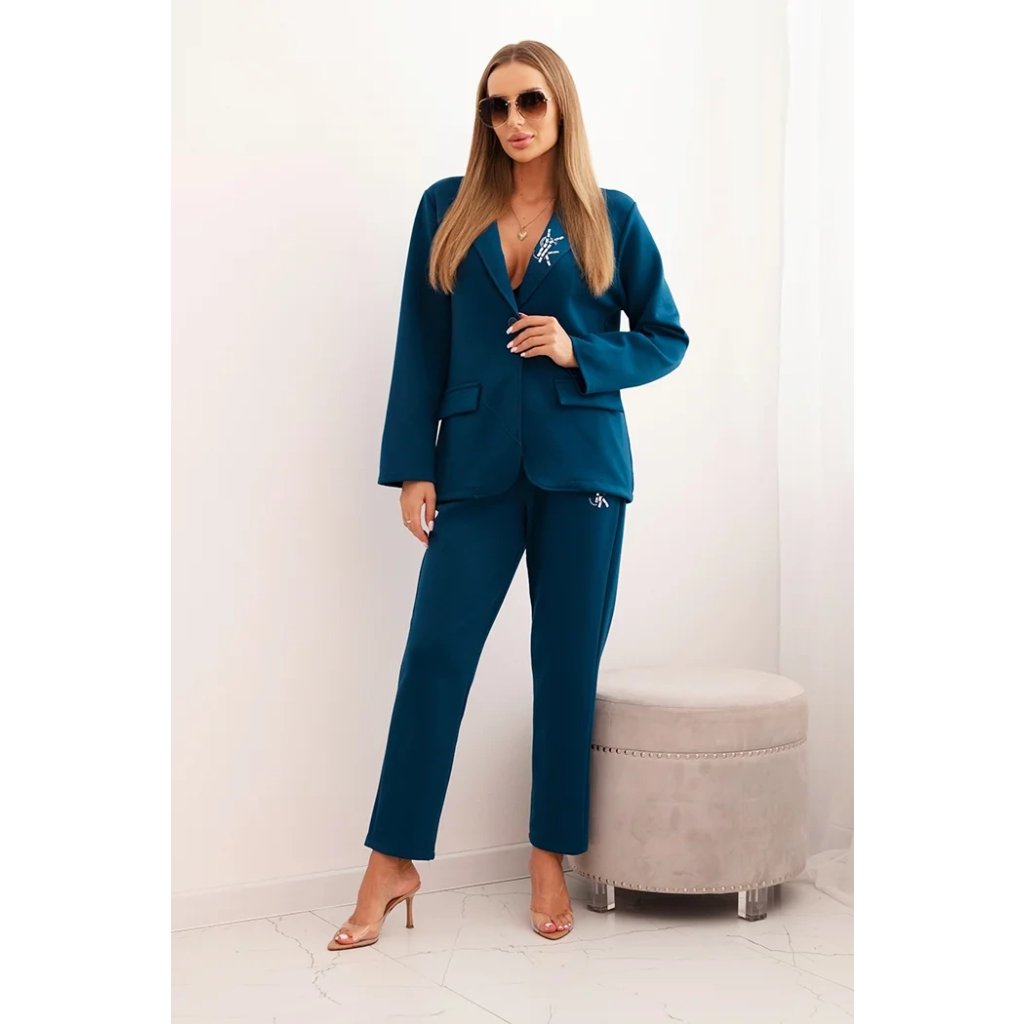 Elegantný dámsky komplet s viskózou je ideálnou kombináciou klasiky a modernosti. Sako s jednoduchým strihom s ozdobným motívom z džínsov na hrudi dodáva štylizácii unikátny charakter a pohodlné nohavice s elastickým pásom a jemnou výzdobou vytvárajú súdržný a štýlový celok. Je to vynikajúci set na mnoho príležitostí – do práce, na stretnutia alebo na každodenné vychádzky.
