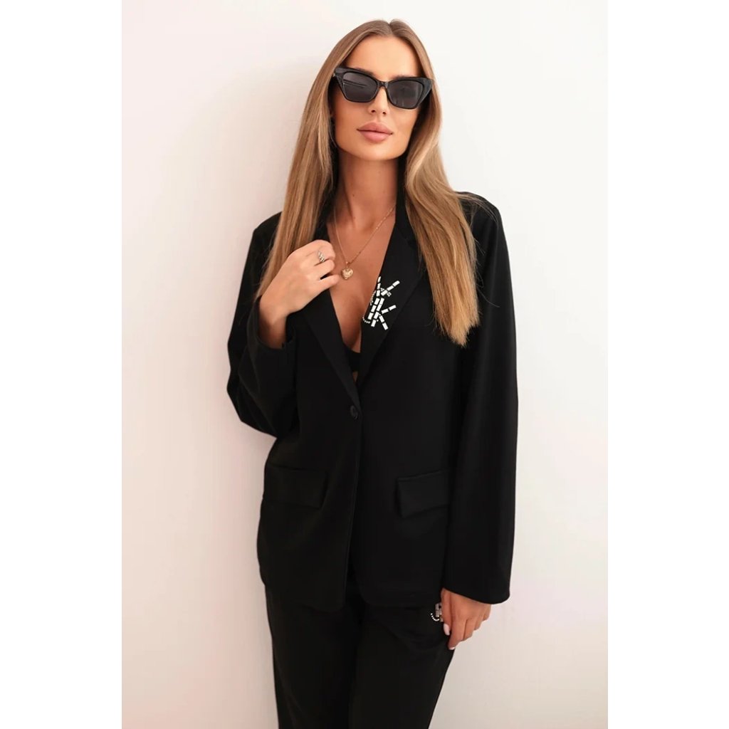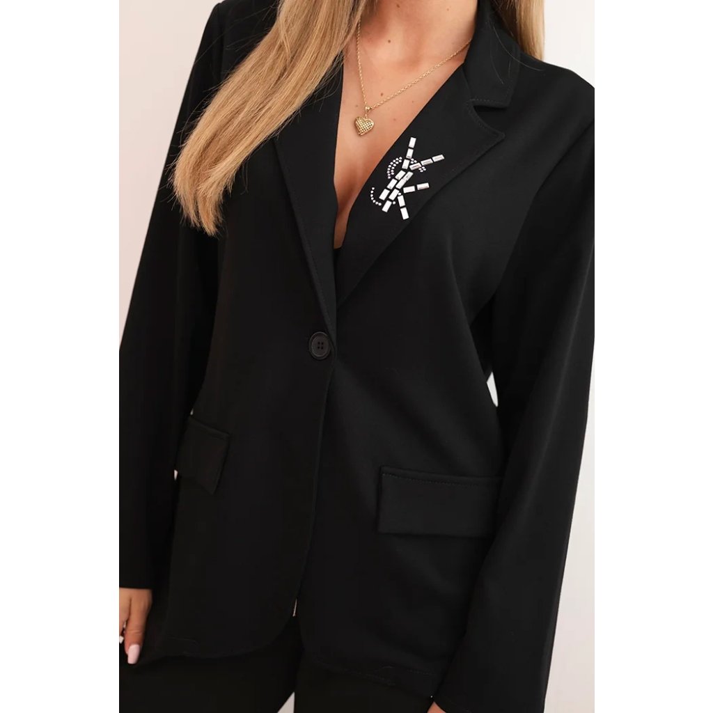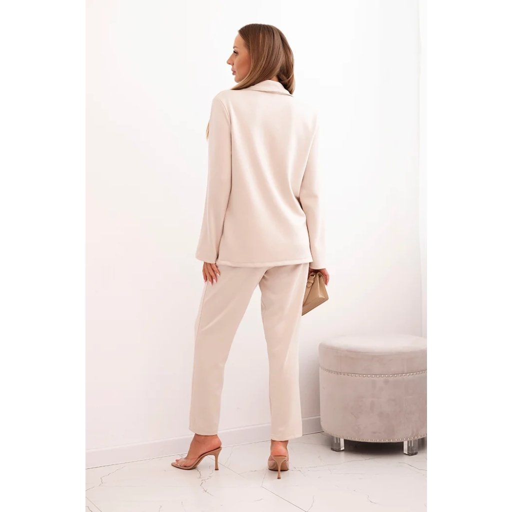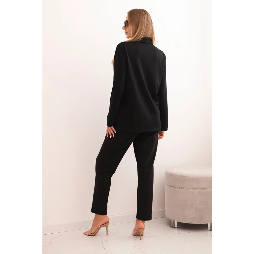 Elegantný dámsky komplet s viskózou je ideálnou kombináciou klasiky a modernosti. Sako s jednoduchým strihom s ozdobným motívom z džínsov na hrudi dodáva štylizácii unikátny charakter a pohodlné nohavice s elastickým pásom a jemnou výzdobou vytvárajú súdržný a štýlový celok. Je to vynikajúci set na mnoho príležitostí – do práce, na stretnutia alebo na každodenné vychádzky.