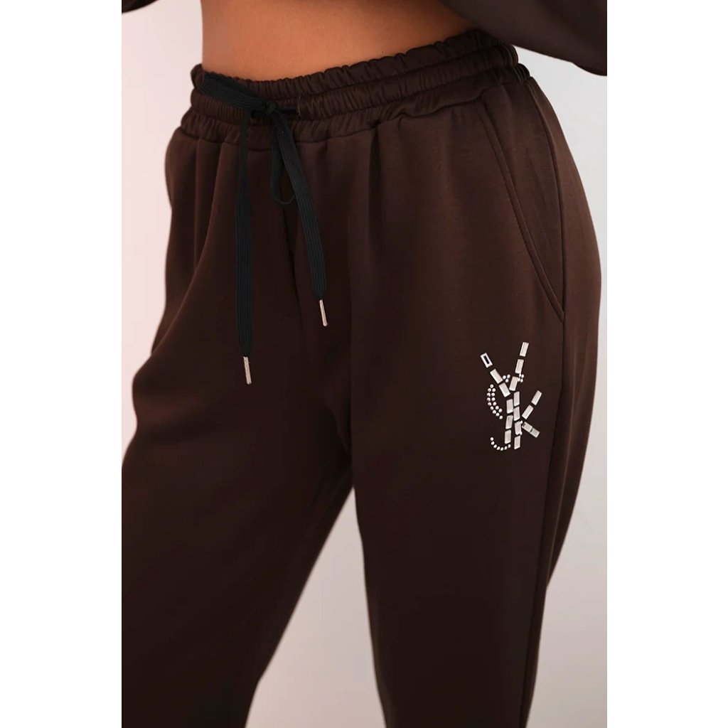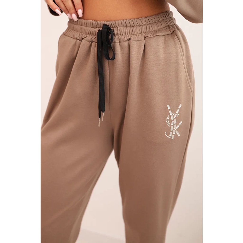 Dámska súprava z viskózy s ozdobami a elastickými nohavicami hnedá