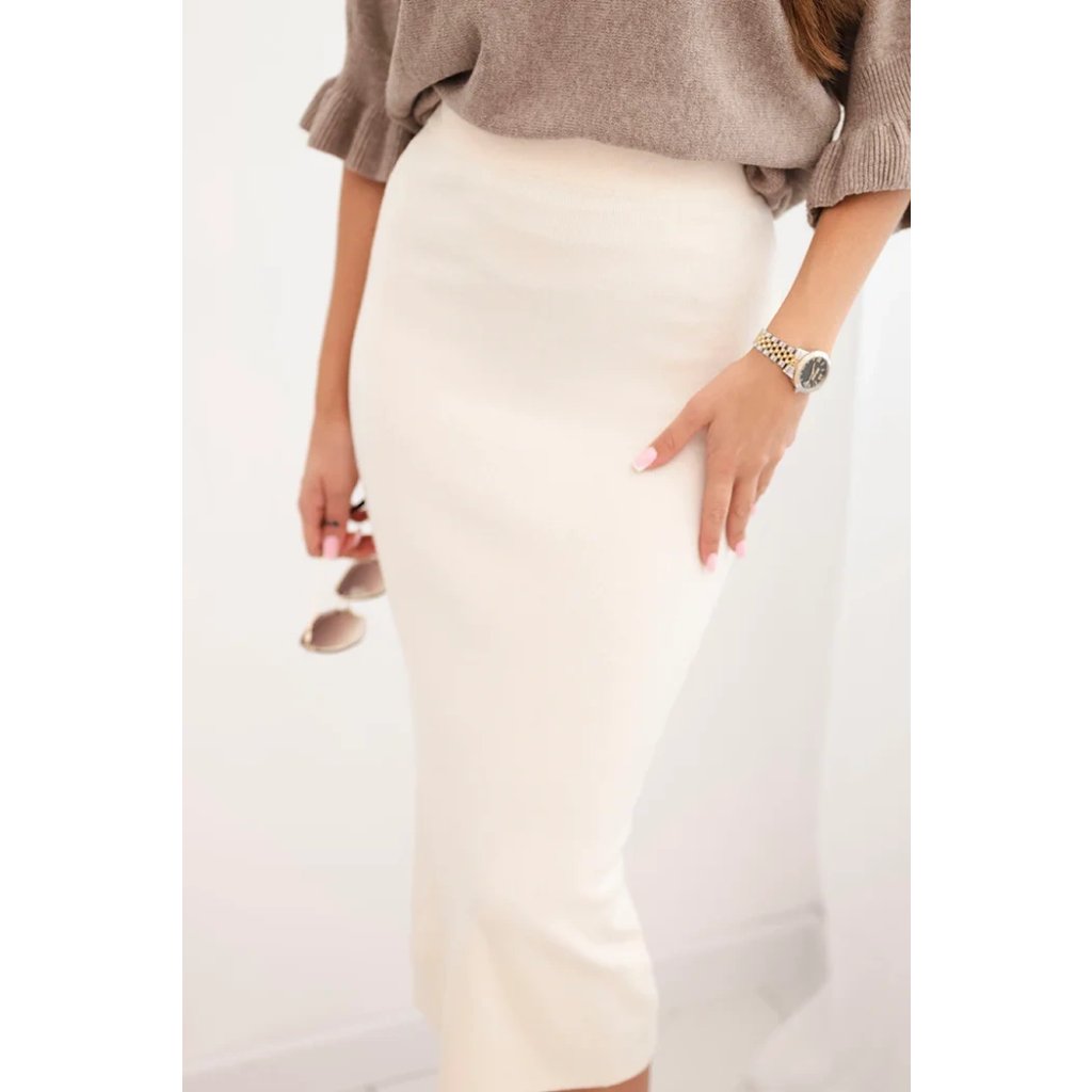 Dámska viskózová puzdrová sukňa s elastickým pásom tmavo béžová