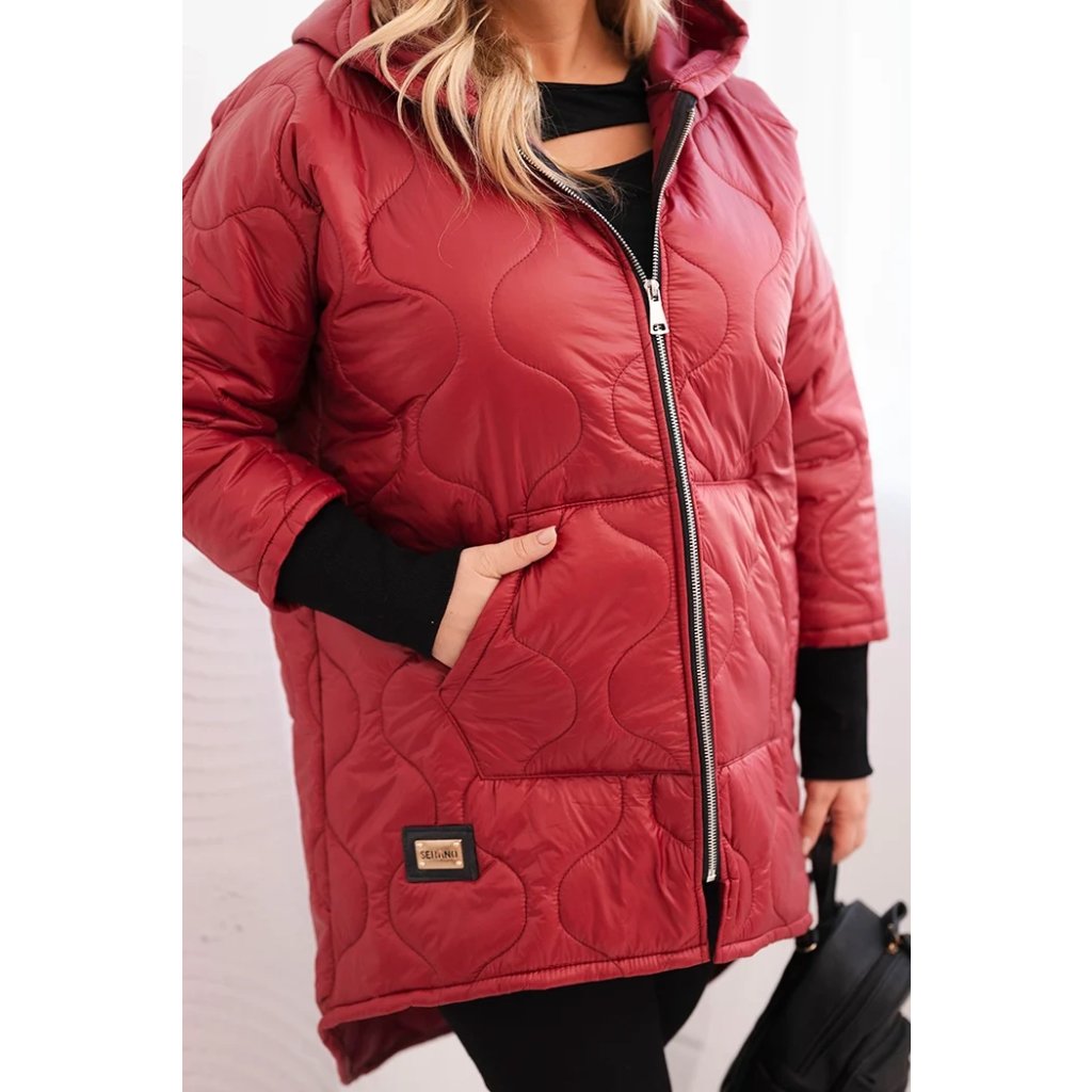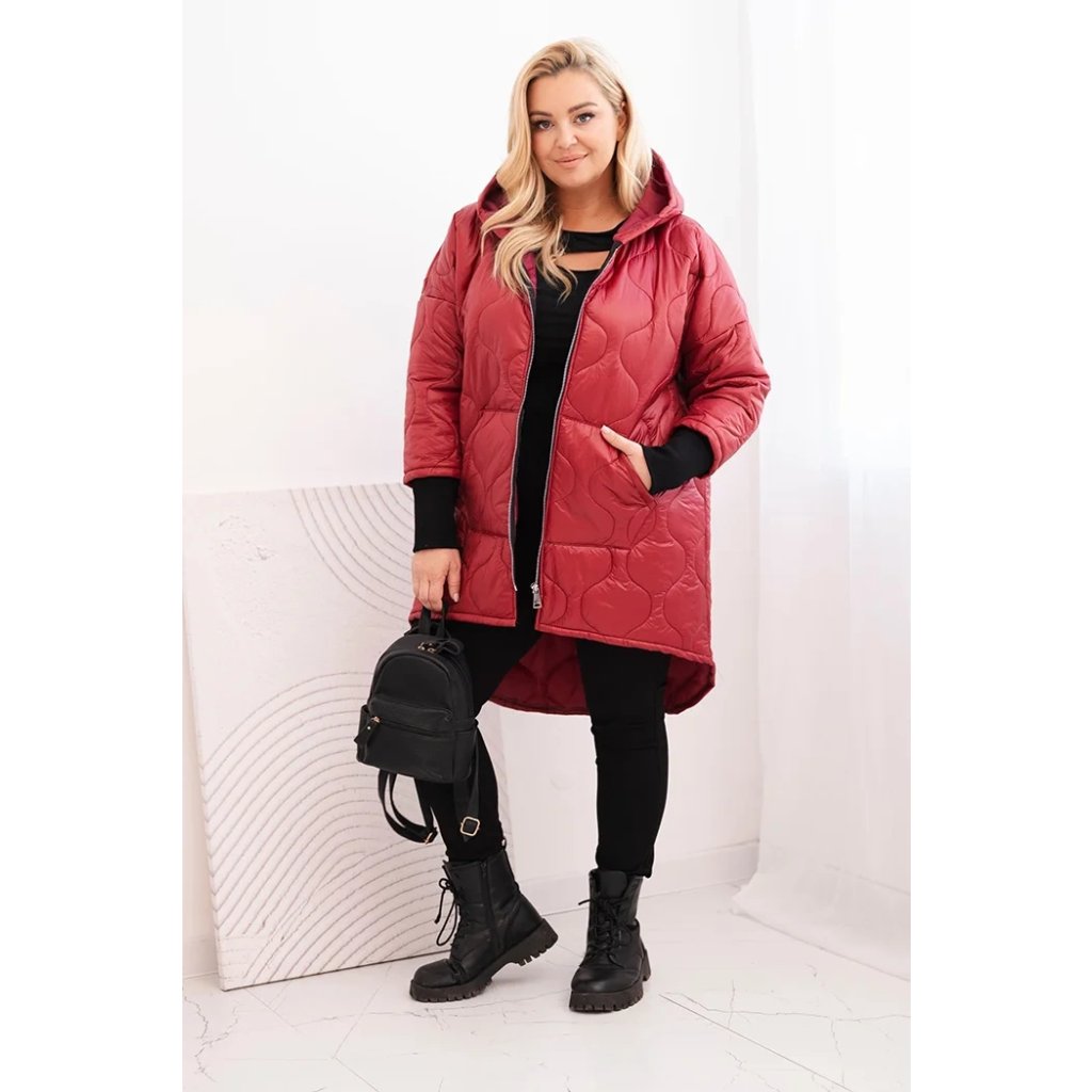 Dámska zimná bunda Plus Size prešívaná s kapucňou bordová