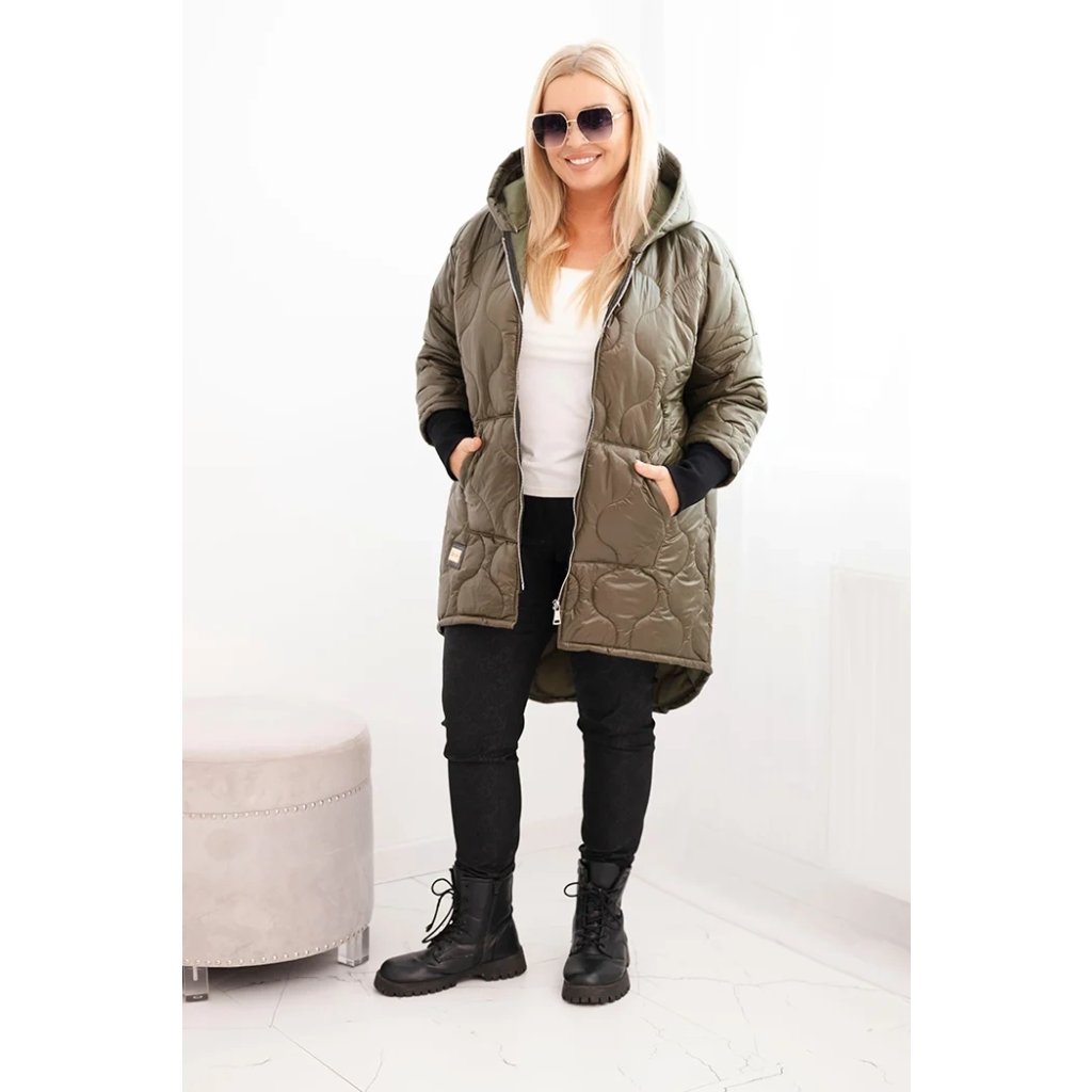 Teplá a štýlová dámska bunda Plus Size s moderným, asymetrickým strihom s predĺženým zadným dielom. Model vyrobený z prešívaného materiálu, ideálny na chladnejšie dni. Má praktickú kapucňu, zapínanie na zips a pohodlné manžety na rukávoch. Skvele sa hodí do každodenných outfitov – ako k nohaviciam, tak aj k legínam.