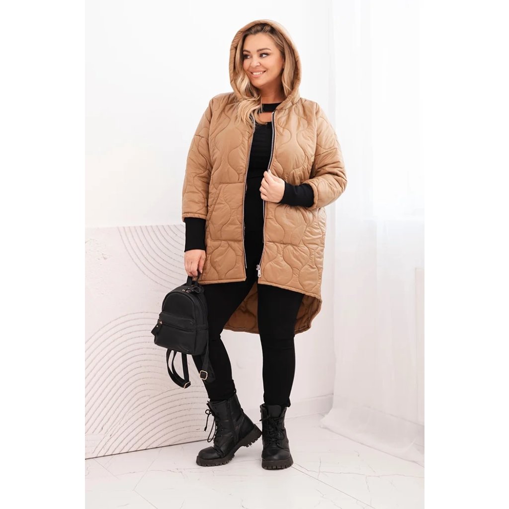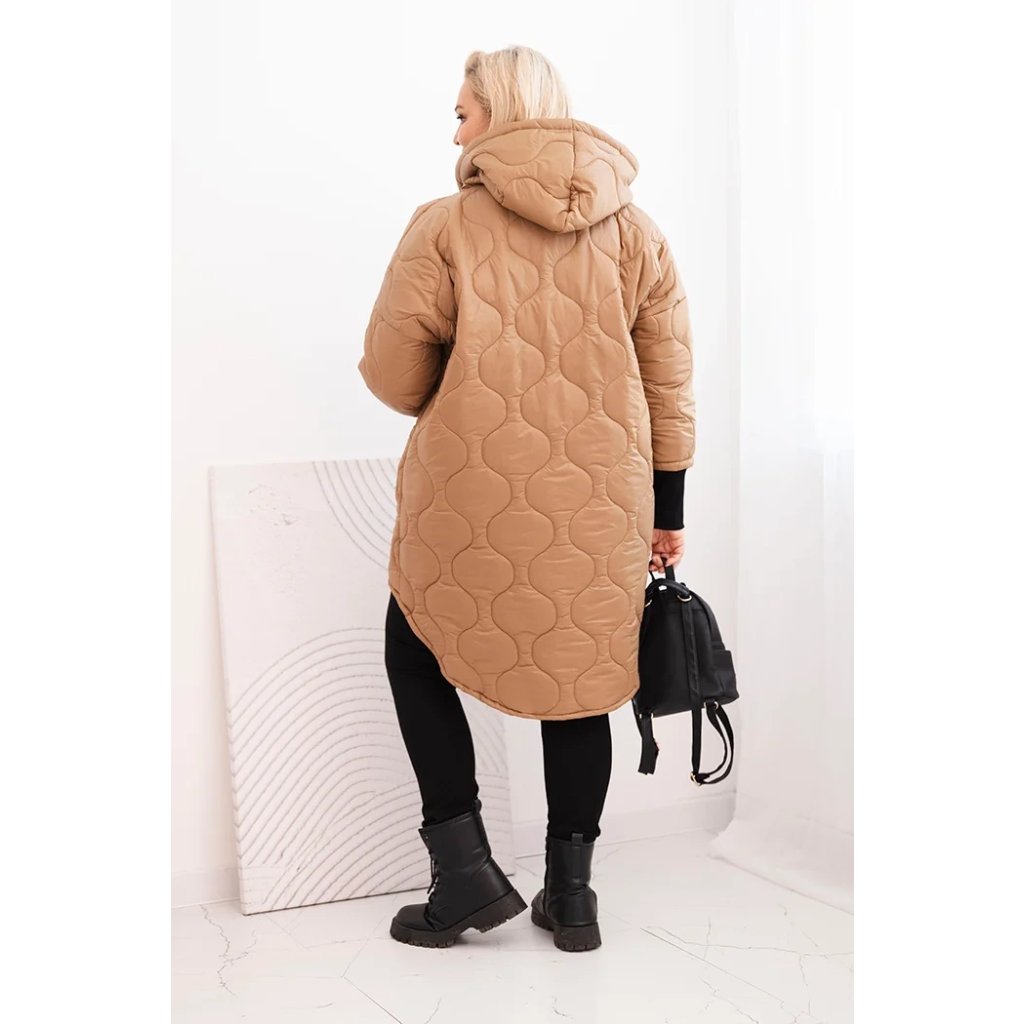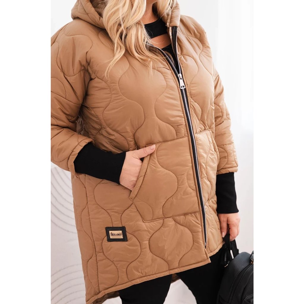 Dámska zimná bunda Plus Size prešívaná s kapucňou ťavia