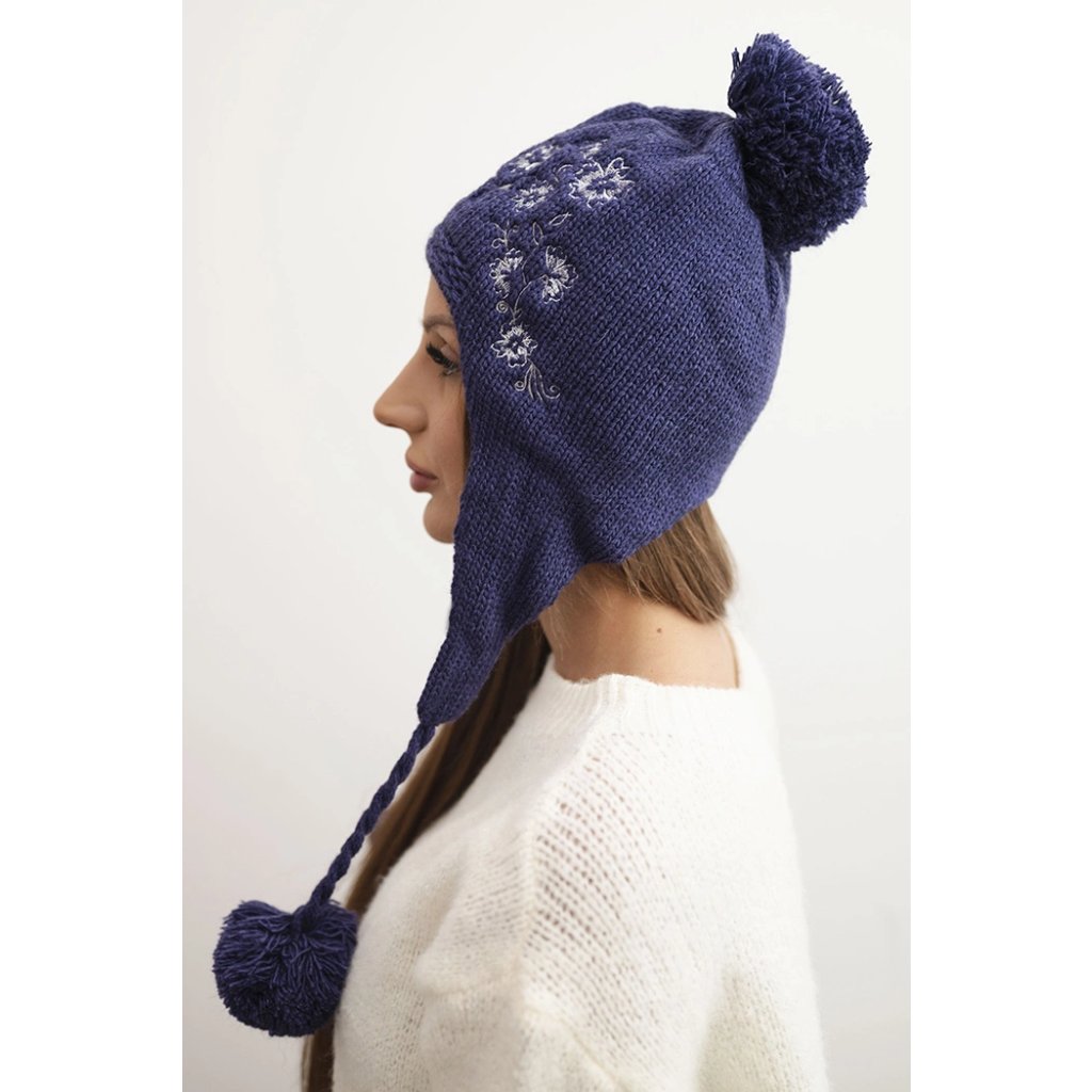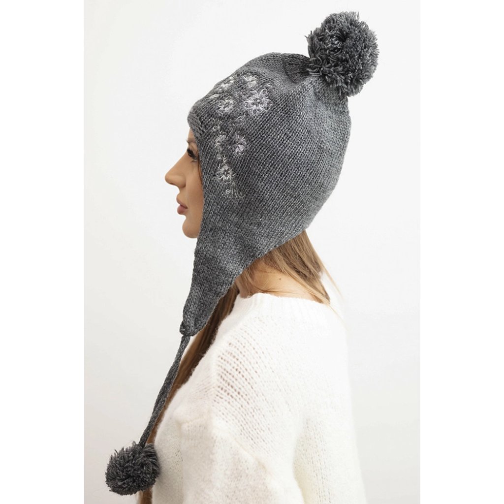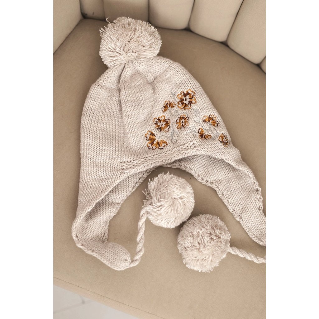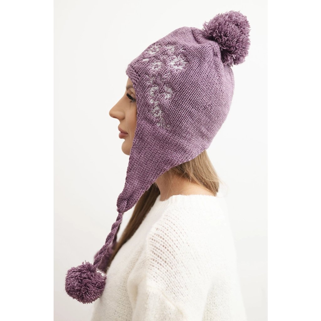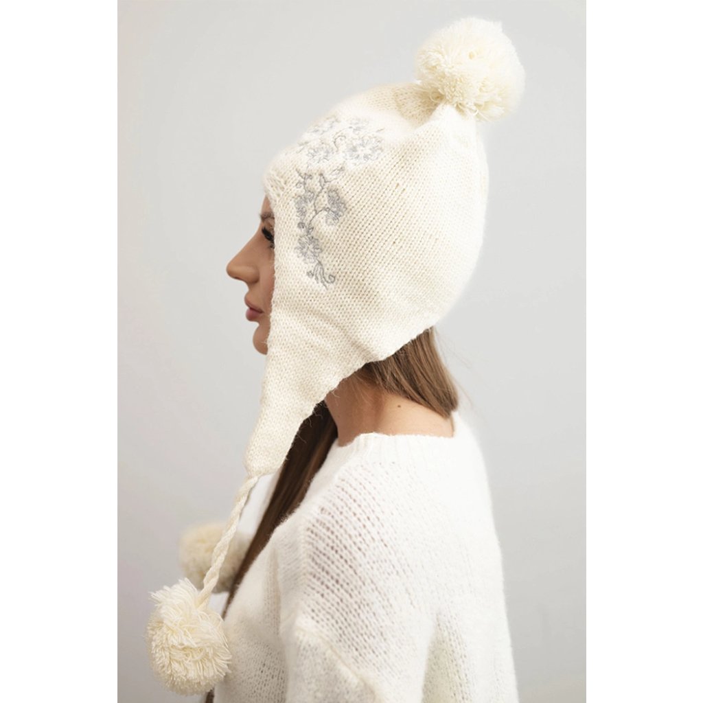Teplá a štýlová baranica s roztomilými brmbolcami a jemným, vyšitým vzorom. Model ideálny na zimné dni – zaručuje pohodlie, chráni uši pred vetrom a pritiahne pohľady originálnym dizajnom.
