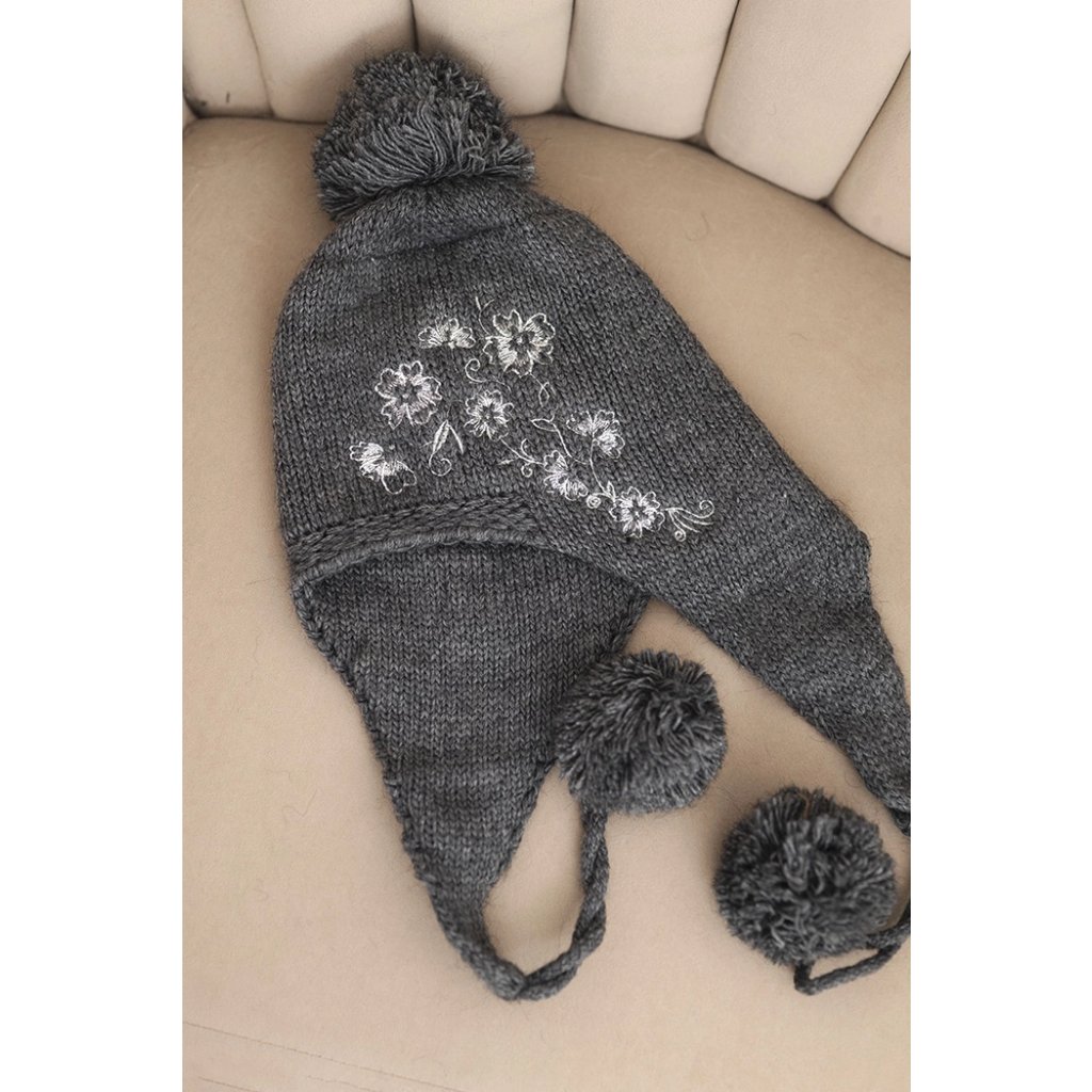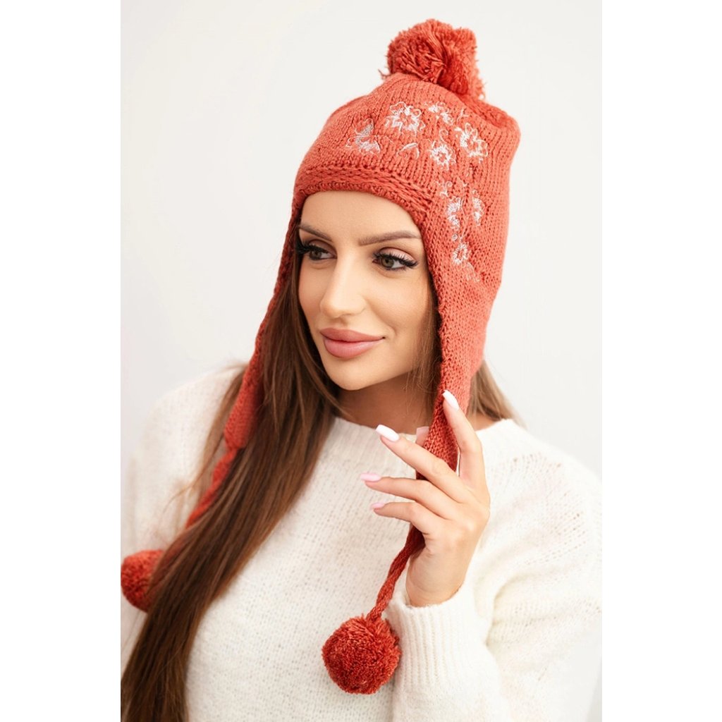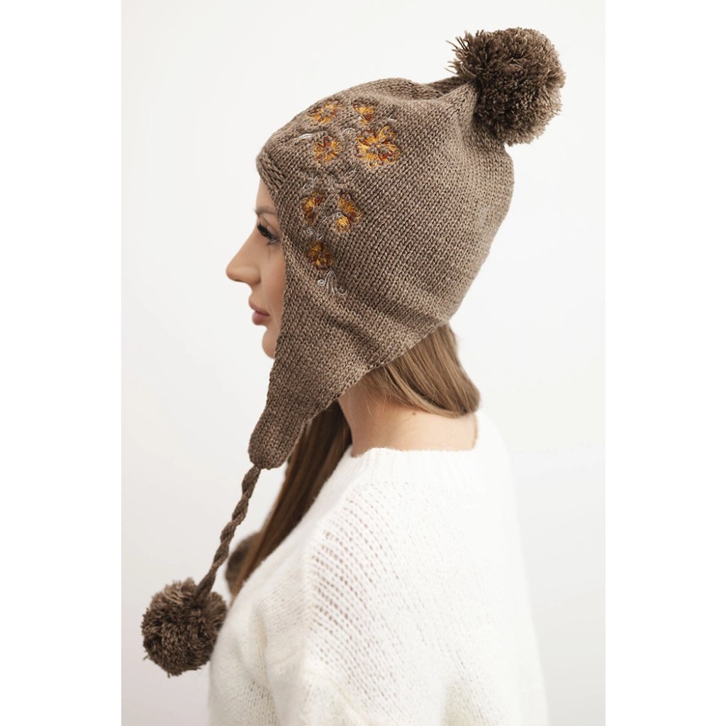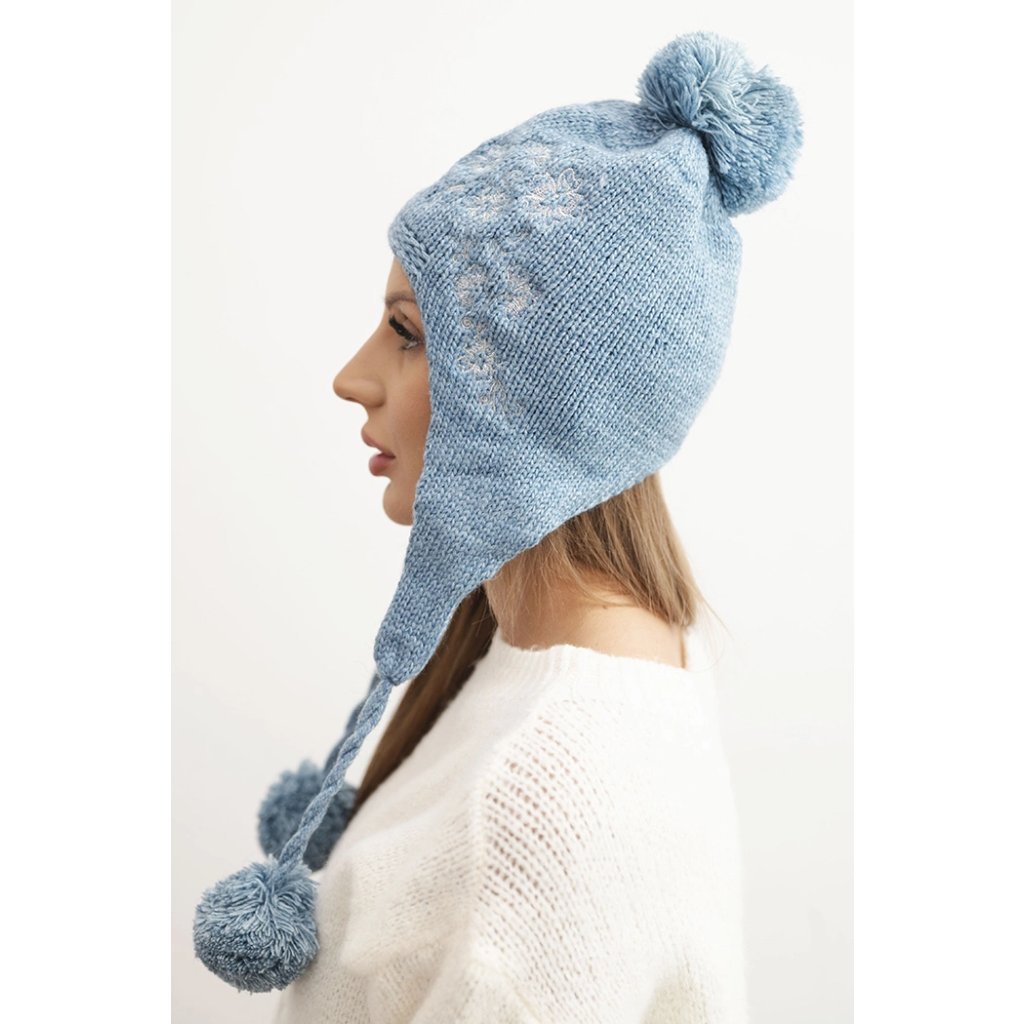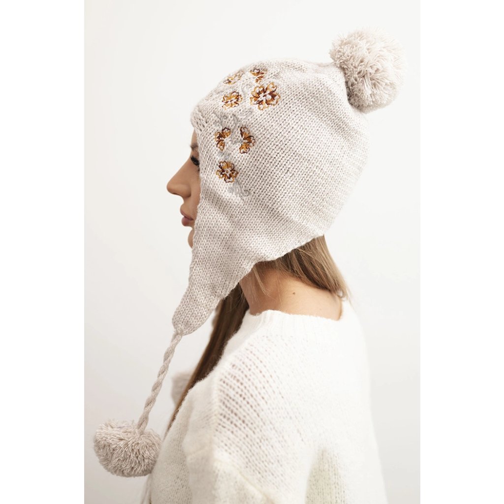 Teplá a štýlová baranica s roztomilými brmbolcami a jemným, vyšitým vzorom. Model ideálny na zimné dni – zaručuje pohodlie, chráni uši pred vetrom a pritiahne pohľady originálnym dizajnom.