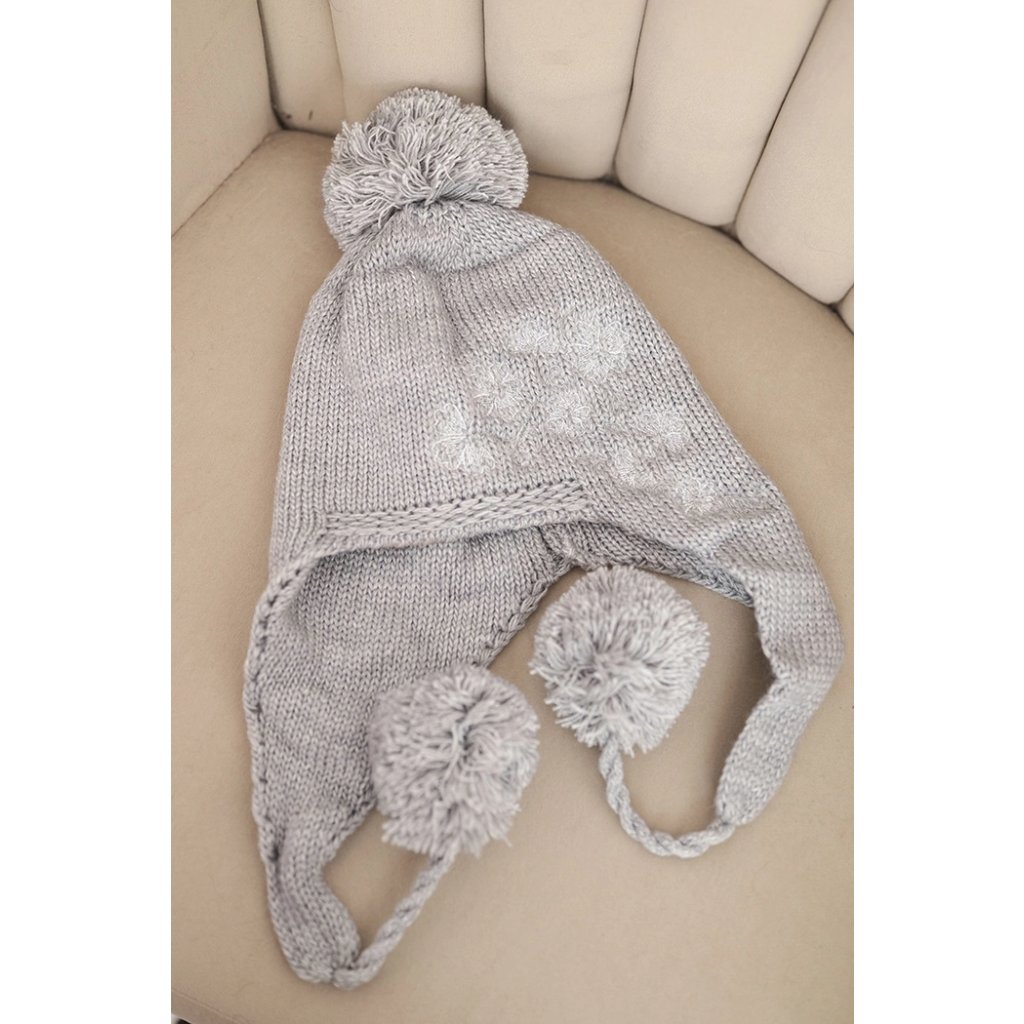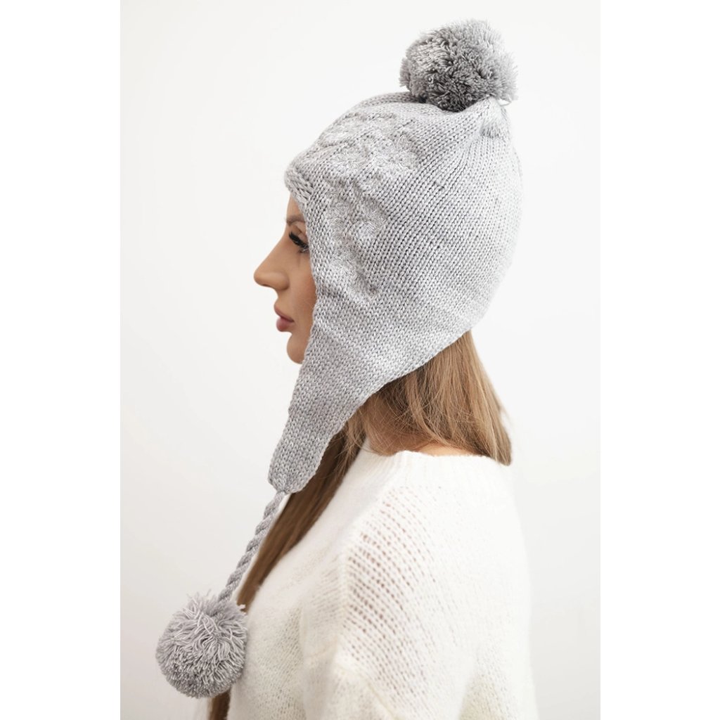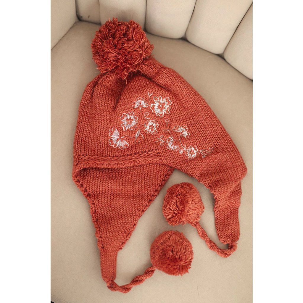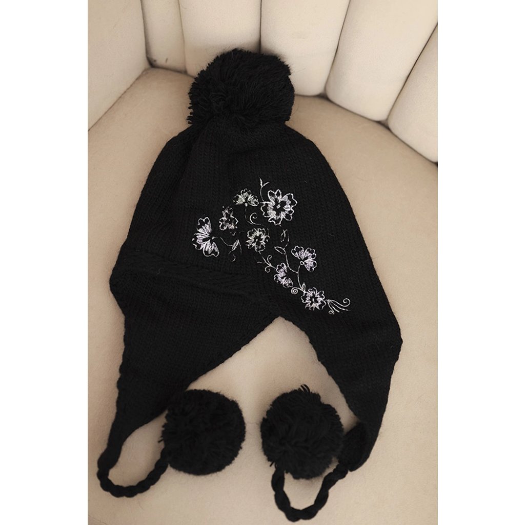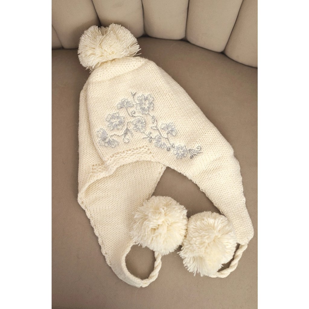 Teplá a štýlová baranica s roztomilými brmbolcami a jemným, vyšitým vzorom. Model ideálny na zimné dni – zaručuje pohodlie, chráni uši pred vetrom a pritiahne pohľady originálnym dizajnom.