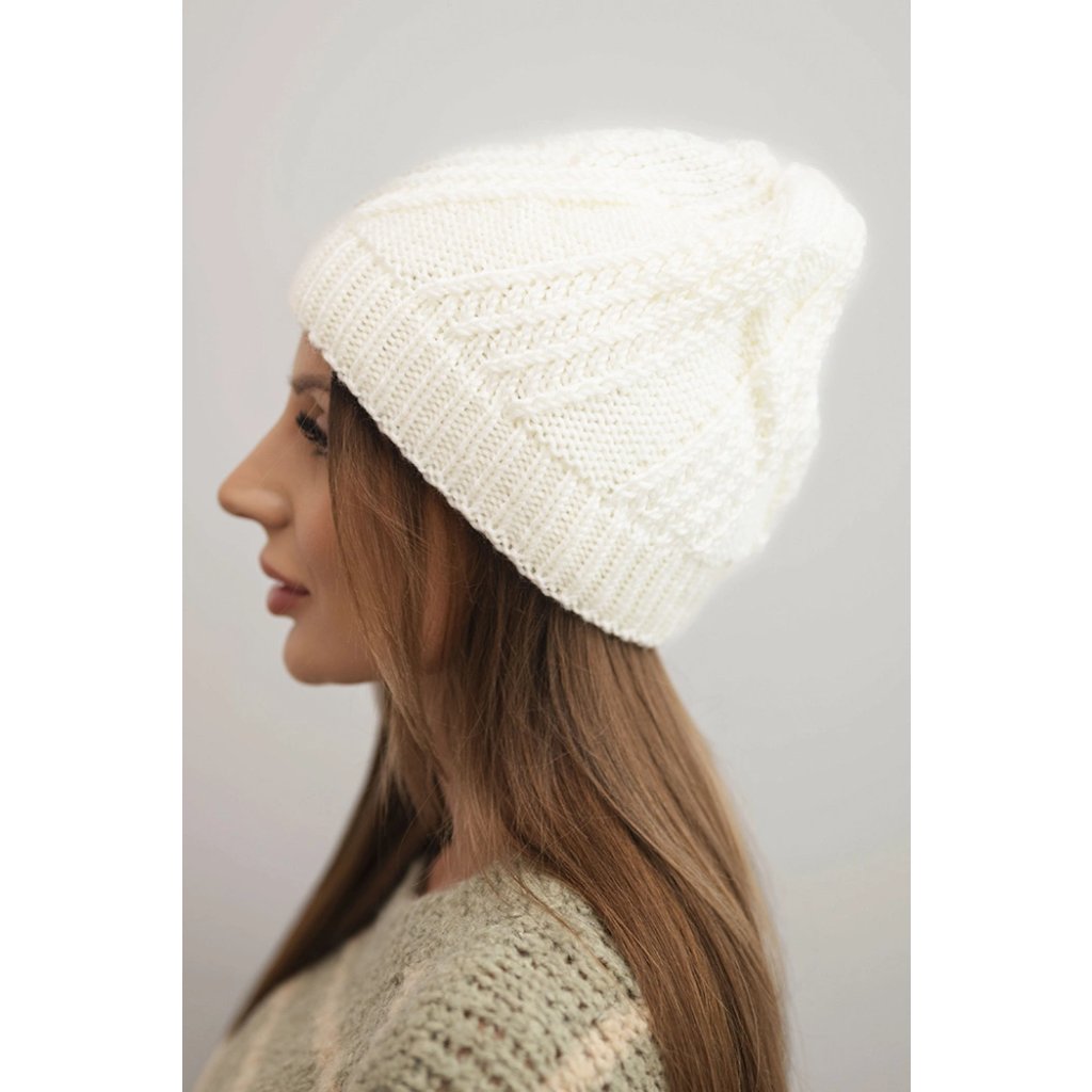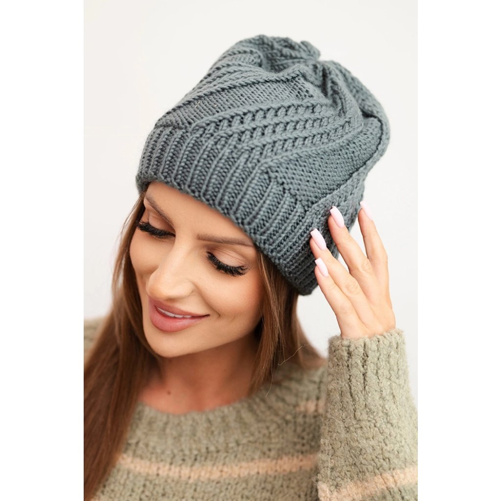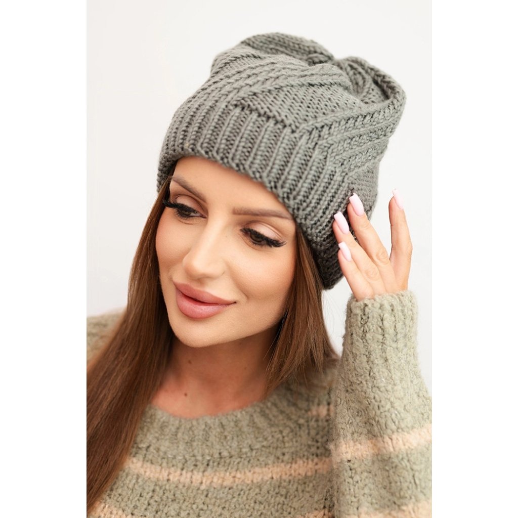 Štýlová a teplá dámska čiapka vyrobená z pleteniny s výrazným vzorom, ideálna na chladné dni. Vyrobená z vysoko kvalitnej zmesi vlny a akrylu, poskytuje tepelný komfort a príjemné prispôsobenie hlave. Elastická štruktúra materiálu zaručuje, že čiapka dobre sedí a netlačí.