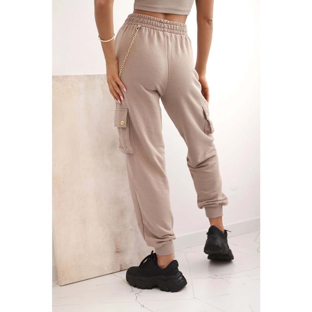 Dámske bavlnené cargo nohavice s vreckami a reťazou béžové