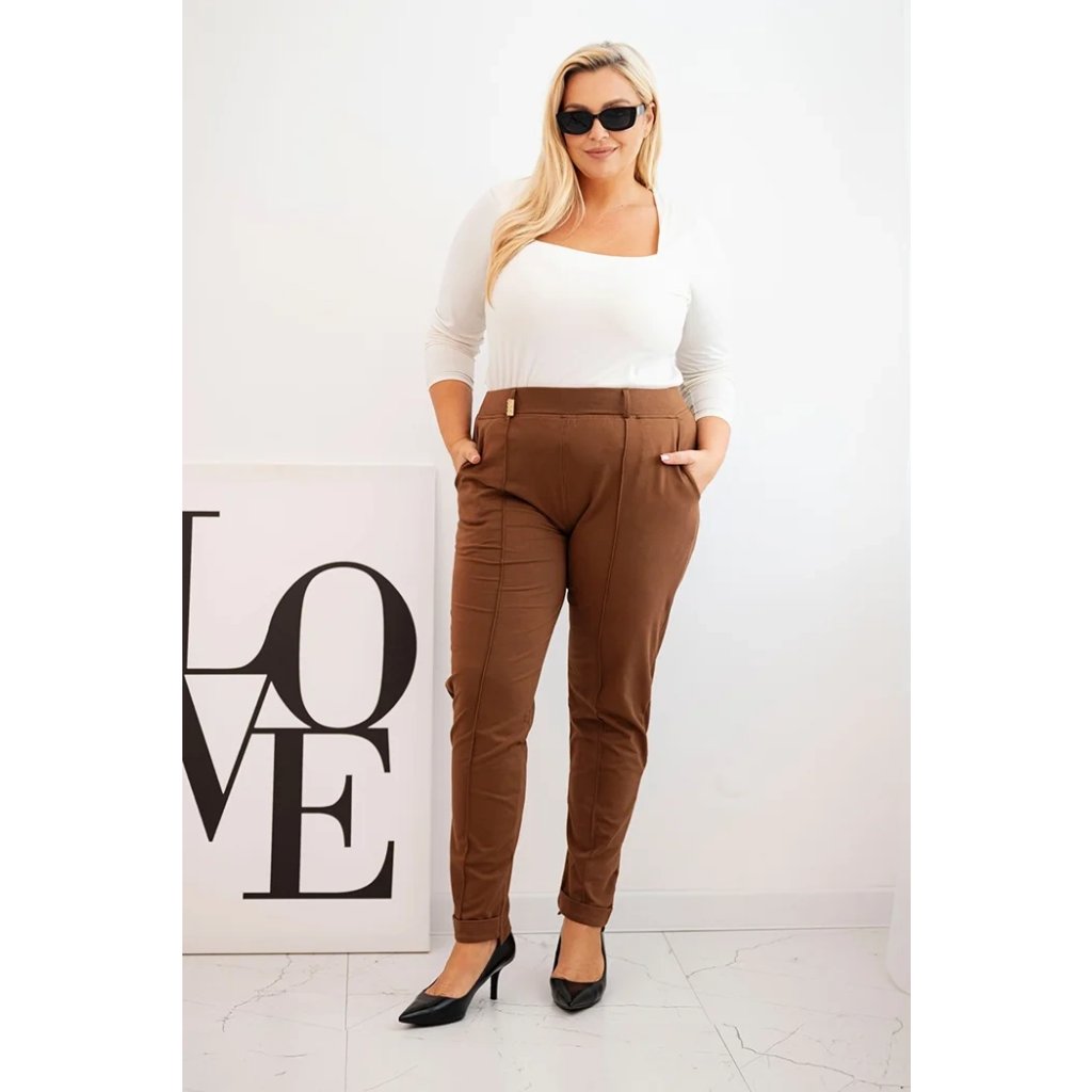 Dámske bavlnené nohavice Plus Size s elastickým pásom ťavia hnedá