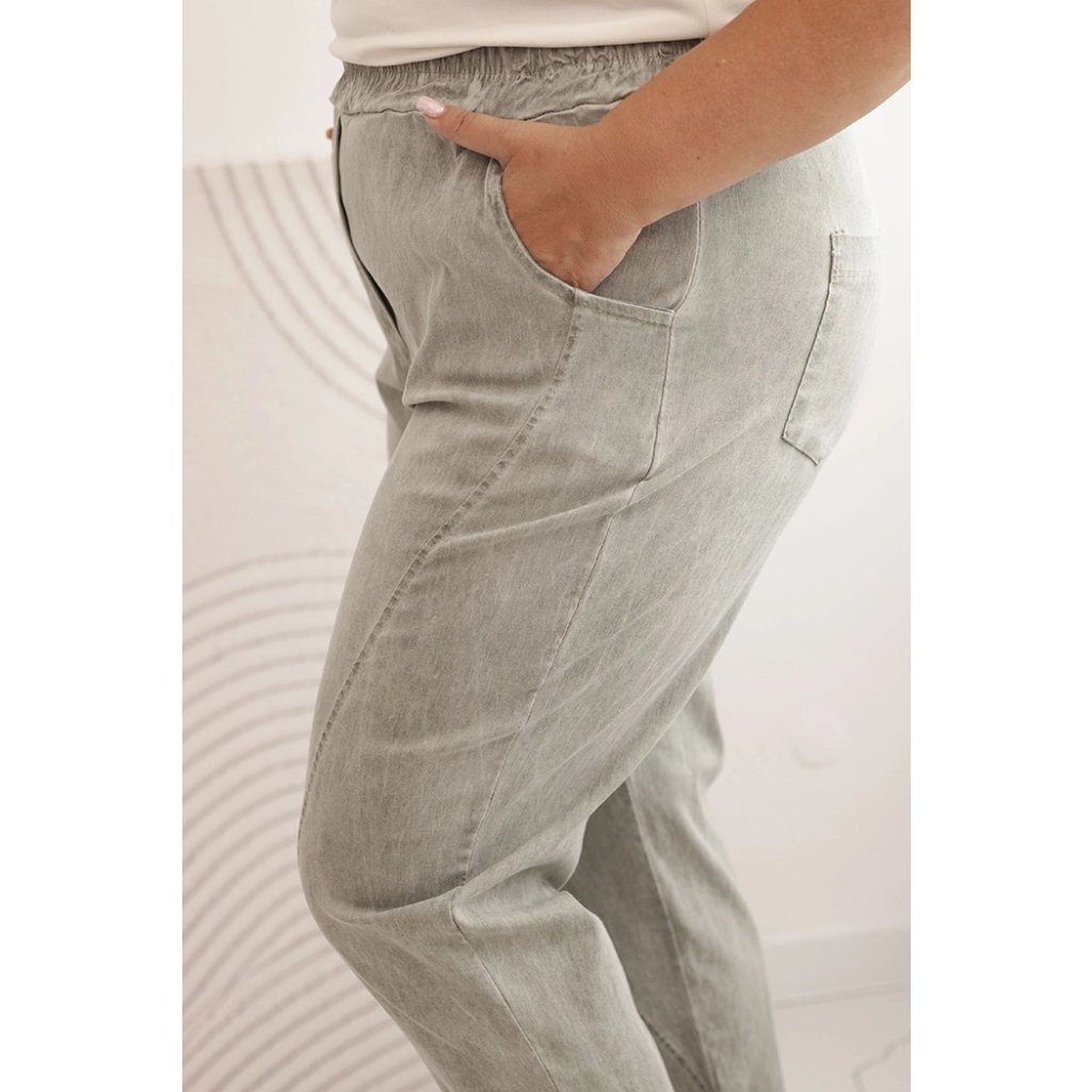 Dámske džínsové nohavice Plus Size s gumou a vreckami béžové