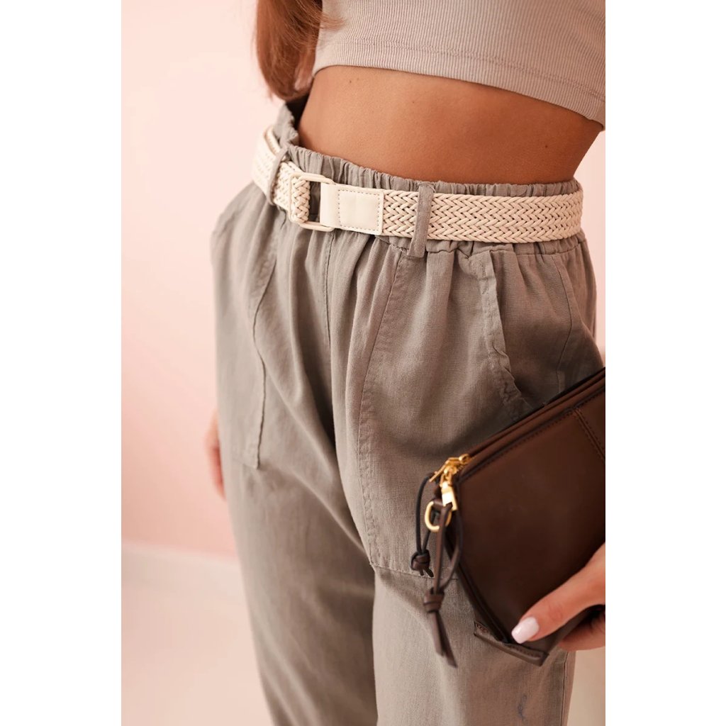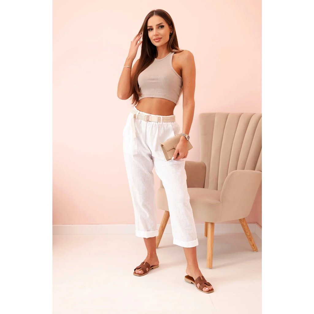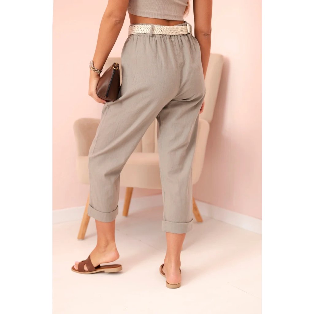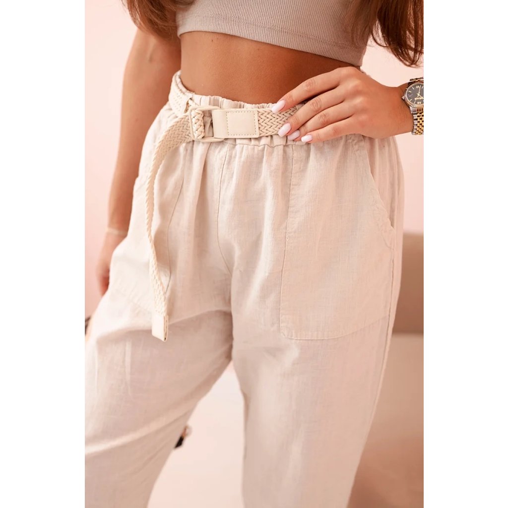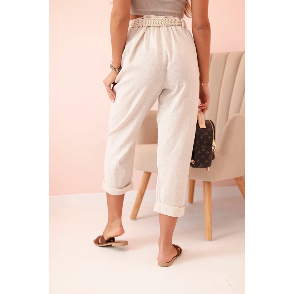 Dámske ľanové nohavice s bavlnou a opaskom béžové