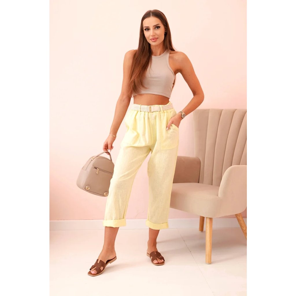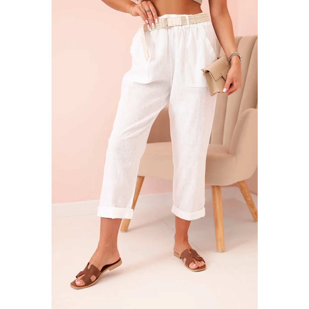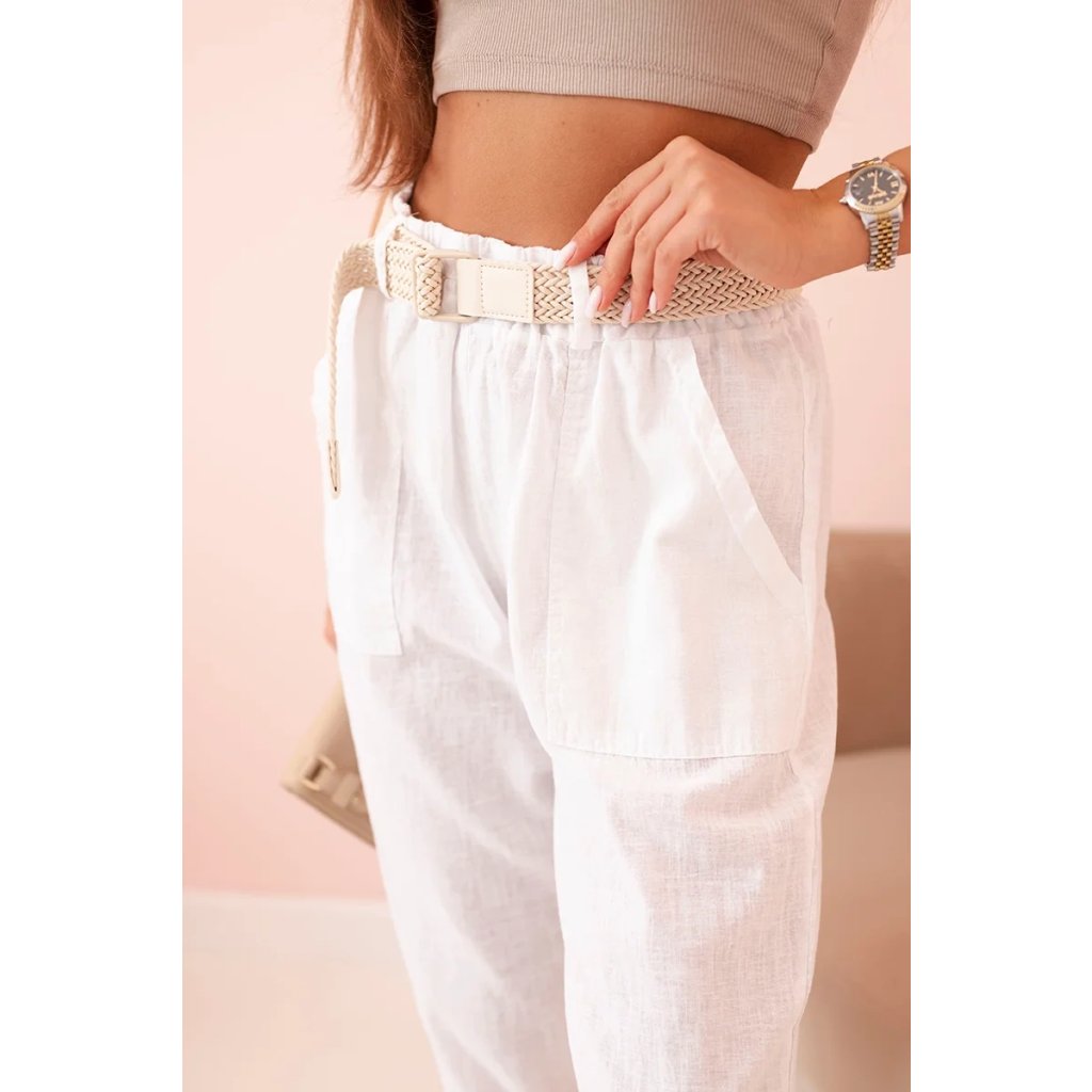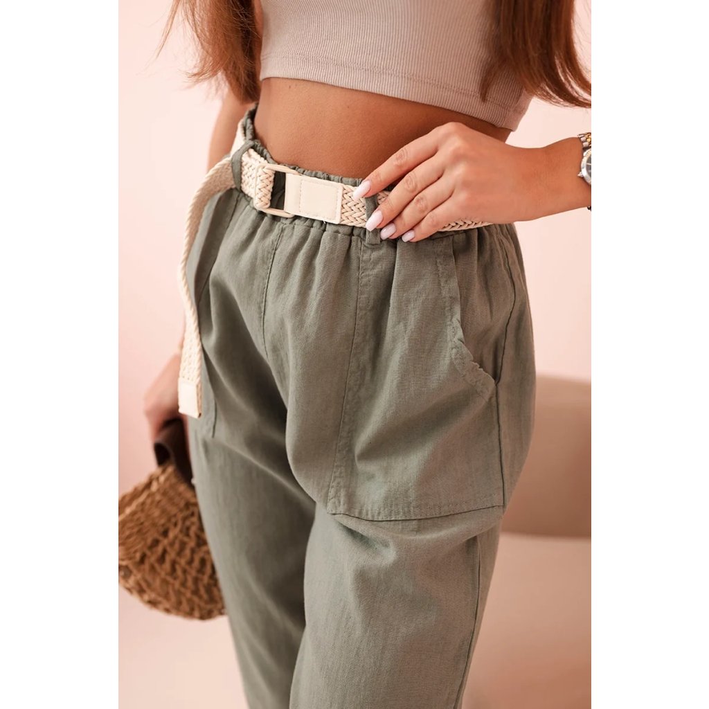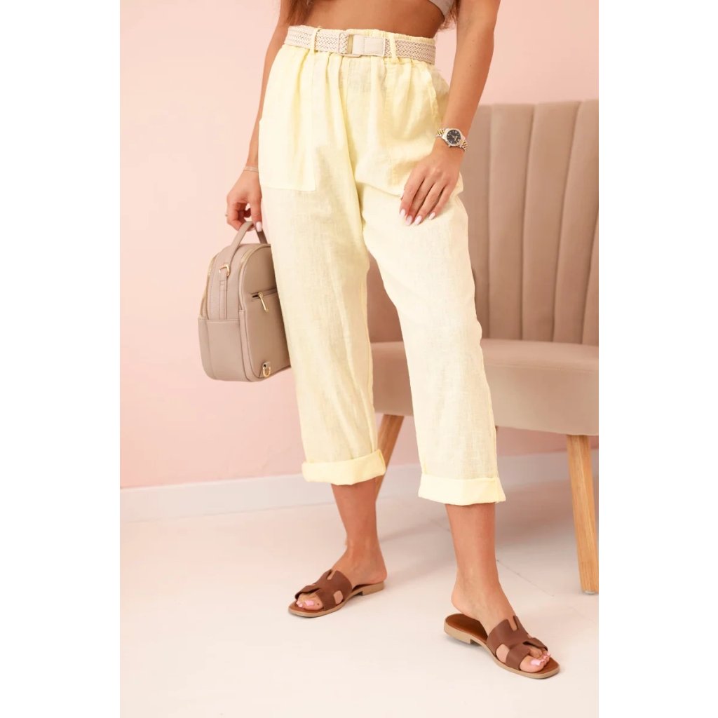 Dámske ľanové nohavice s bavlnou a opaskom béžové