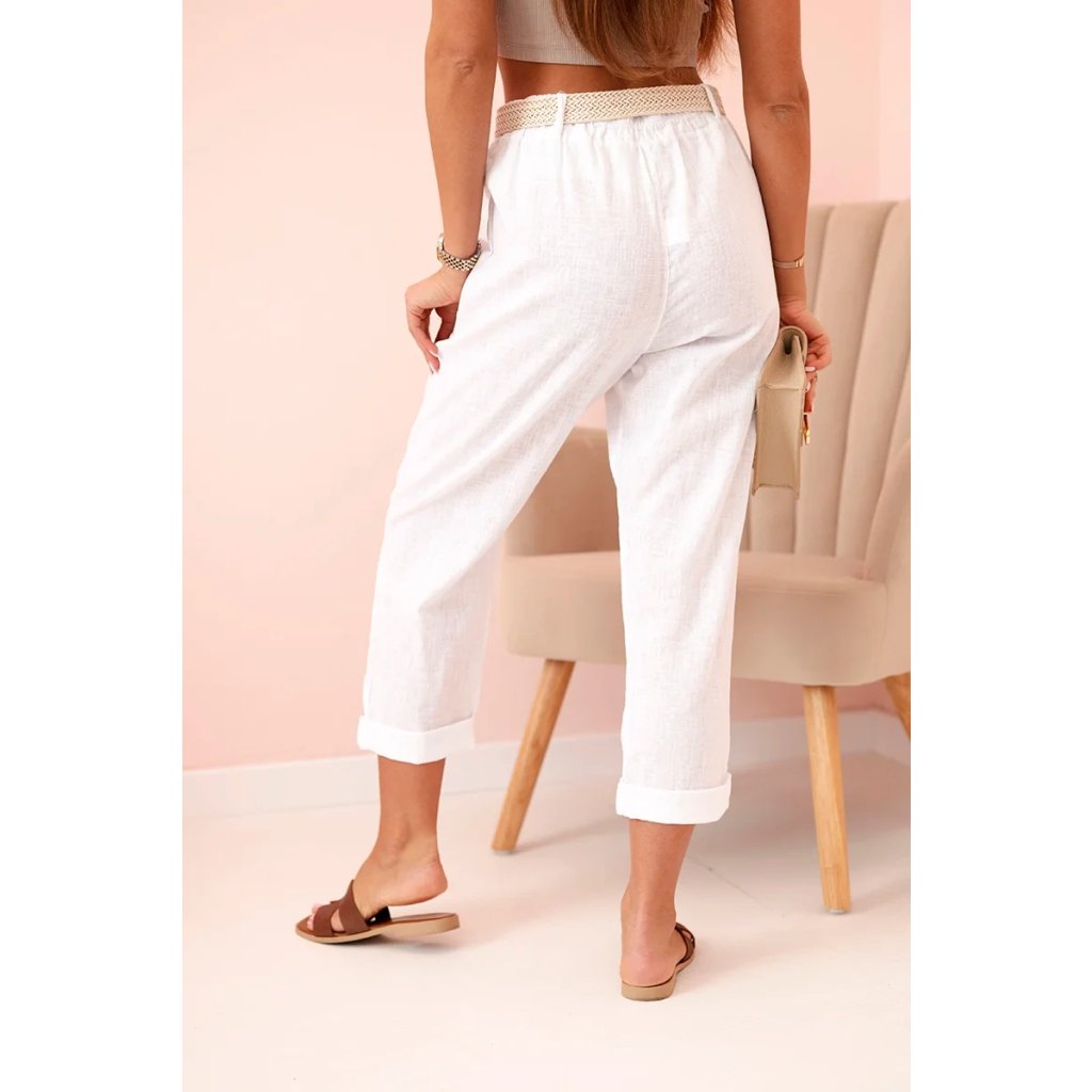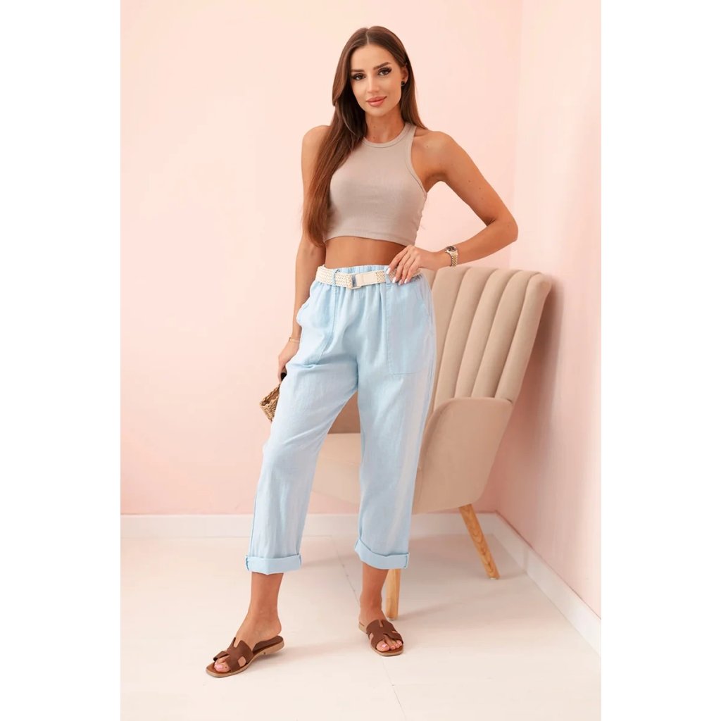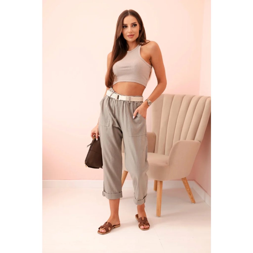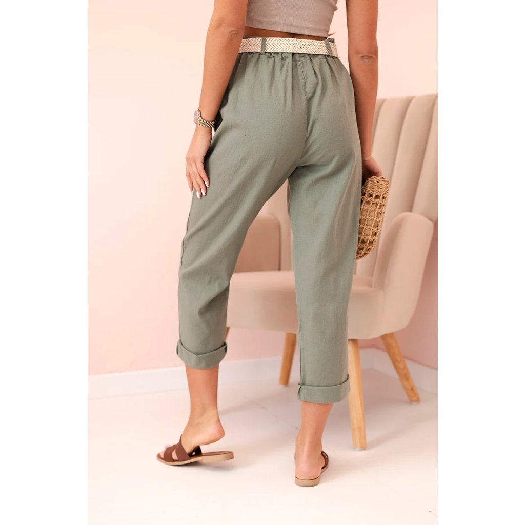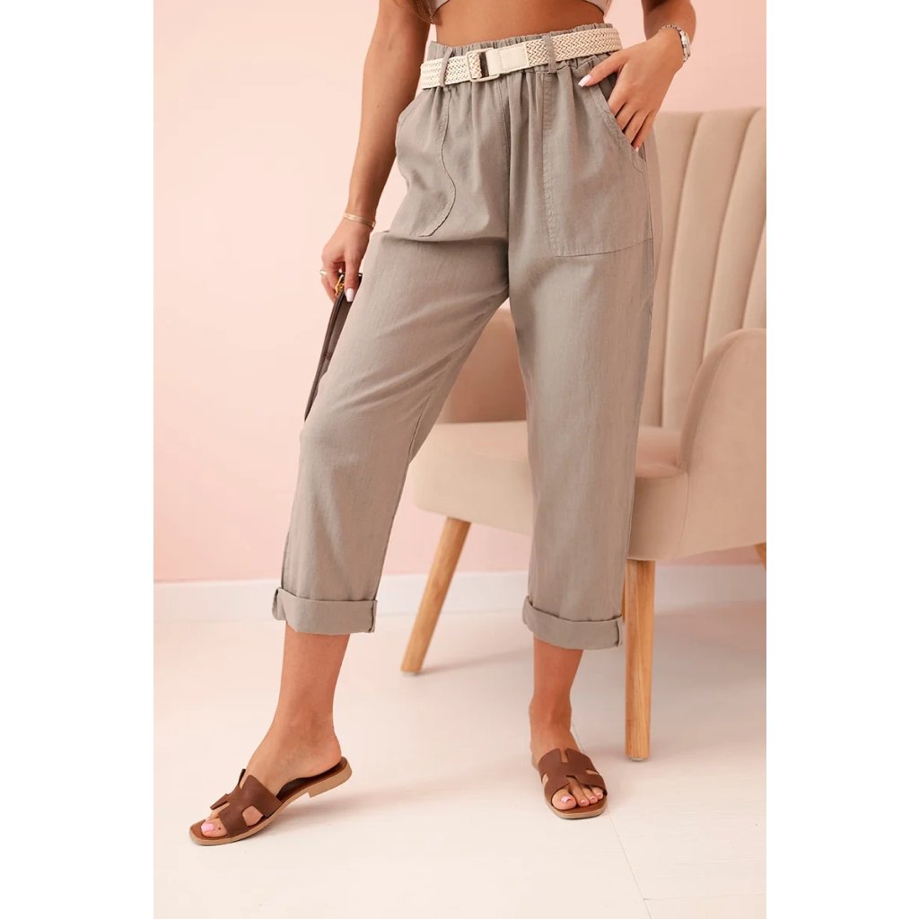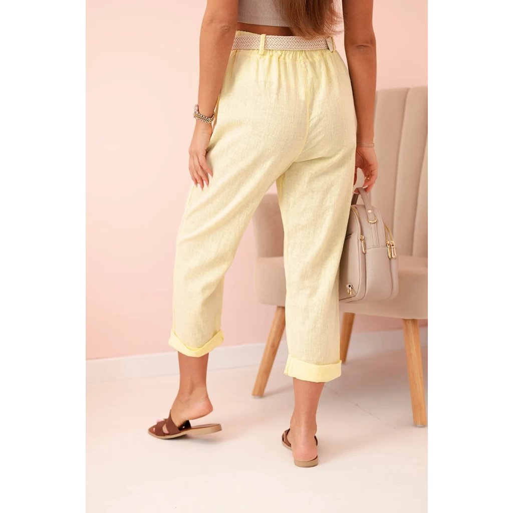 Dámske ľanové nohavice s bavlnou a opaskom béžové