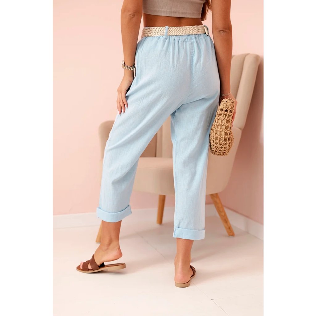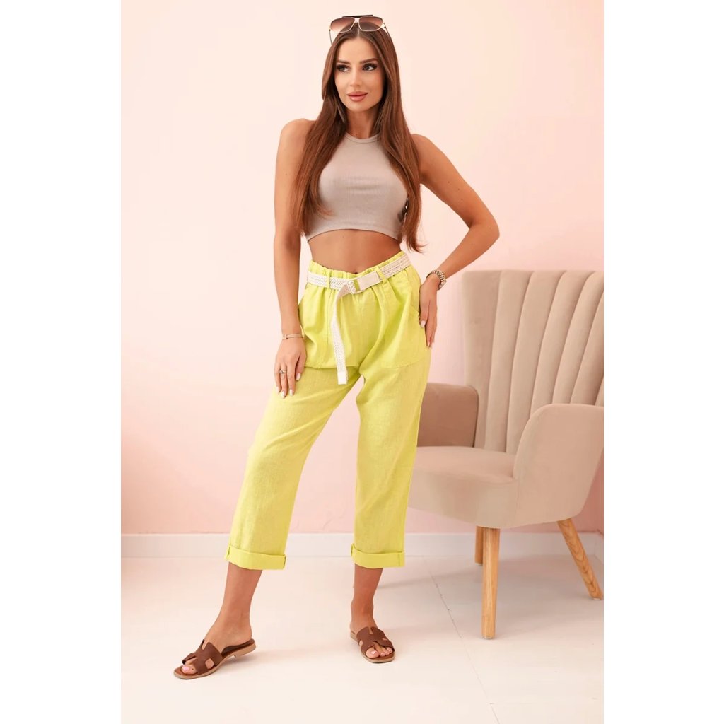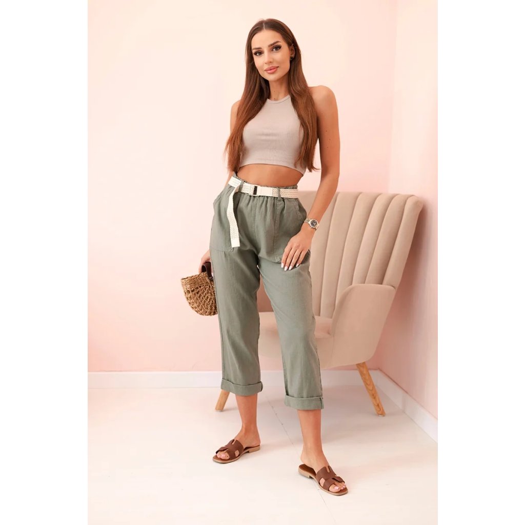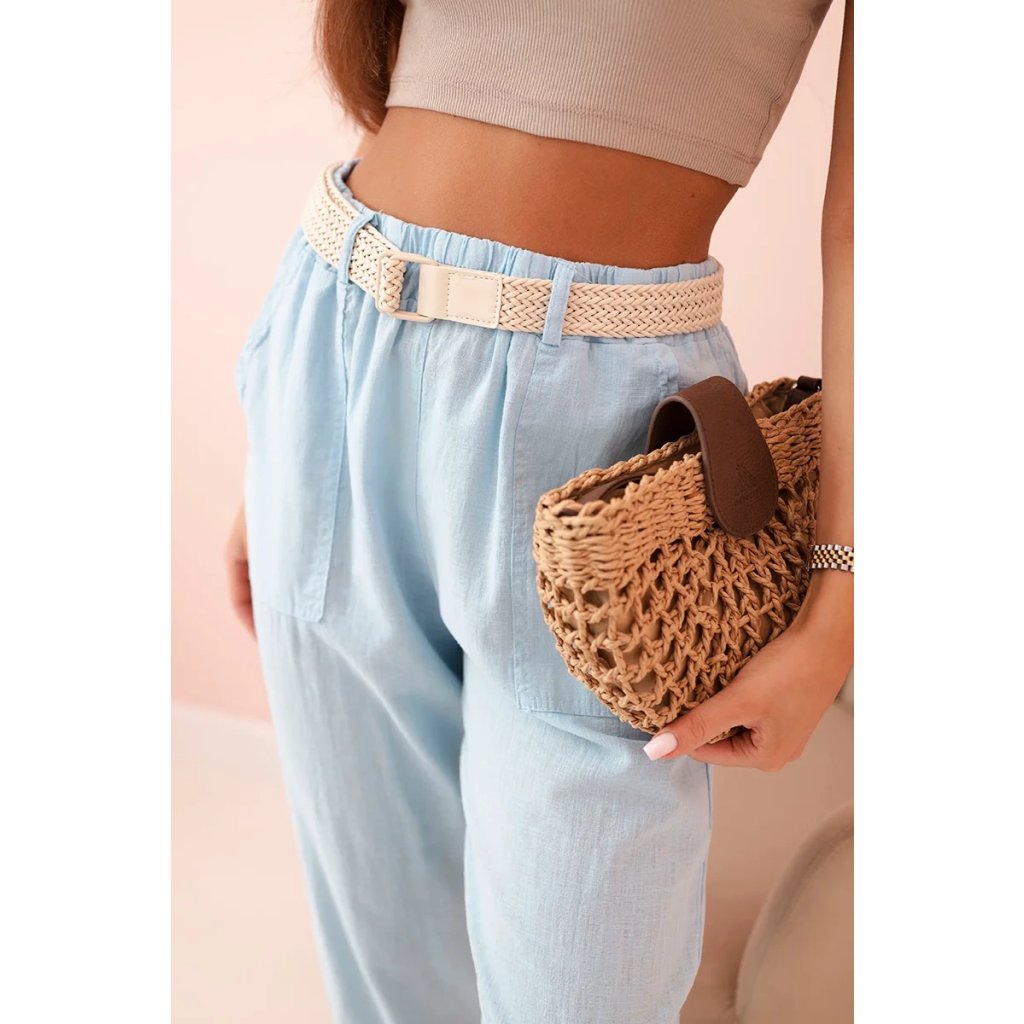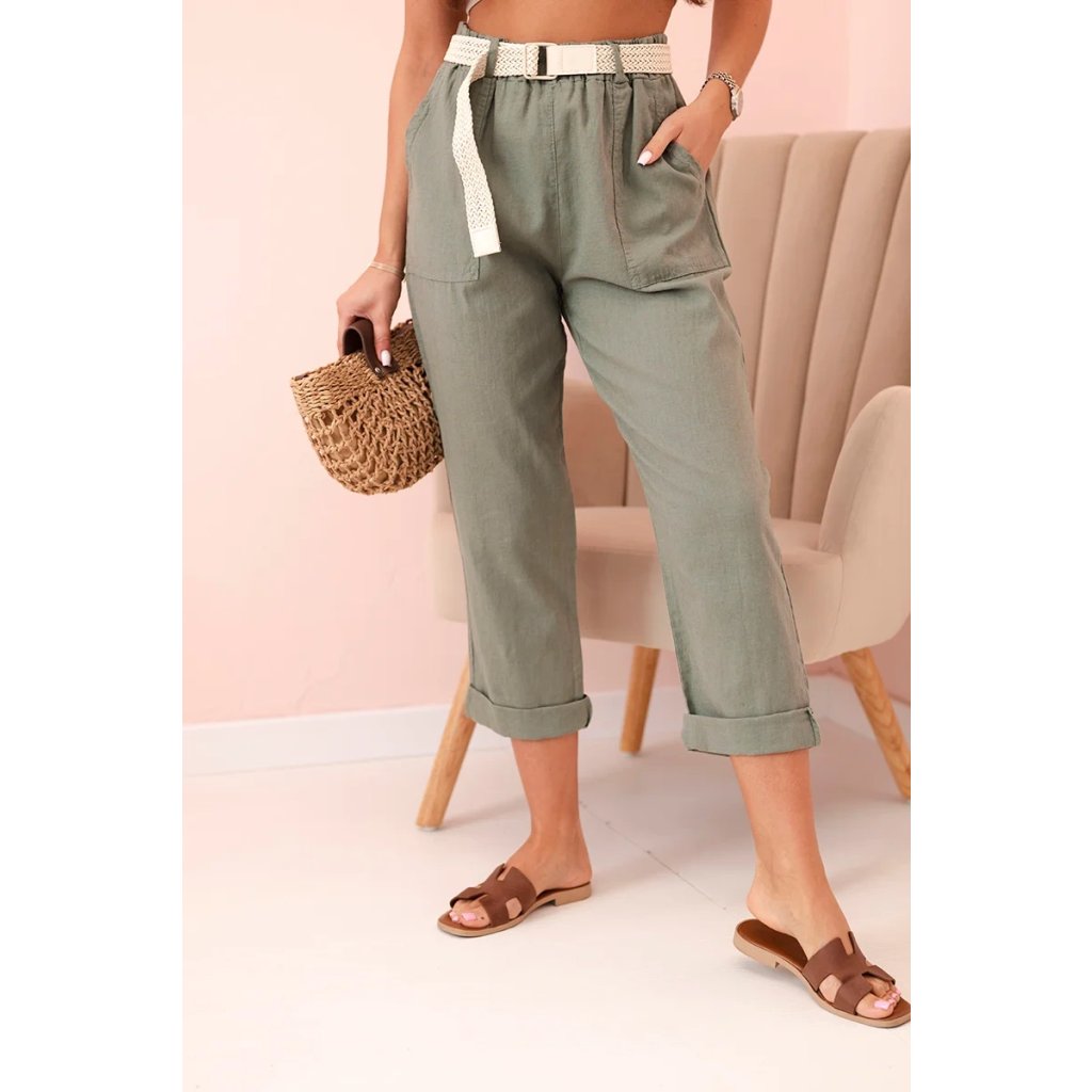 Dámske ľanové nohavice s bavlnou a opaskom béžové