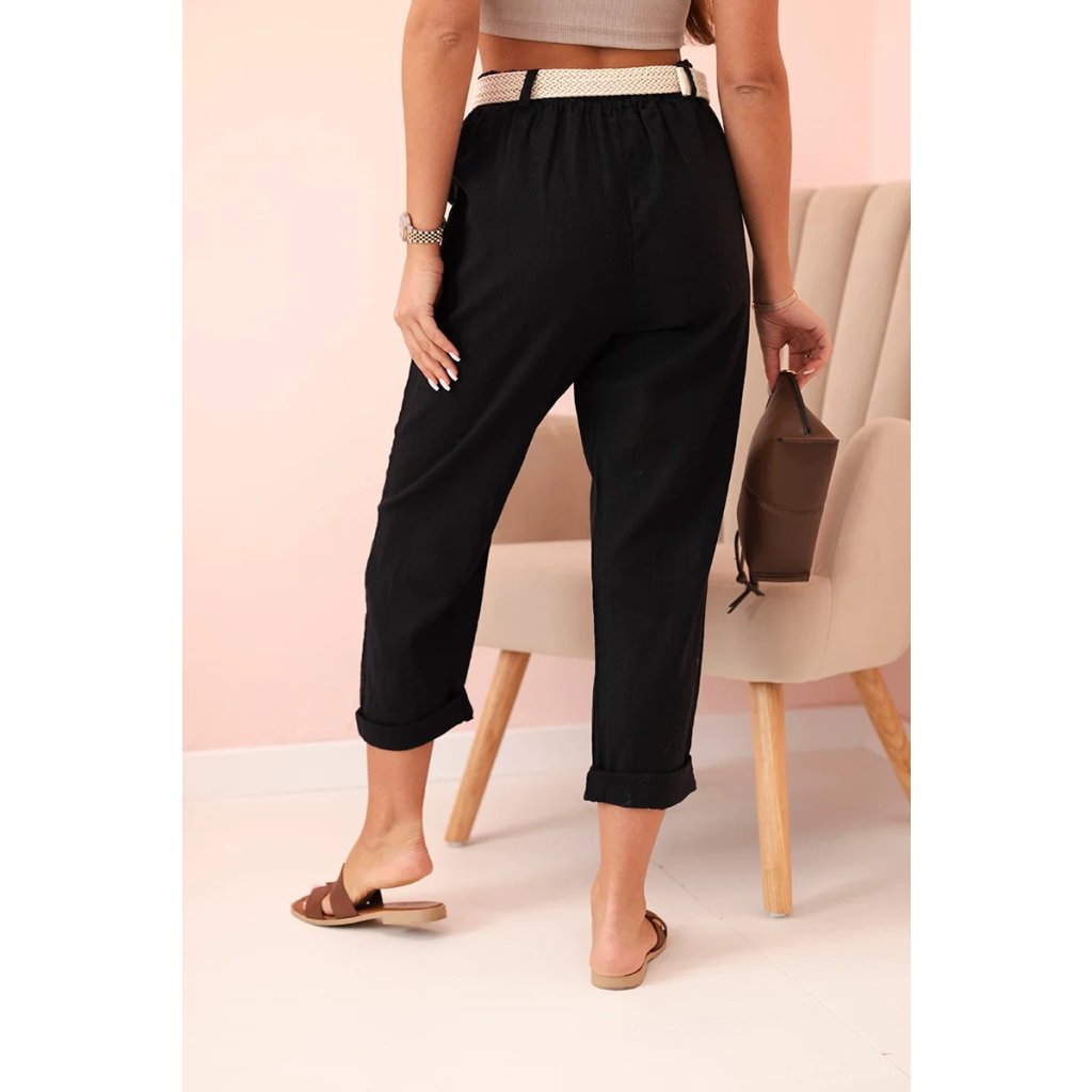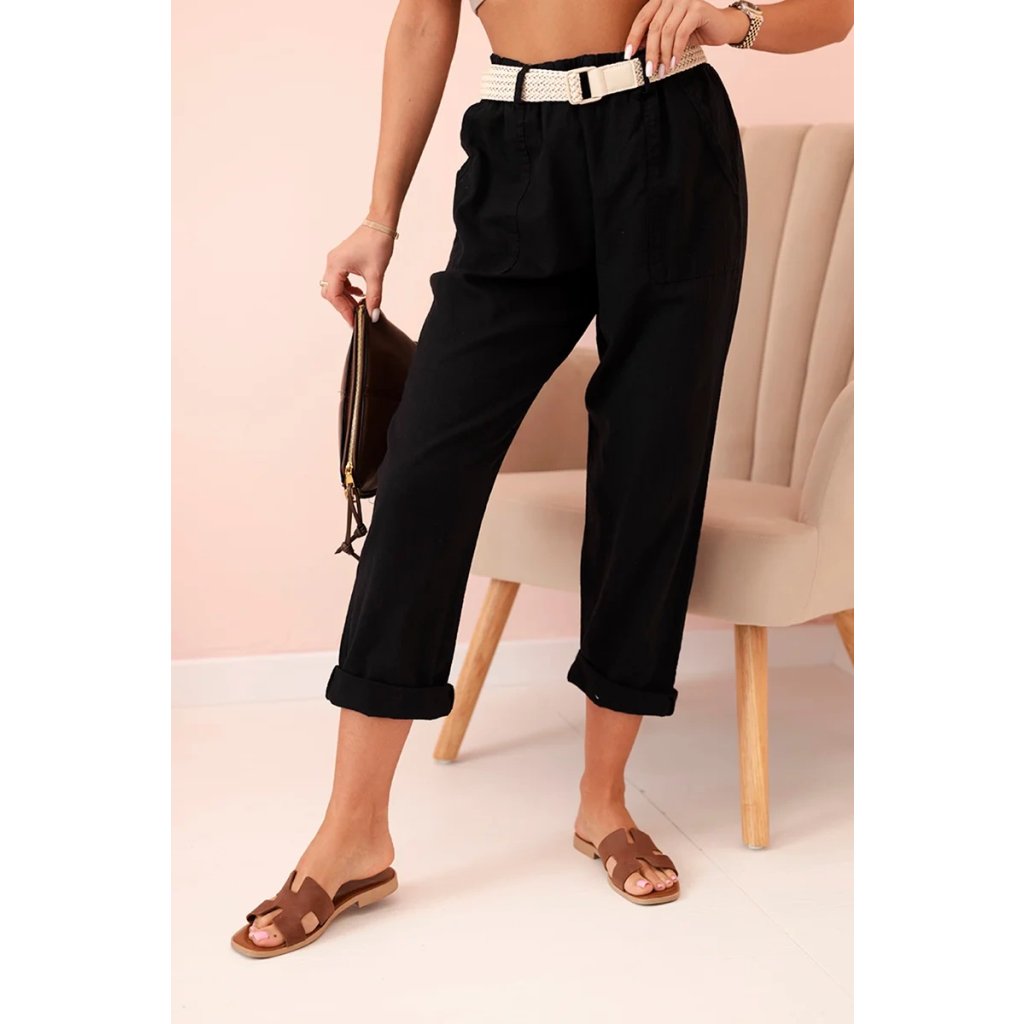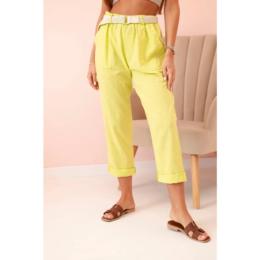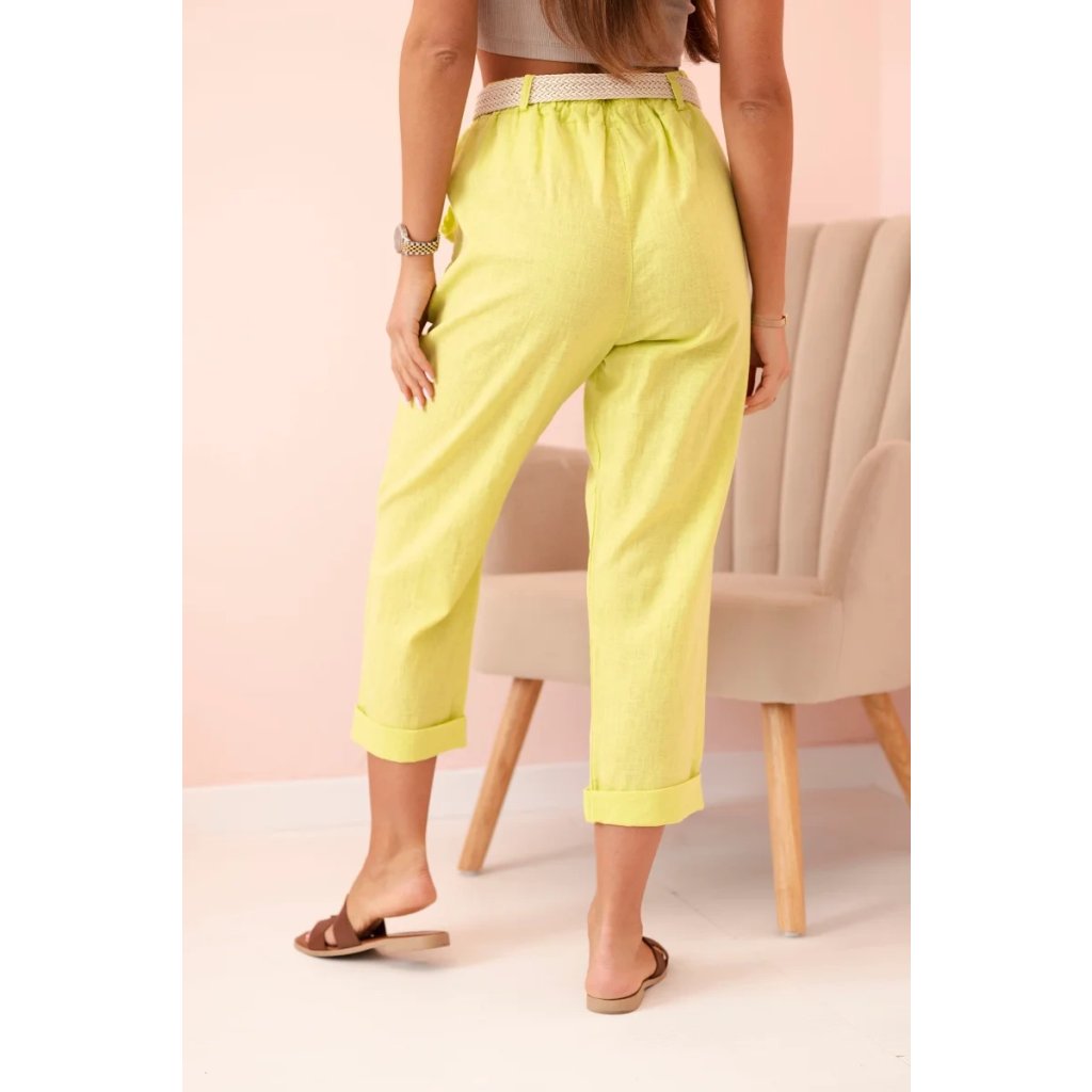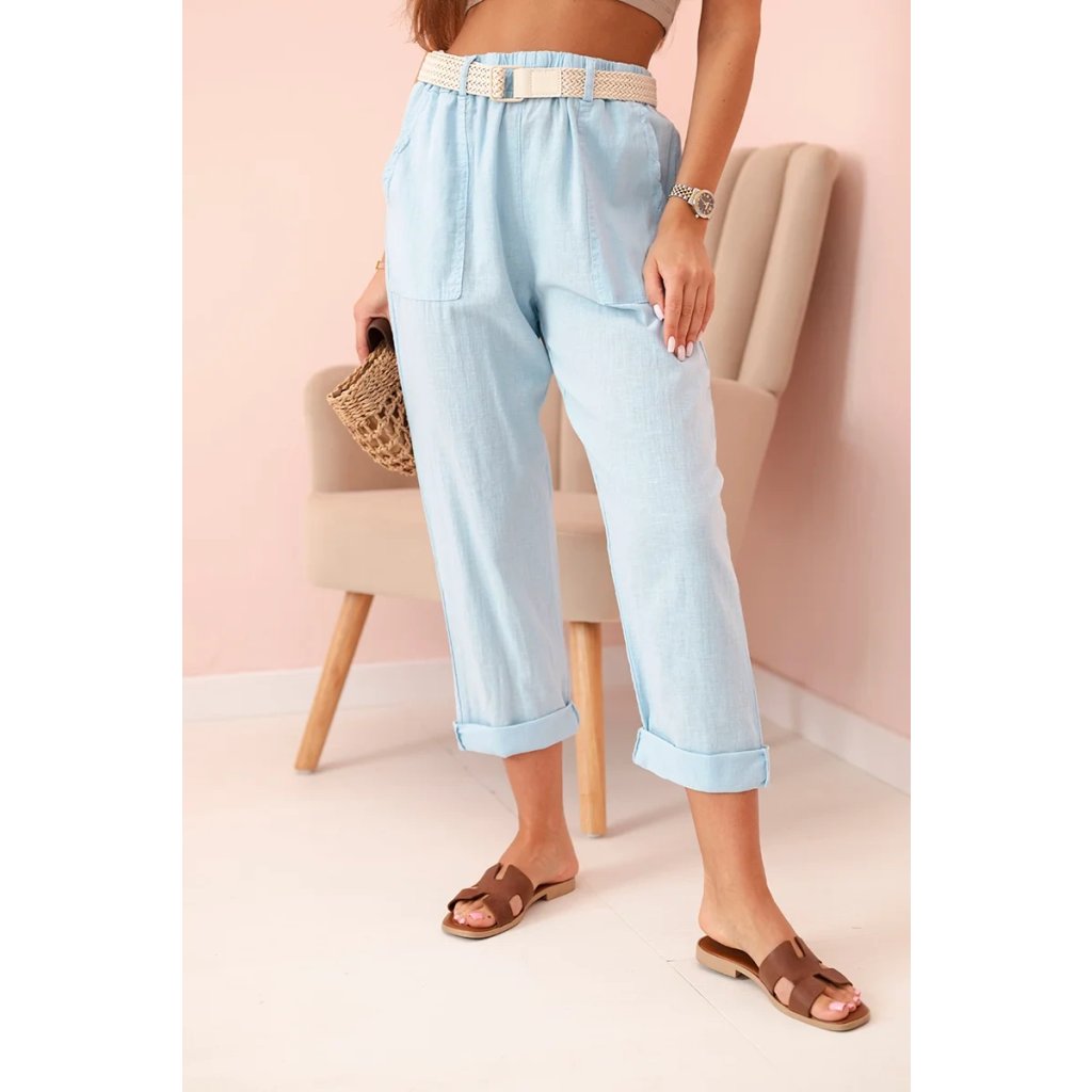 Dámske ľanové nohavice s bavlnou a opaskom béžové