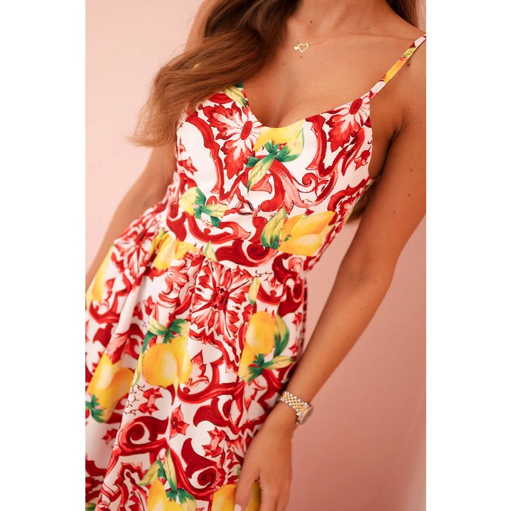 Dámske maxi šaty na ramienkach s potlačou červené