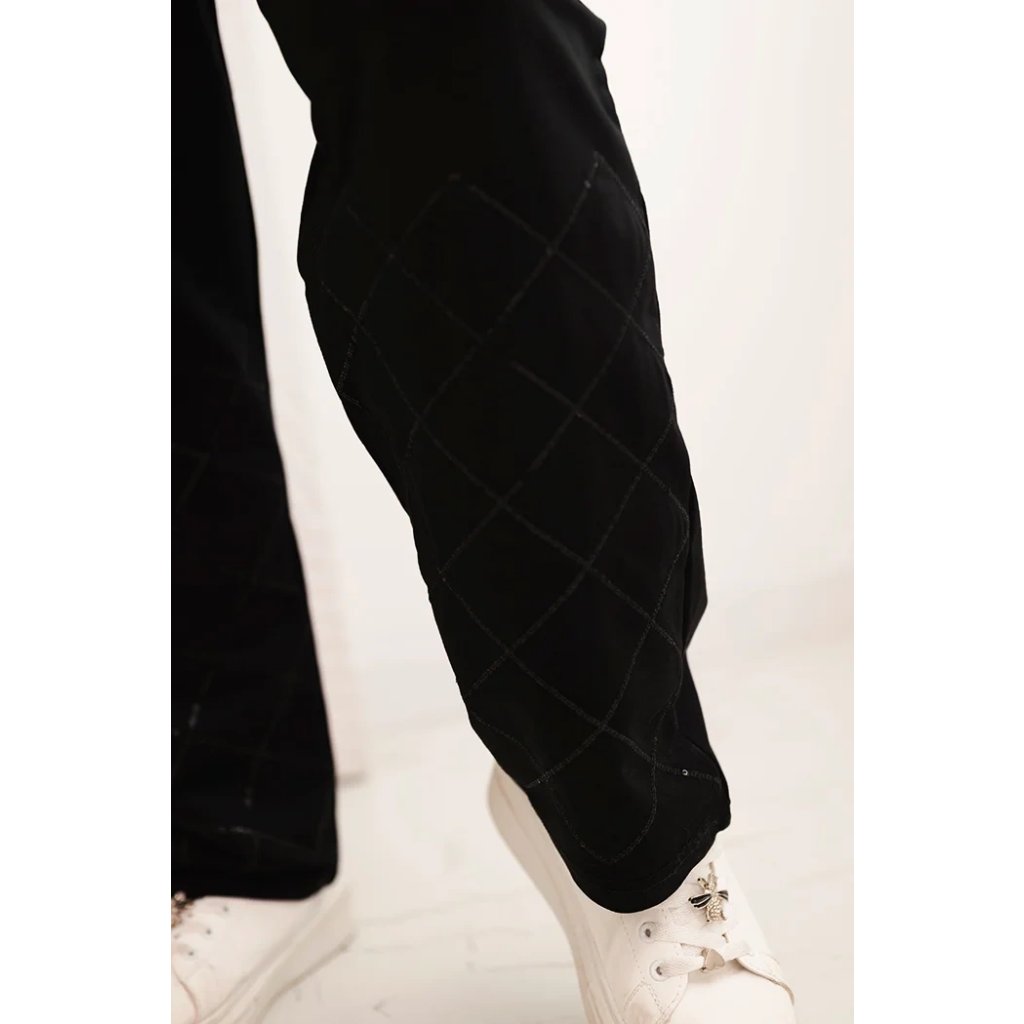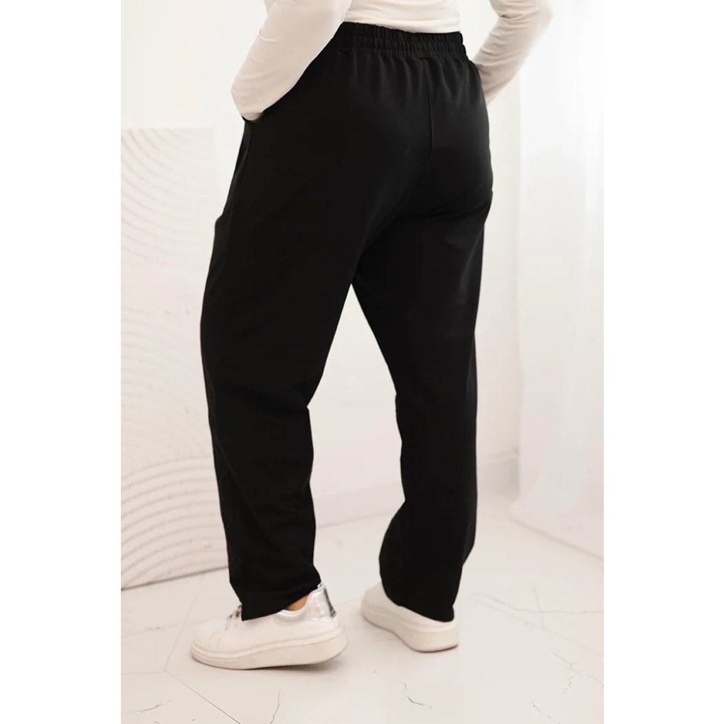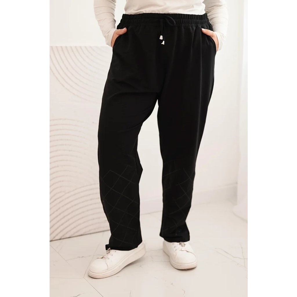 Dámske nohavice Plus Size bavlnené s flitrovými pruhmi čierne