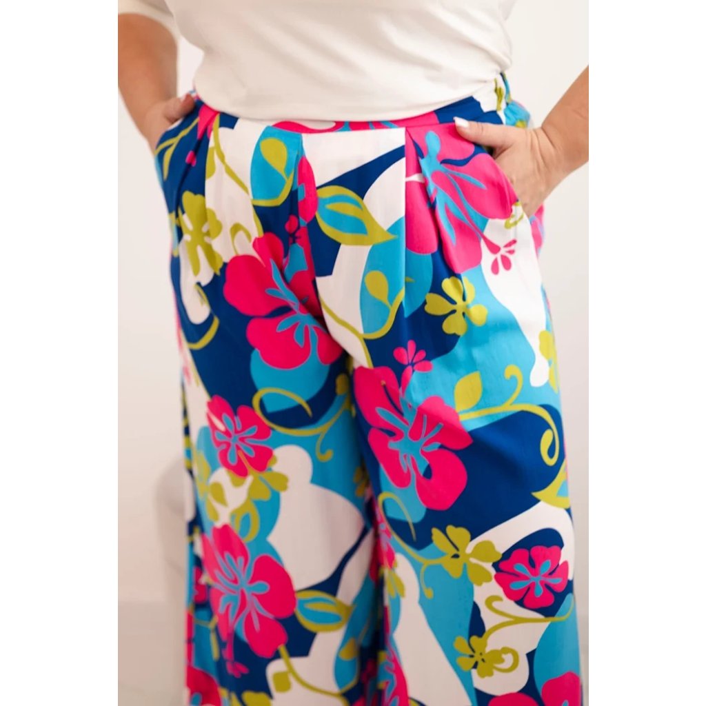 Tieto jedinečné široké dámske nohavice s vysokým pásom sú ideálnou voľbou na leto a jar! Ušité z ľahkej, priedušnej viskózy, zaisťujú maximálny pohodlie nosenia, aj v najteplejších dňoch. Voľný strih so širokou nohavicou zaručuje voľnosť pohybu a dokonalé prispôsobenie sa rôznym postavám. Energetický kvetinový vzor spôsobuje, že každý outfit má prázdninový charakter - je to vynikajúca voľba na dovolenku, prechádzku po pláži alebo výlet s priateľmi. V páse bola použitá elastická guma, vďaka čomu sa nohavice skvele prispôsobujú telu, netlačia a sú veľmi pohodlné. V kombinácii s jednoduchým topom alebo ľahkou blúzkou vytvoria štýlový, ženský look. Talianska výroba zaručuje kvalitu prevedenia a módny dizajn.