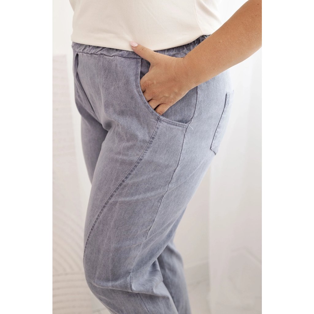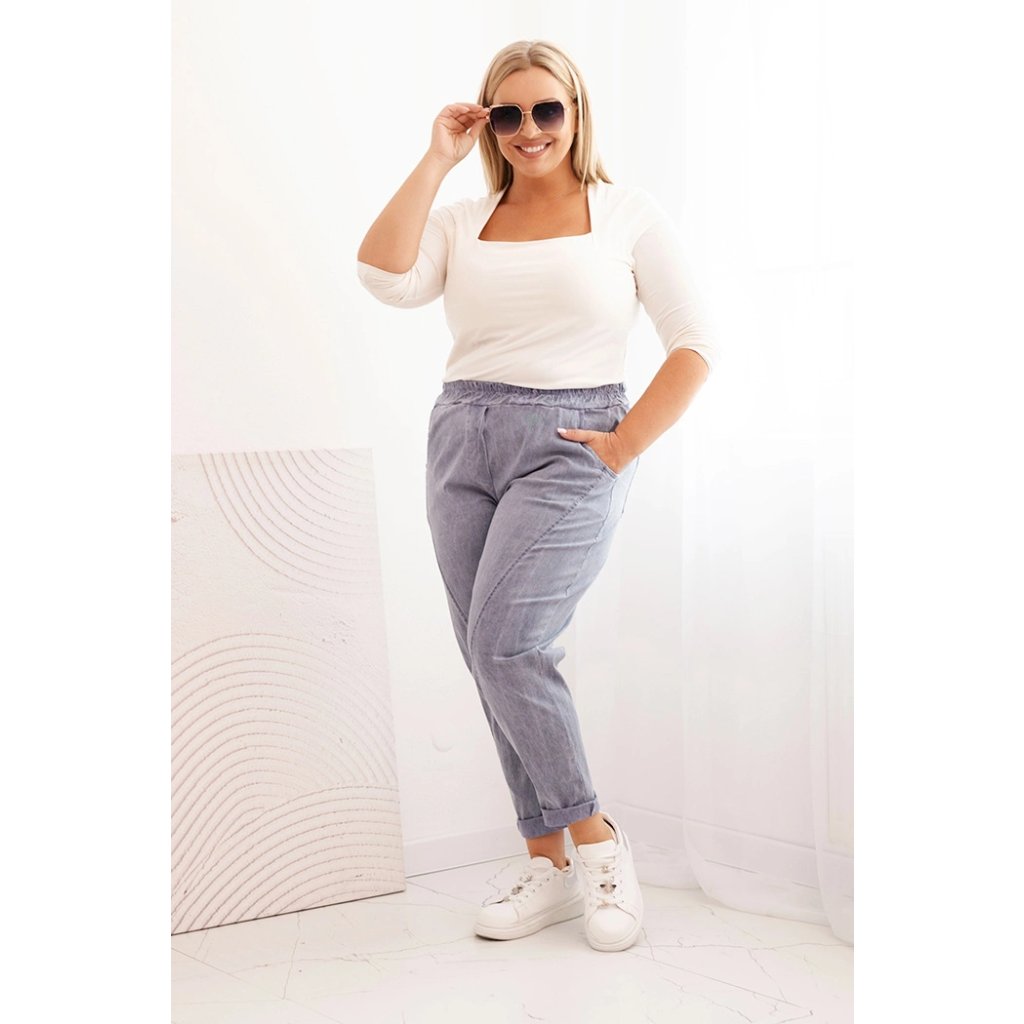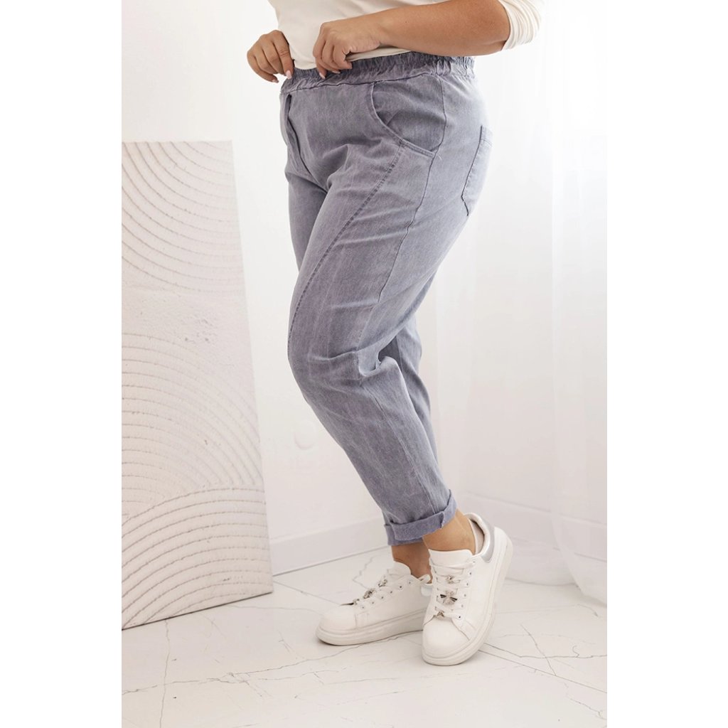 Dámske nohavice Plus Size vyšúchané s viskózou a širokou gumou džínsové