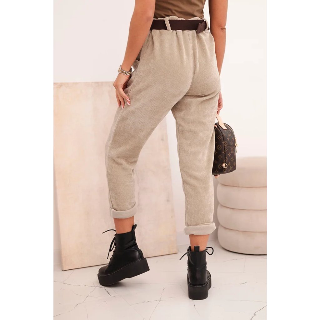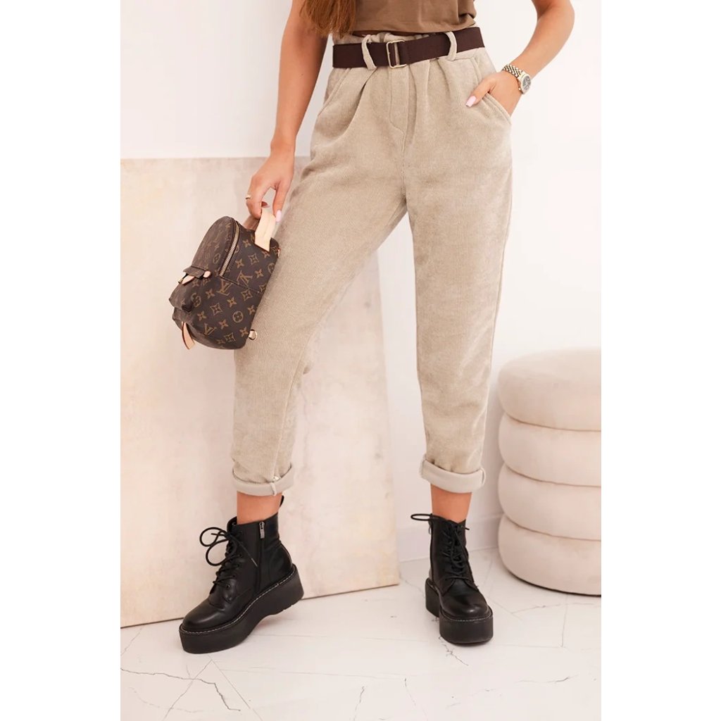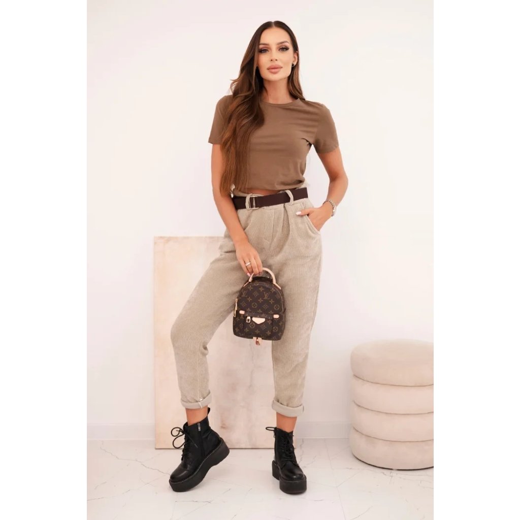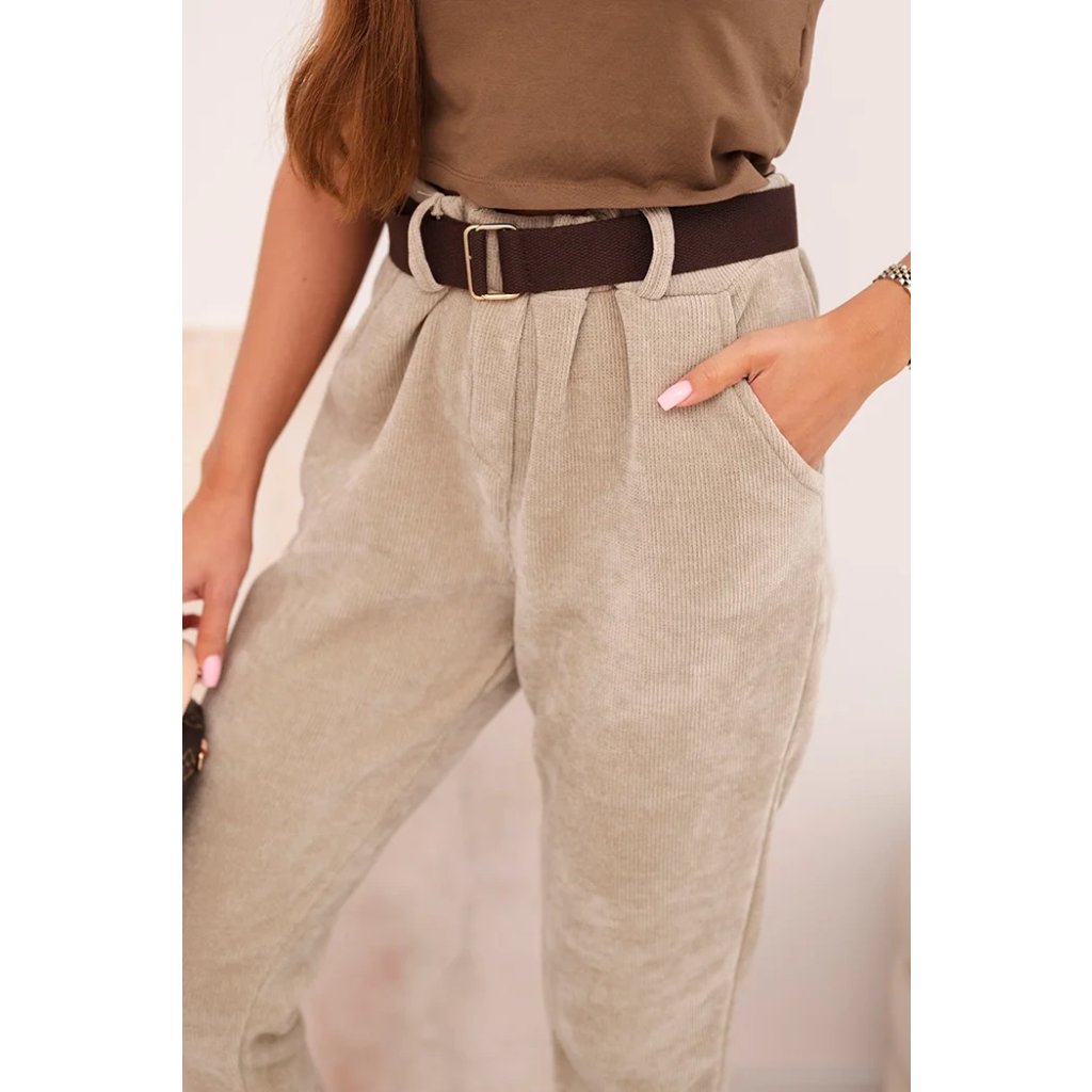 Dámske nohavice s opaskom menčestrové tmavo béžové