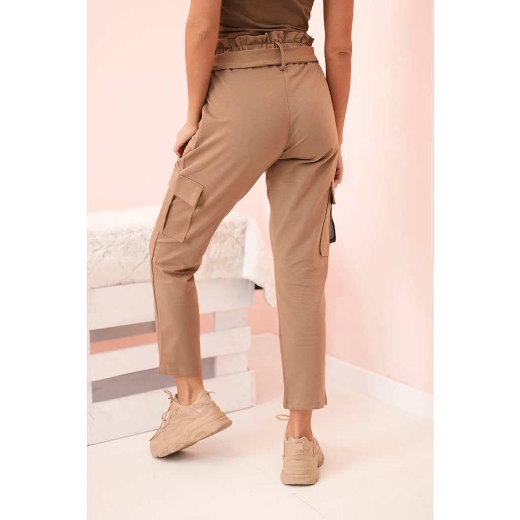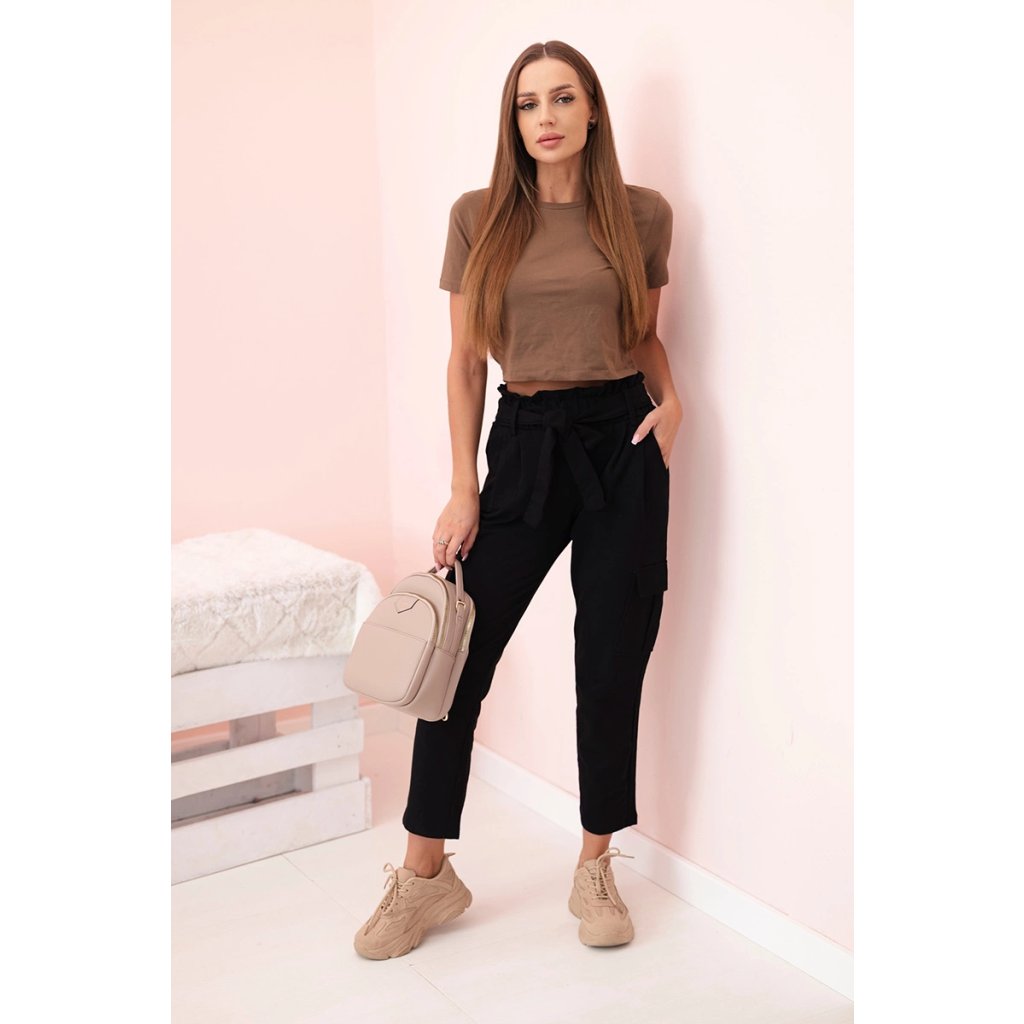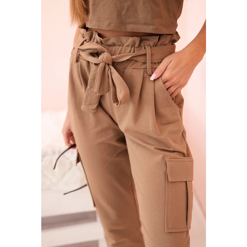 Tieto štýlové dámske nohavice s vysokým pásom sú kombináciou pohodlia a mestského štýlu. Vyrobené z elastickej bavlny, skvele sa prispôsobujú postave, zabezpečujúc pohodlie počas celého dňa. Majú praktické cargo vrecká po bokoch, ktoré nielenže dodávajú charakter, ale tiež sú mimoriadne funkčné. Ďalšou výhodou je látkový opasok na viazanie v páse, ktorý krásne zdôrazňuje ženskú postavu. Model je ideálny na bežné nosenie – do práce, školy alebo na nákupy. Ich univerzálny strih a klasický štýl zabezpečujú, že ich jednoducho skombinujete ako so športovou mikinou, tak aj s elegantnou košeľou. To je must-have v skrini každej ženy, ktorá oceňuje štýl a pohodlie. Veľkosť je univerzálna a bude vhodná pre dámy vo veľkosti S, M alebo L.
