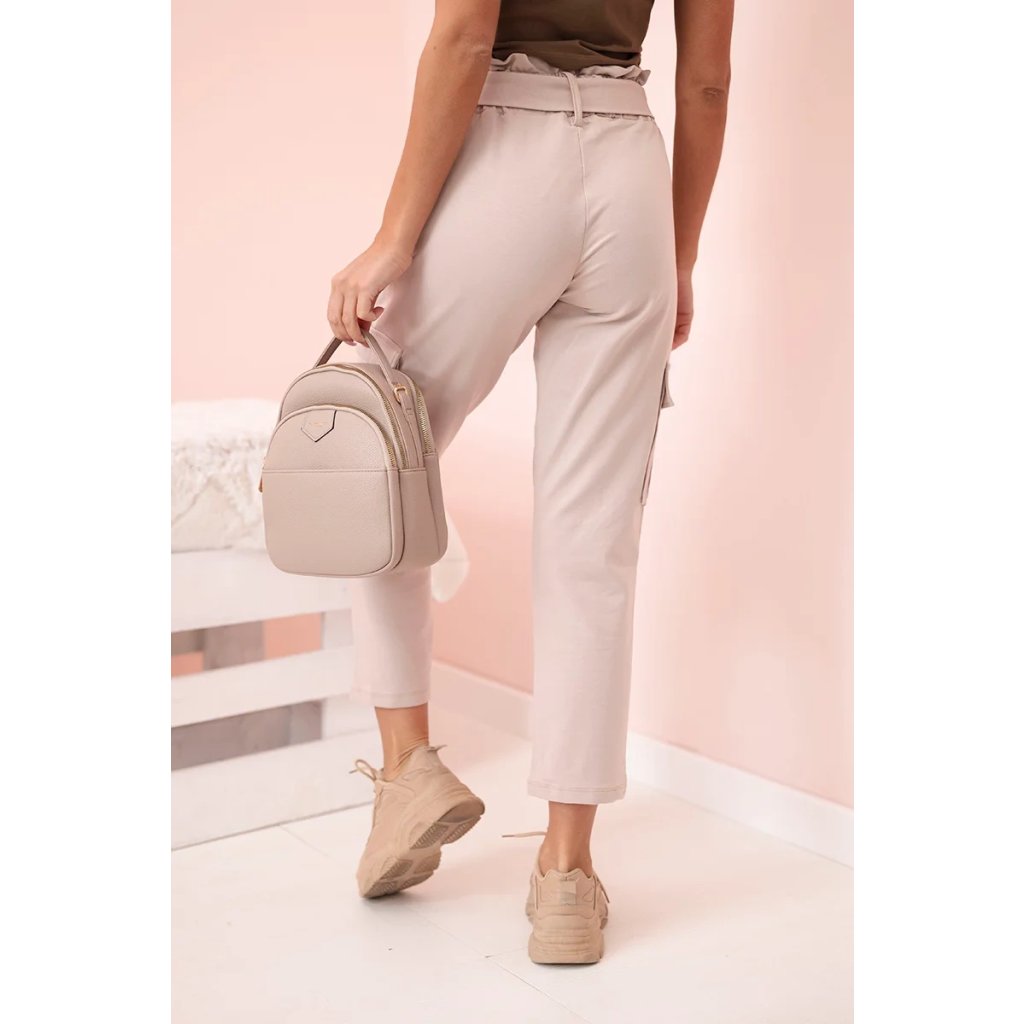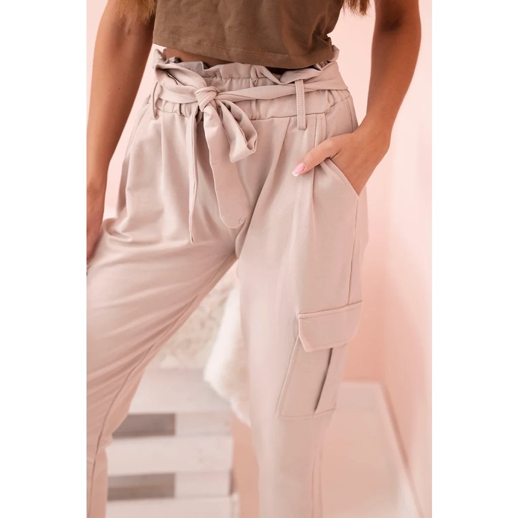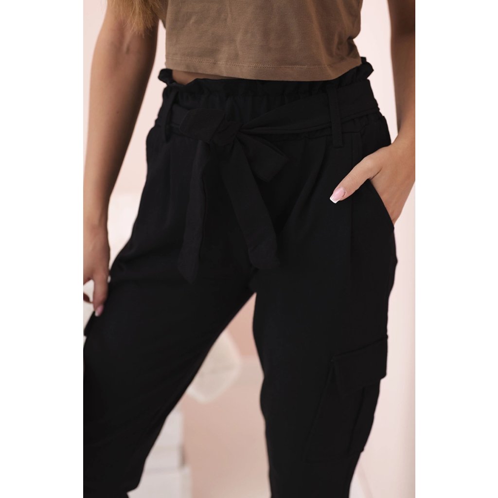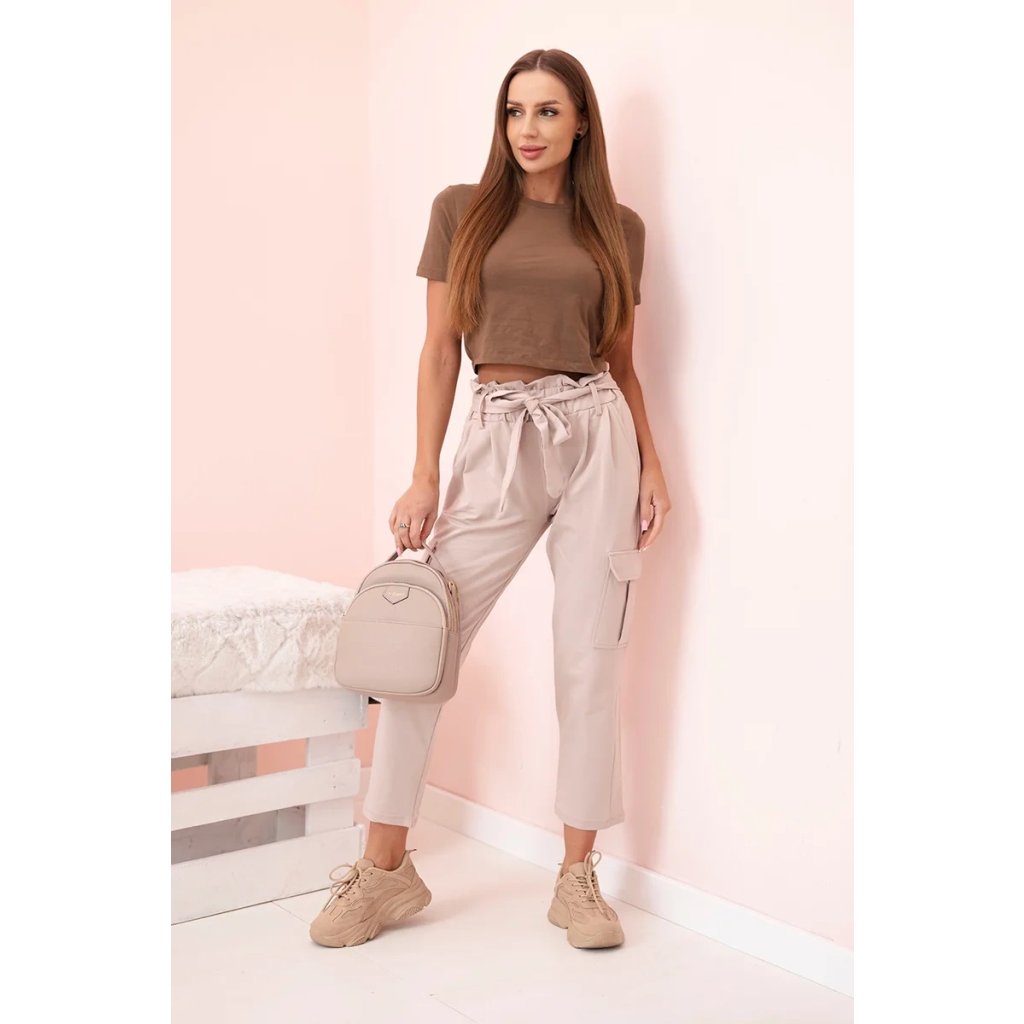 Tieto štýlové dámske nohavice s vysokým pásom sú kombináciou pohodlia a mestského štýlu. Vyrobené z elastickej bavlny, skvele sa prispôsobujú postave, zabezpečujúc pohodlie počas celého dňa. Majú praktické cargo vrecká po bokoch, ktoré nielenže dodávajú charakter, ale tiež sú mimoriadne funkčné. Ďalšou výhodou je látkový opasok na viazanie v páse, ktorý krásne zdôrazňuje ženskú postavu. Model je ideálny na bežné nosenie – do práce, školy alebo na nákupy. Ich univerzálny strih a klasický štýl zabezpečujú, že ich jednoducho skombinujete ako so športovou mikinou, tak aj s elegantnou košeľou. To je must-have v skrini každej ženy, ktorá oceňuje štýl a pohodlie. Veľkosť je univerzálna a bude vhodná pre dámy vo veľkosti S, M alebo L.