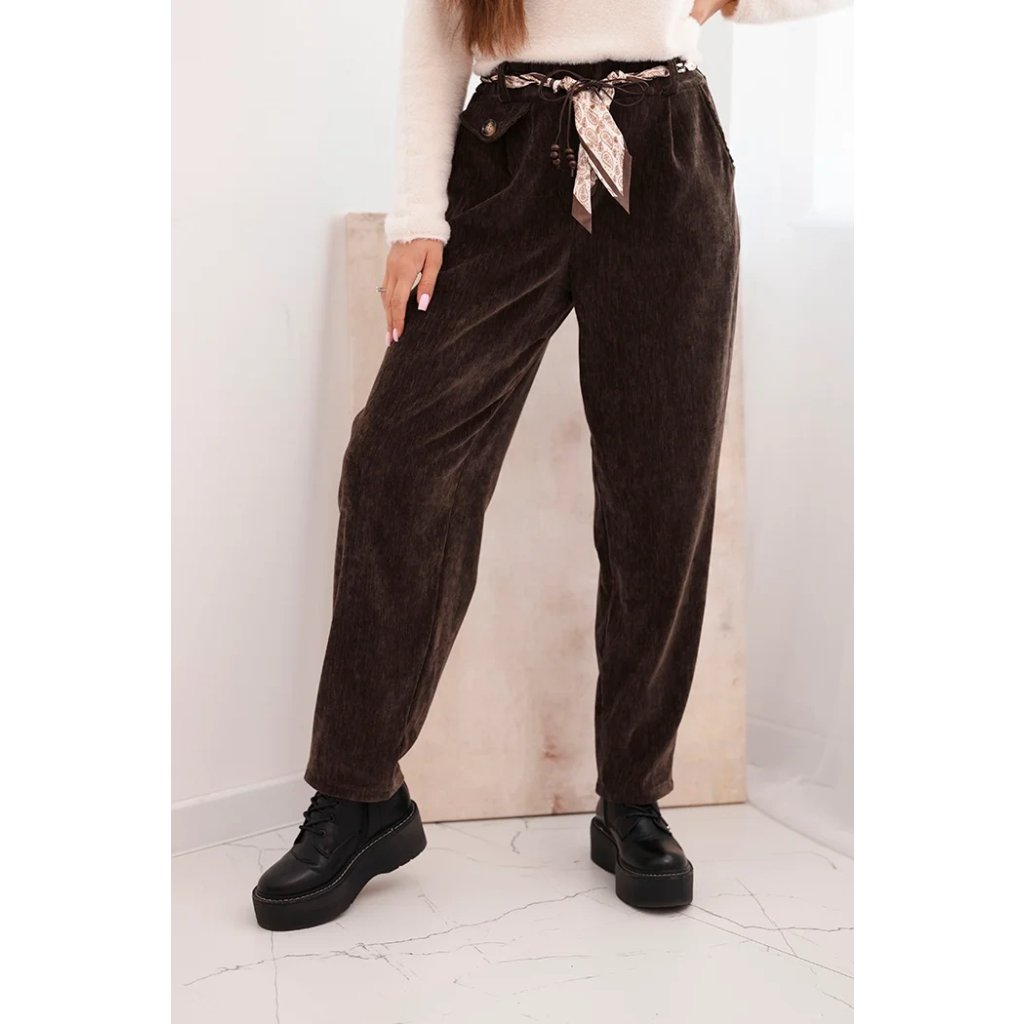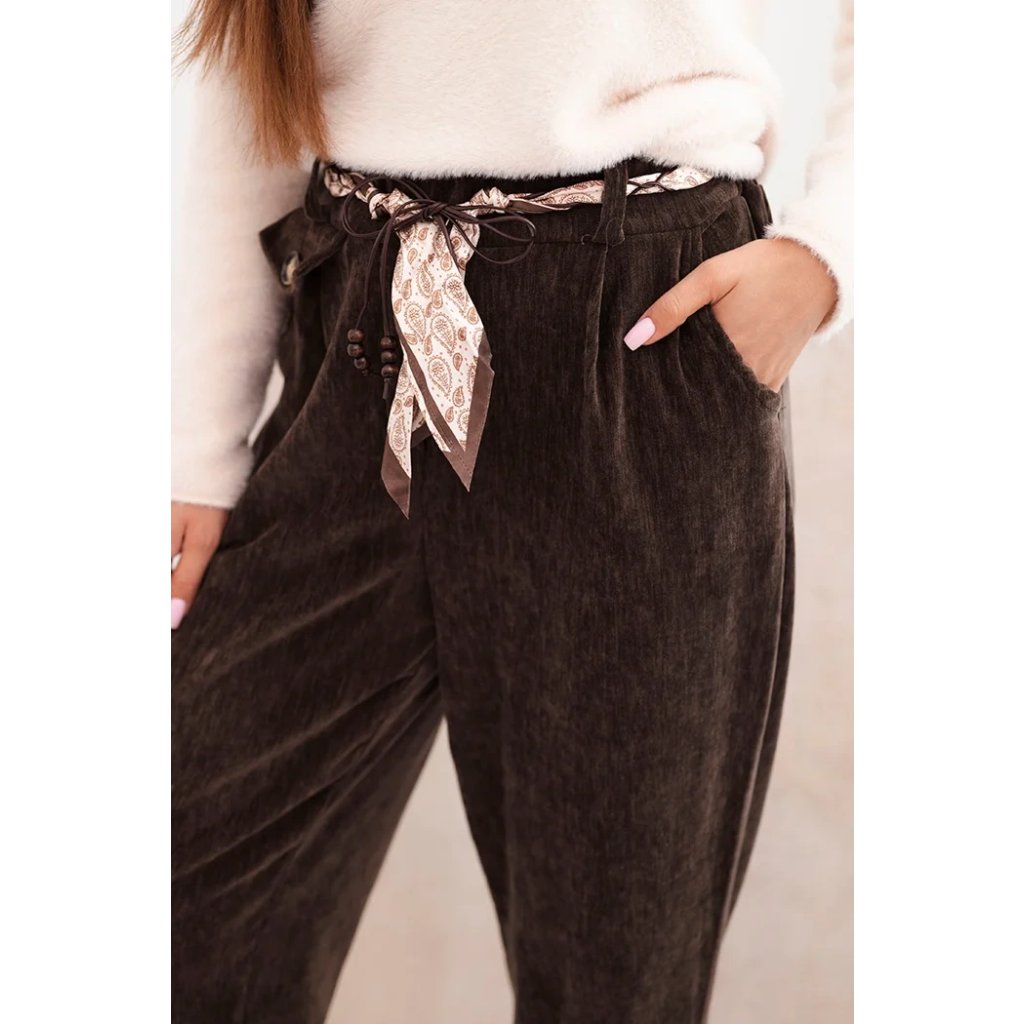Dámske nohavice z viskózy s šálovým opaskom hnedé