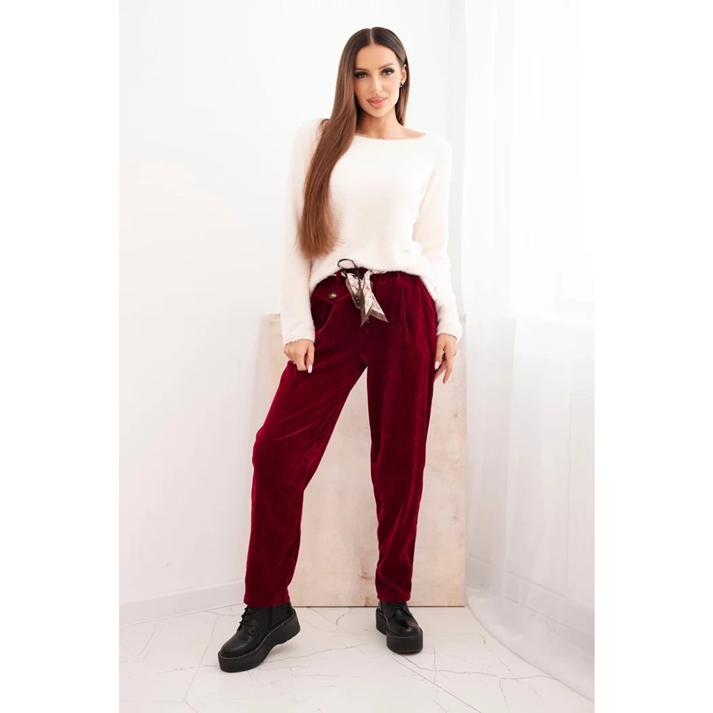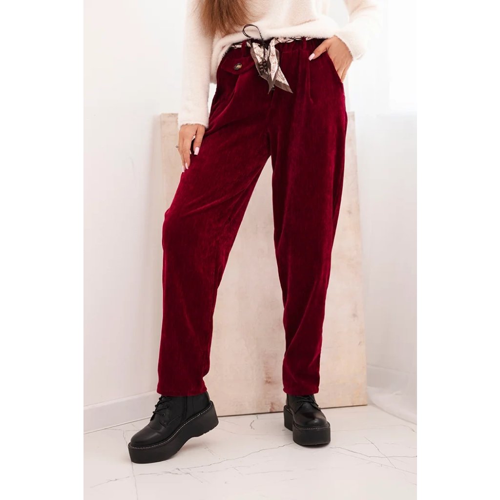 Tieto dámske nohavice sú ideálnou voľbou pre ženy, ktoré si cenia komfort a štýl v jednom. Vyrobené z príjemnej na dotyk, ľahko elastickej tkaniny s prevažne viskózou, sú ideálne pre každodenné outfity aj pre elegantnejšie súpravy do práce či na stretnutia. Módny široký strih nohavíc zaisťuje voľnosť pohybu a dekoratívny opasok so šatkou dodáva celku výnimočný charakter a ženský pôvab.