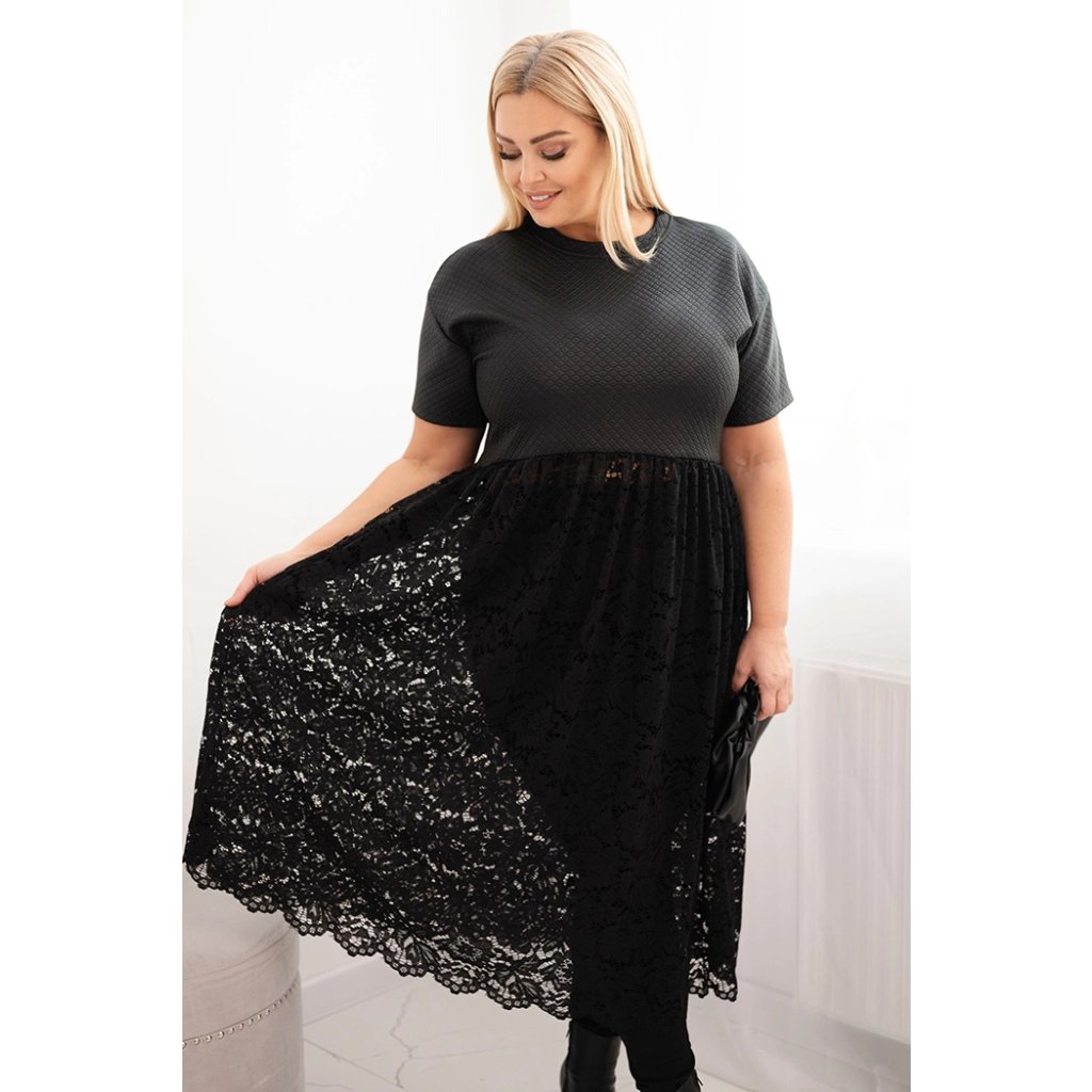 Dámske plus size šaty s krátkym rukávom a čipkovým spodkom čierne