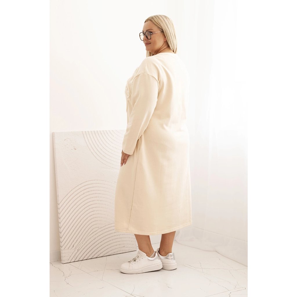 Dámske plus size šaty s výšivkou bavlnené béžové