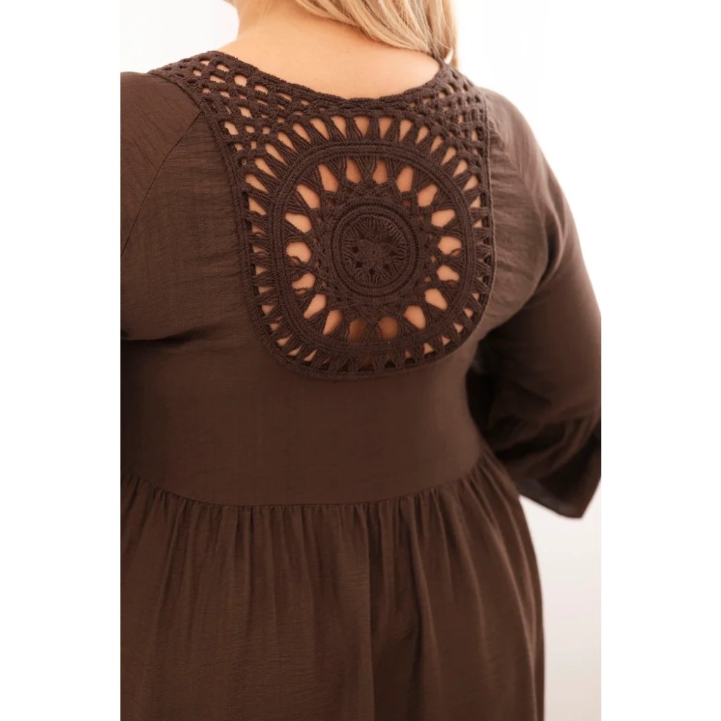 Dámske plus size šaty viskózové s ažúrovým zdobením hnedé