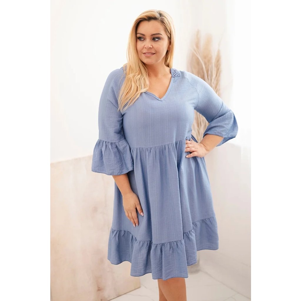 Ak hľadáte šaty, ktoré spájajú ženský štýl s pohodlím nosenia, tento návrh bude trefou do čierneho! Dámske šaty s volánmi a dekoratívnym ažúrovým chrbtom sú skvelou voľbou na každý deň, ako aj na viac výnimočné príležitosti. Ich voľný, pohodlný strih sa krásne prispôsobí postave, poskytuje maximálny komfort a priedušnosť. Rukáv 3/4 zakončený volánom pridáva ľahkosť, a dolná časť s volánom vytvára jemný, romantický efekt. Vyrobené 100% z viskózy, šaty sú mäkké, jemné k pokožke a ideálne na teplejšie dni. Ažúrové zdobenie na chrbte dodáva celku moderný, nevšedný charakter. To je skvelá možnosť nielen do práce, ale i na prechádzku či stretnutie s priateľmi.