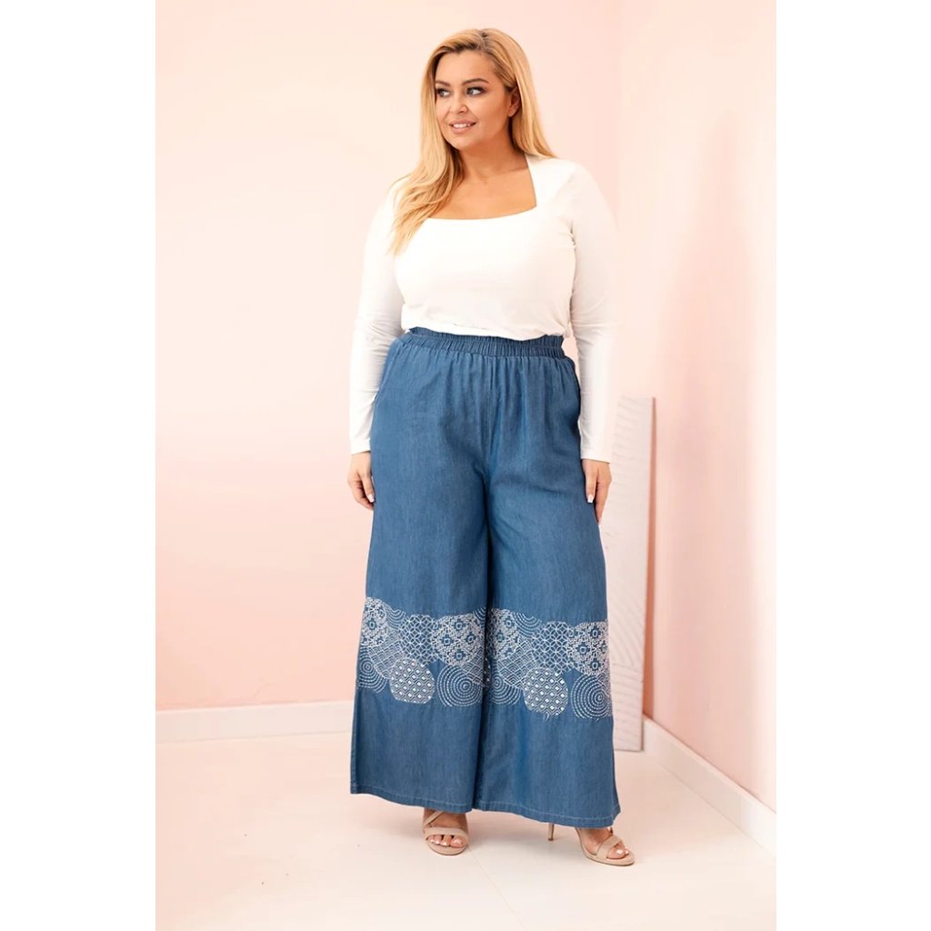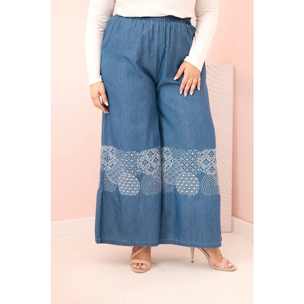 Dámske rifle Plus Size so širokými nohavicami a etnickou výšivkou