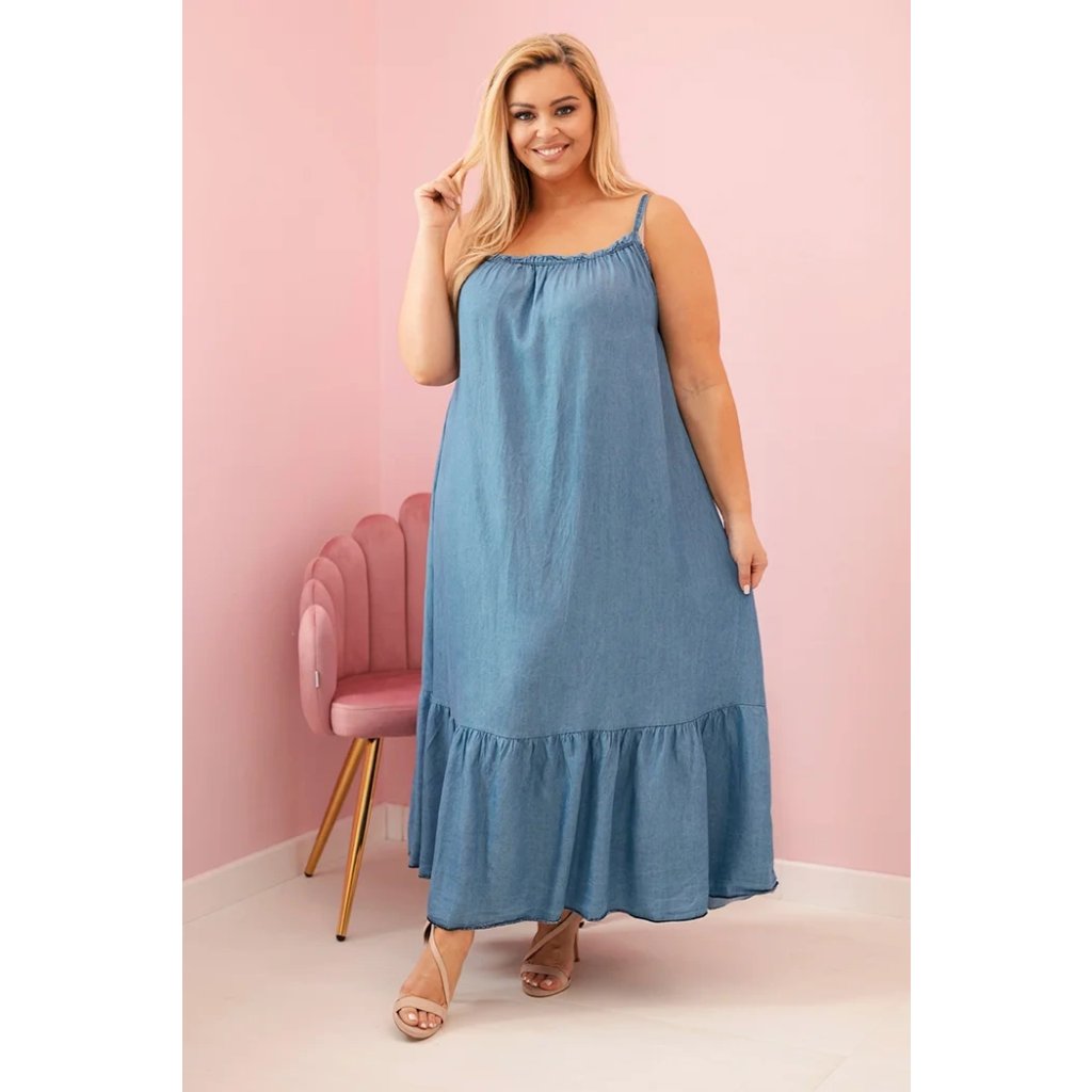 Dámske šaty Plus Size na ramienkach s volánom svetlo džínsové