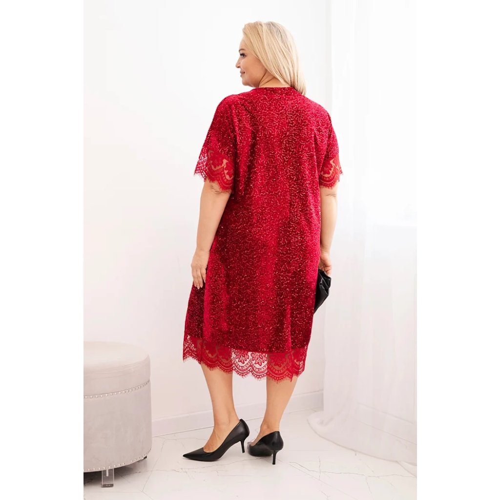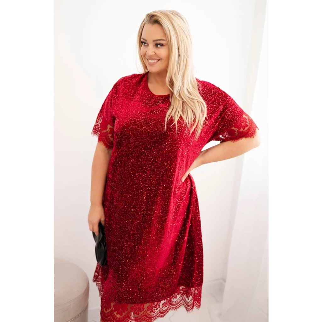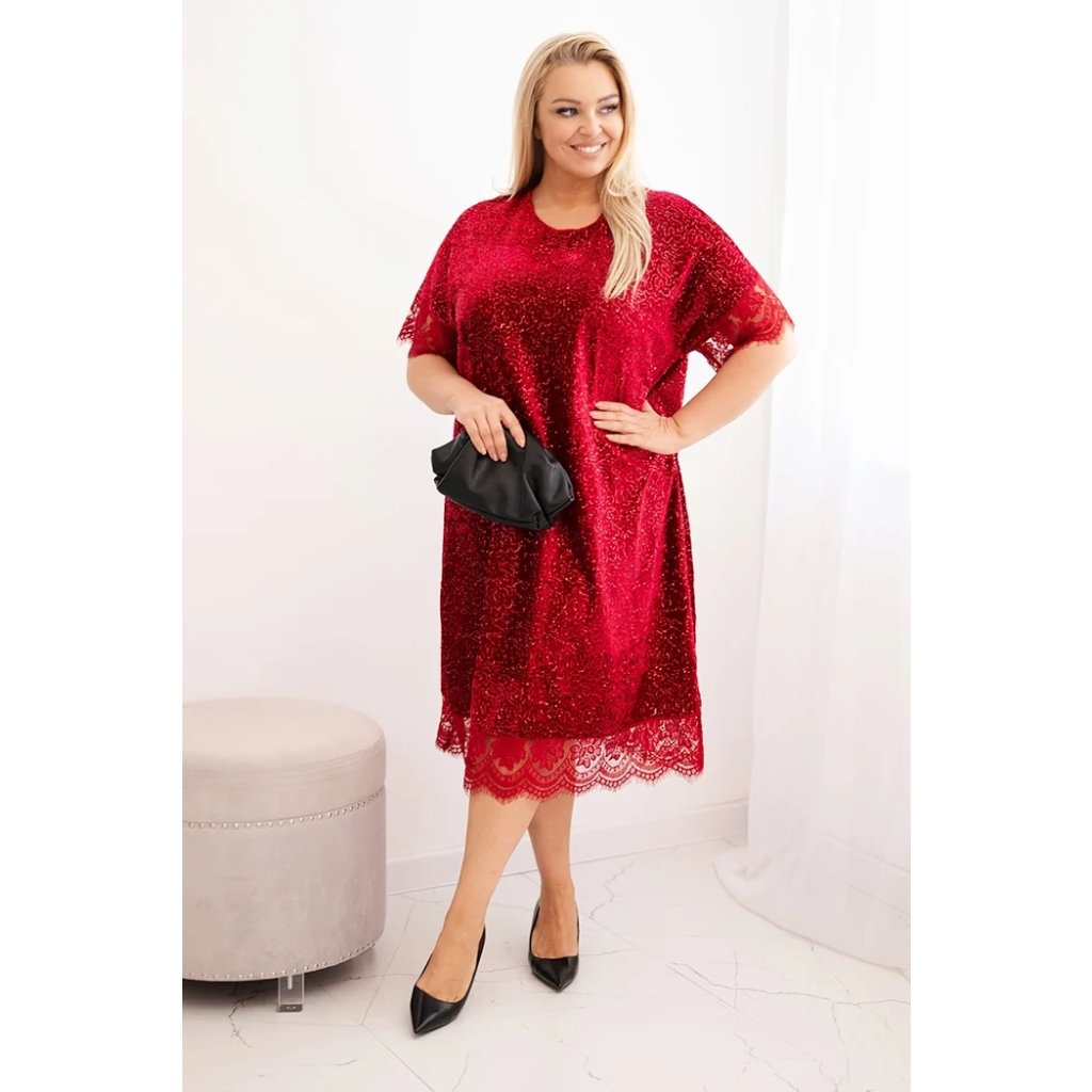 Ak hľadáte elegantné šaty na špeciálne príležitosti, ktoré vám zároveň poskytnú komfort a voľnosť pohybu, tieto dámske šaty plus size s flitrami budú strelou do čierneho. Ich lesklý povrch im dodáva jedinečný charakter a čipkované detaily na rukávoch a spodnom okraji sukne pridávajú ženský šarm.