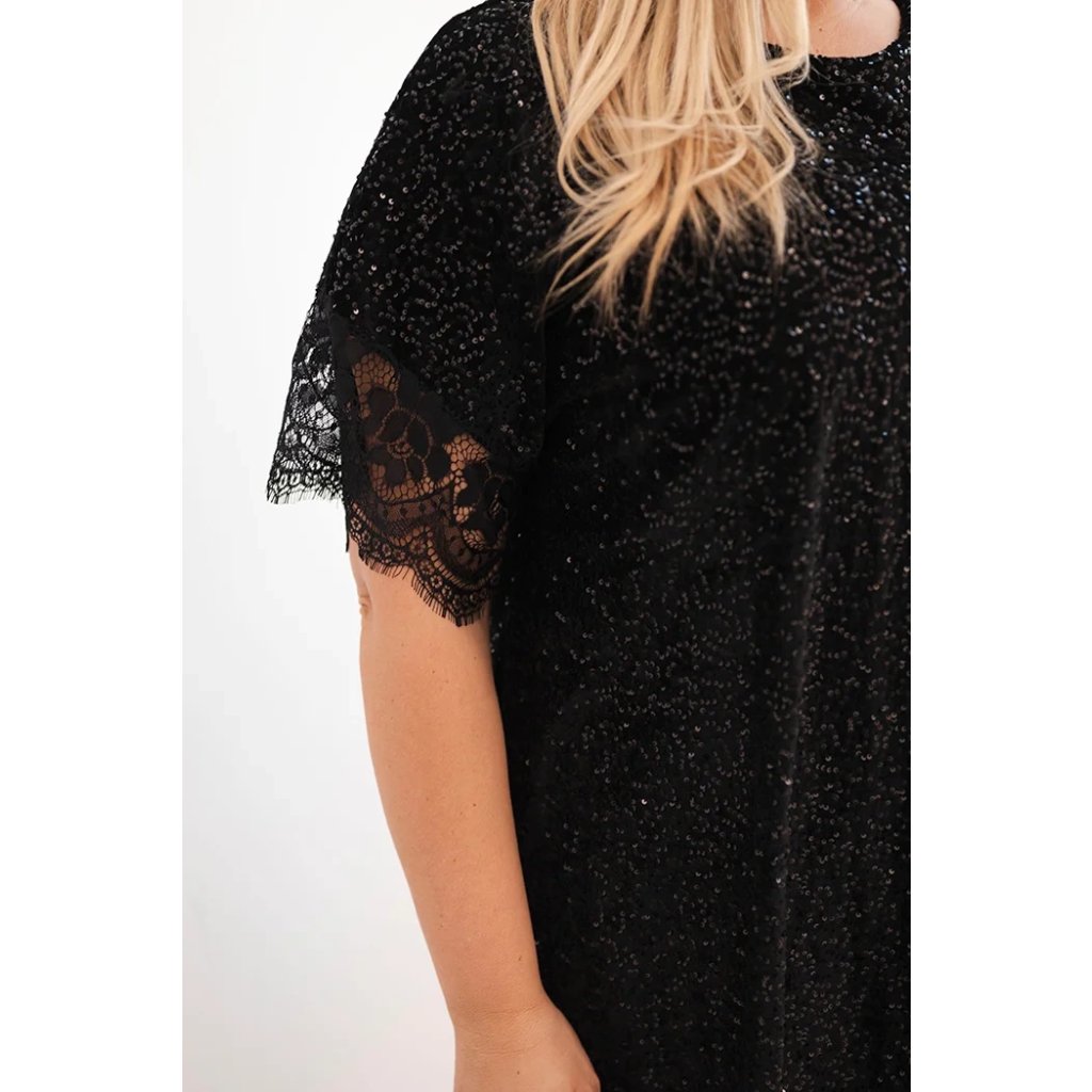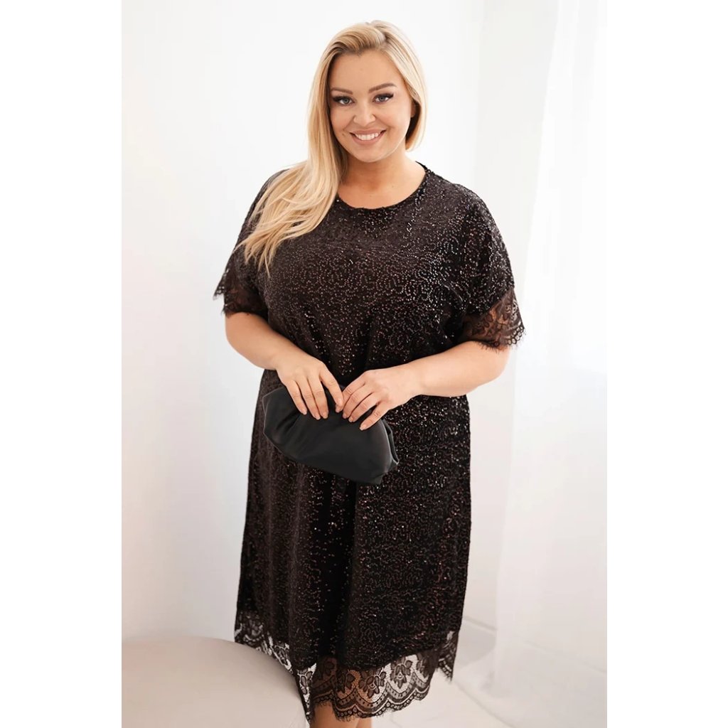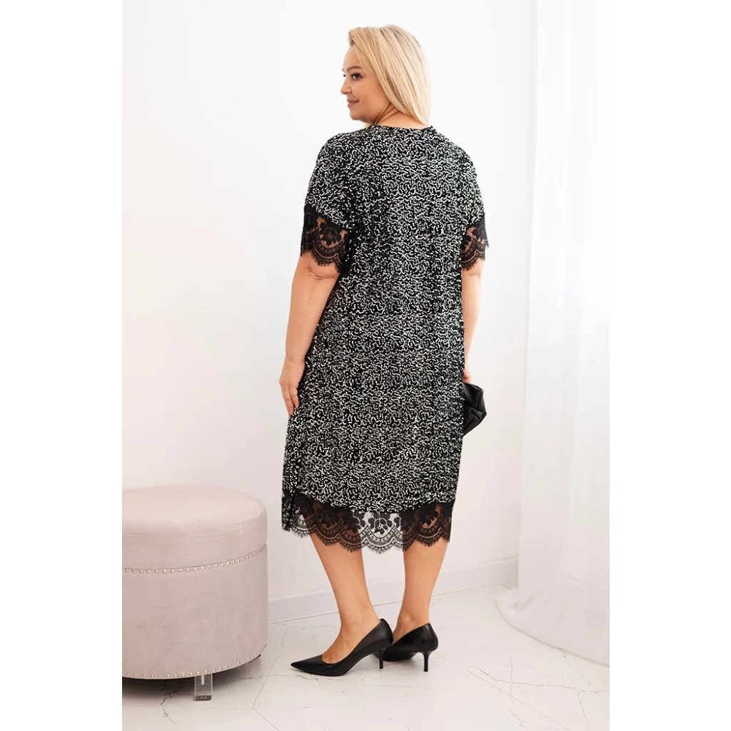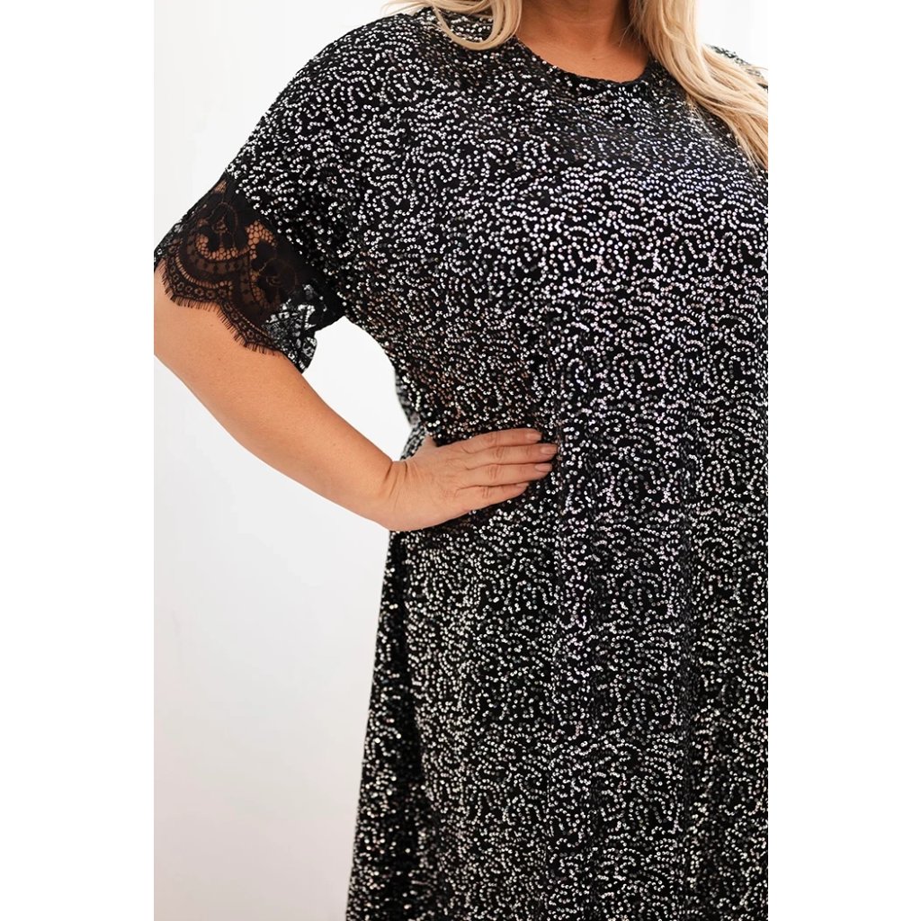 Dámske šaty Plus Size s flitrami a čipkovým zakončením čierne