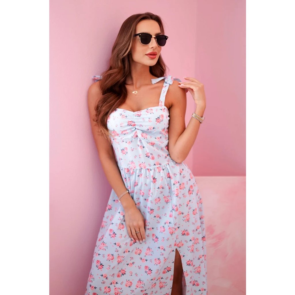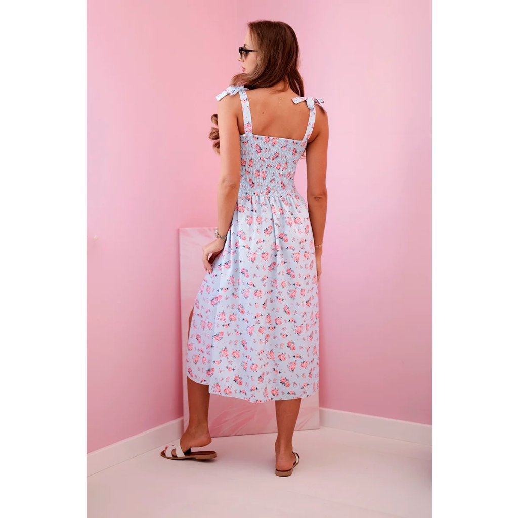 Dámske šaty s potlačou a viazaním na ramienkach modré