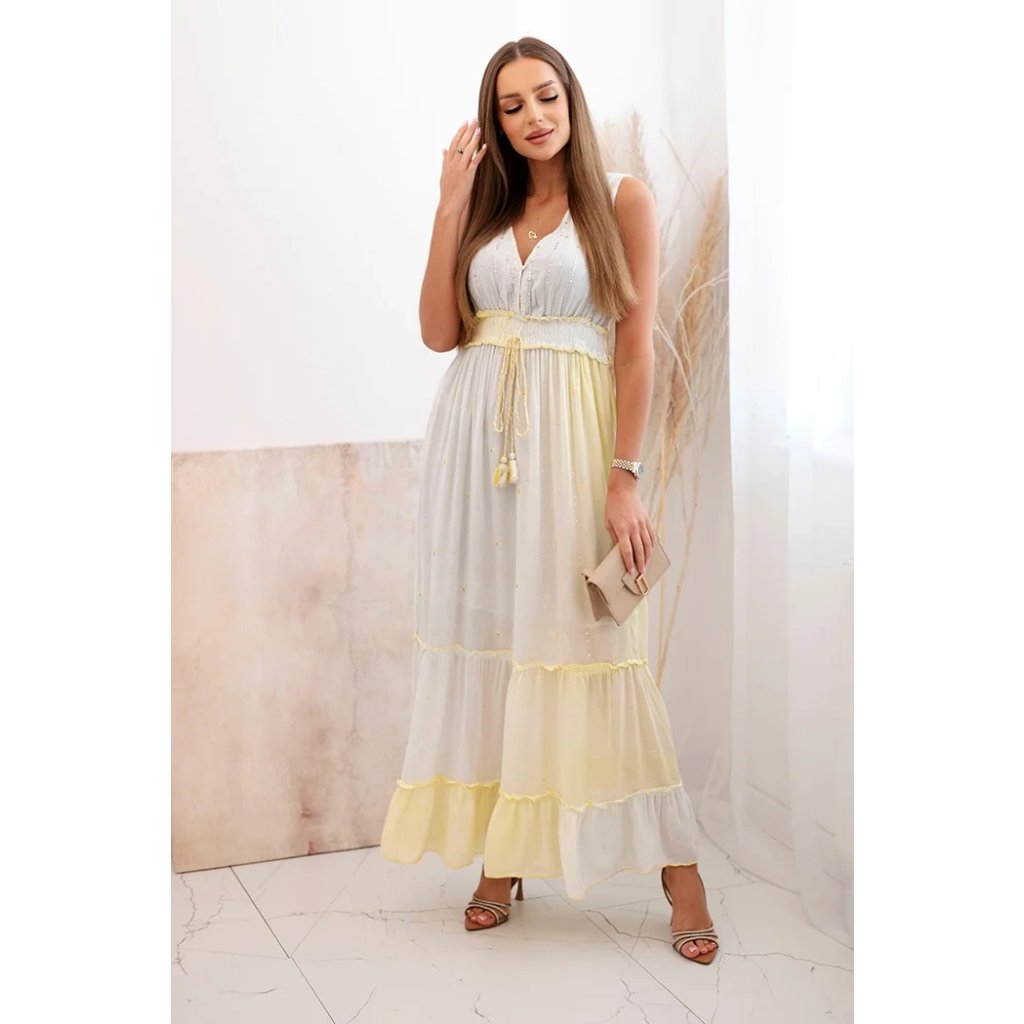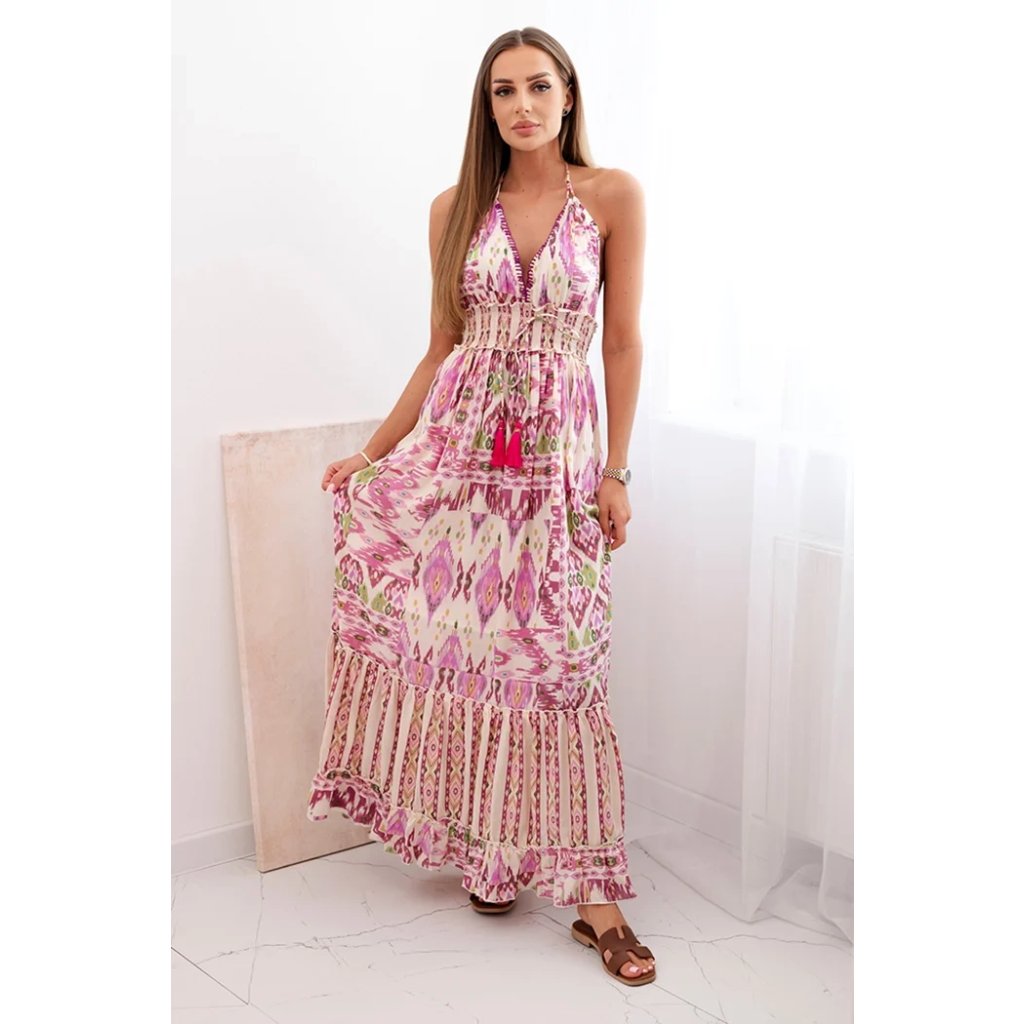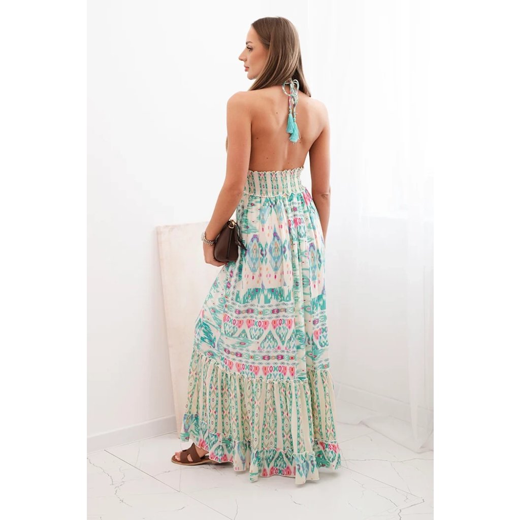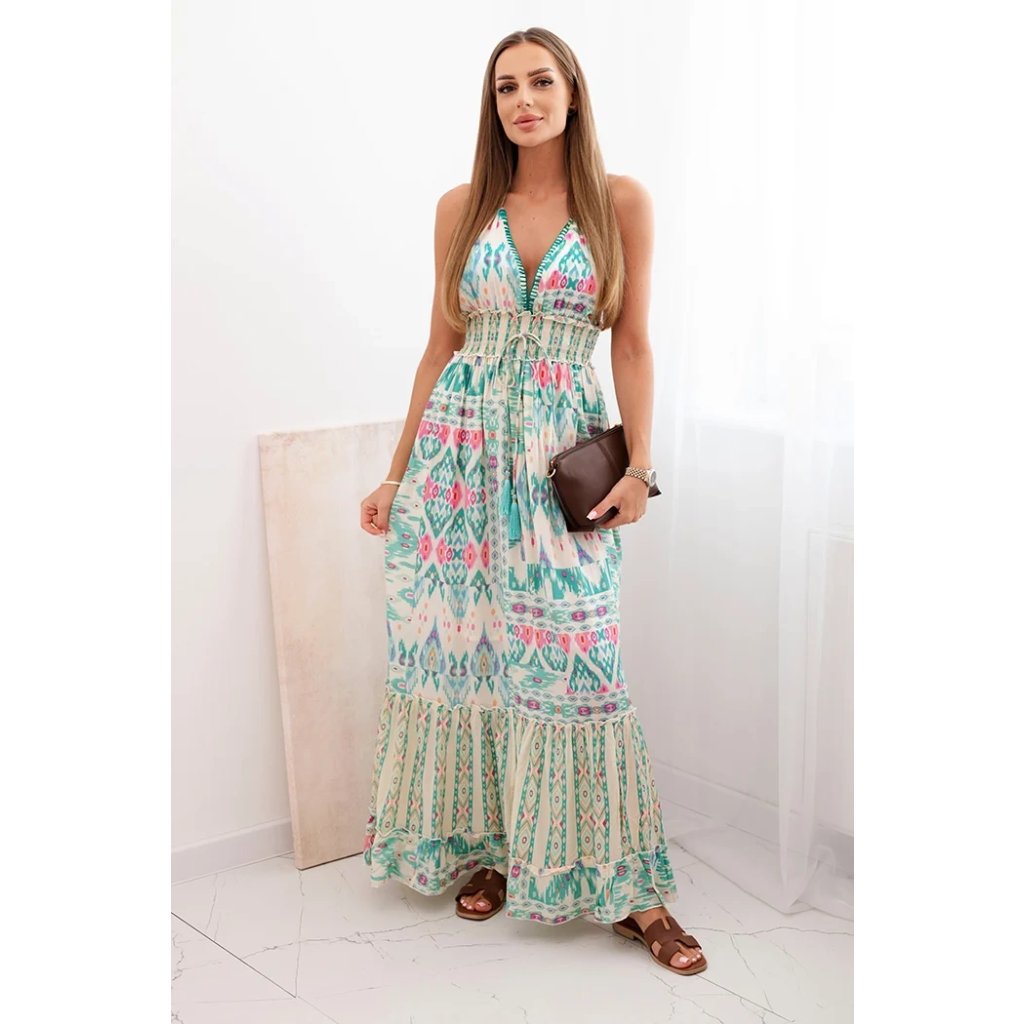 Hľadáte šaty ideálne na leto, dovolenku alebo festivaly Tieto dámske maxi šaty na ramienkach sú skvelou voľbou pre ženy, ktoré si cenia pohodlie a originálny štýl. Vyrobené zo 100% ľahkej a vzdušnej viskózy, poskytujú komfort aj v najhorúcejších dňoch. Moderný etnický vzor a šťavnaté farby vám určite umožnia vystúpiť z davu. Vrch šiat je vyrobený z elastickej gumy, ktorá krásne sedí na postave. Tento model bude skvele fungovať na pláži, pri prechádzke aj počas letných stretnutí s priateľmi. Veľkosť je univerzálna a bude vhodná pre ženy vo veľkosti S, M alebo L.