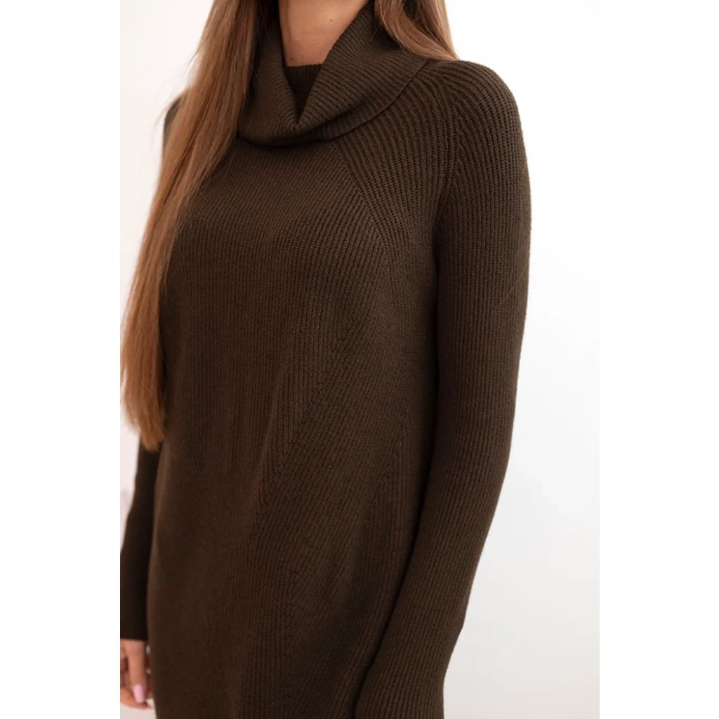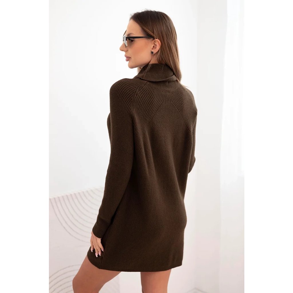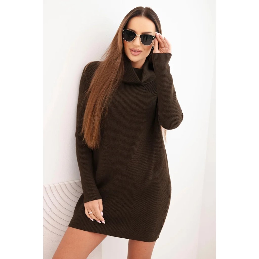 Dámske šaty z viskózy úpletové so širokým golierom hnedé