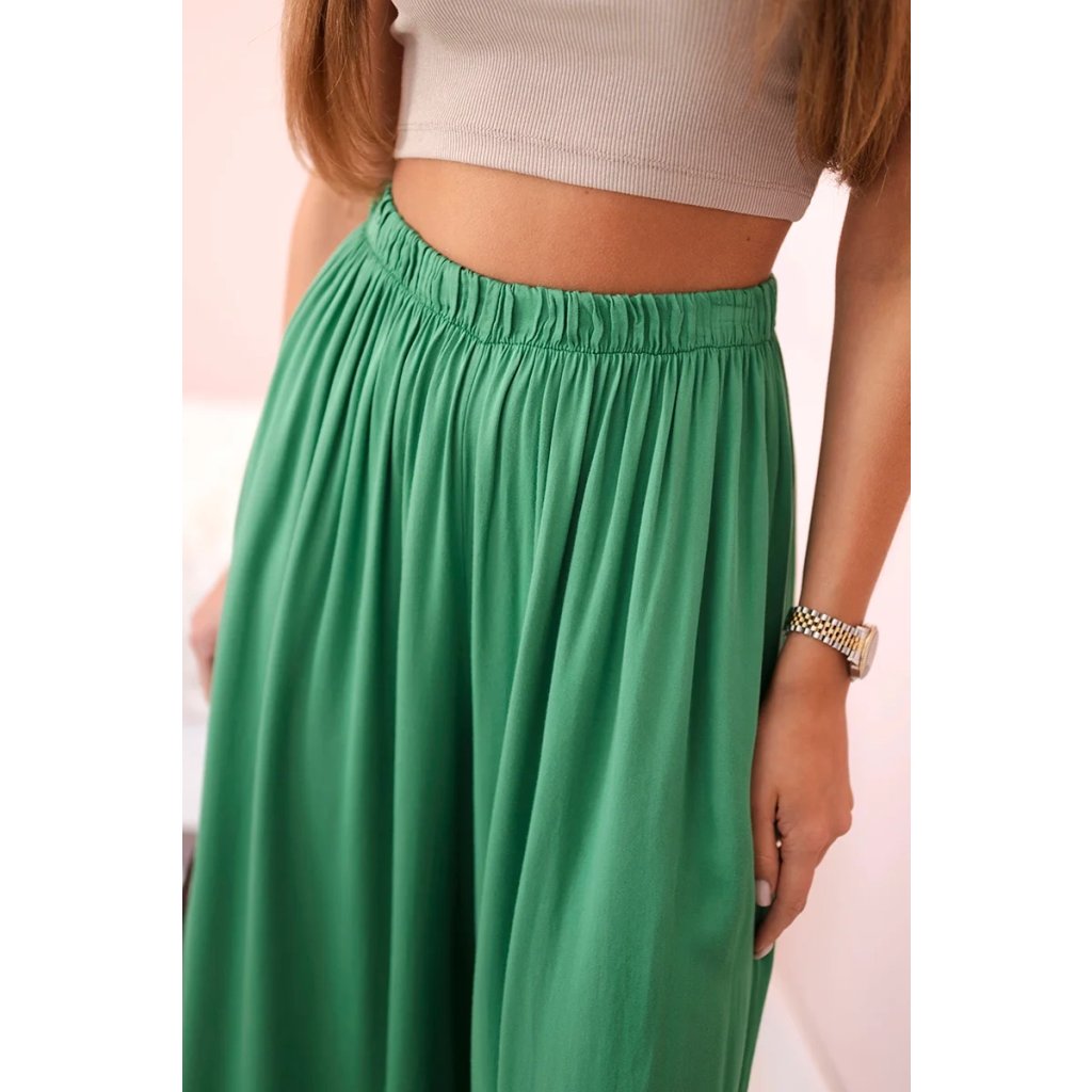 Dámske široké viskózové nohavice s gumou v páse, tmavohnedé.